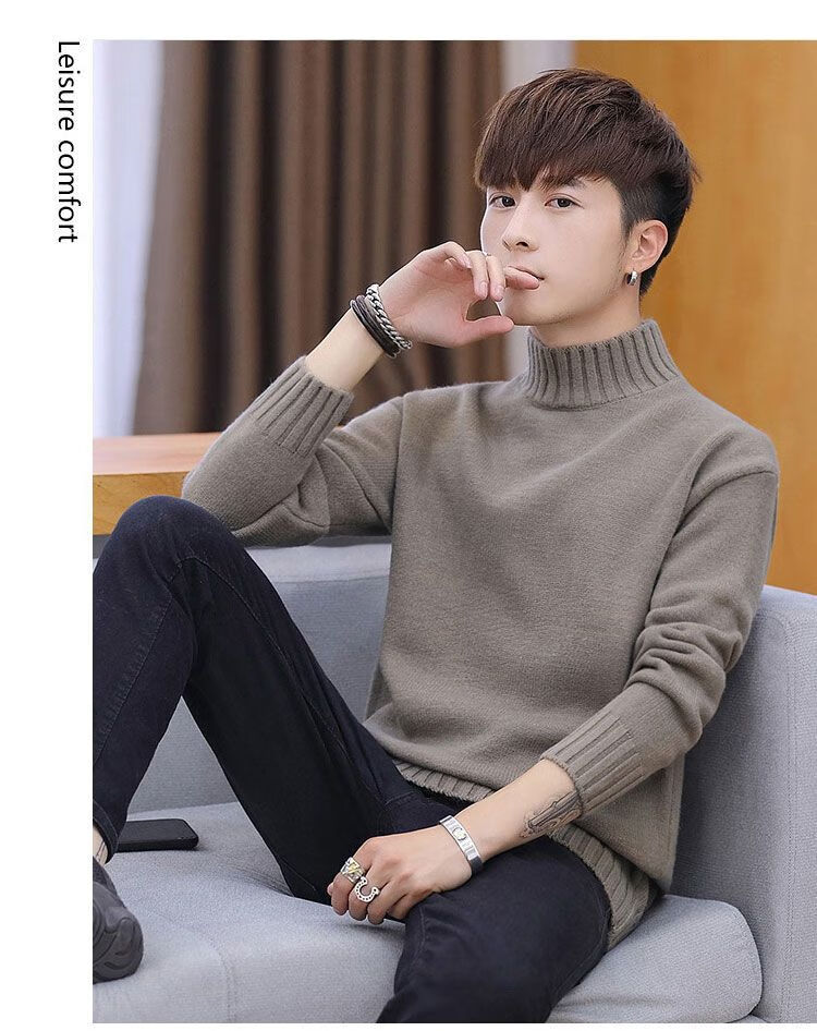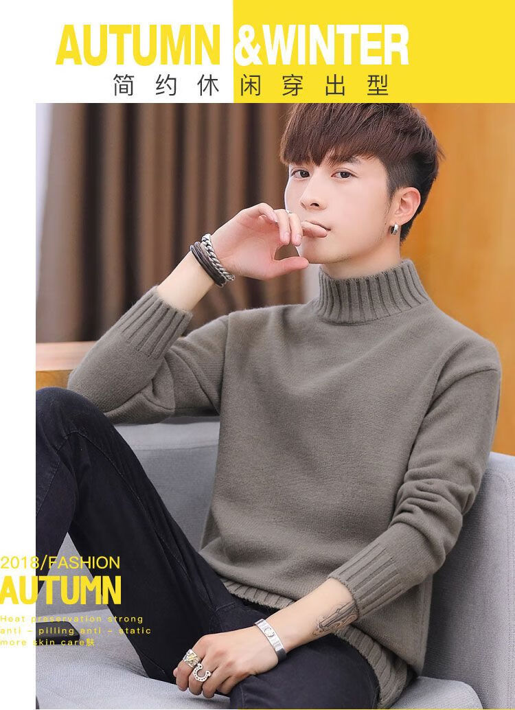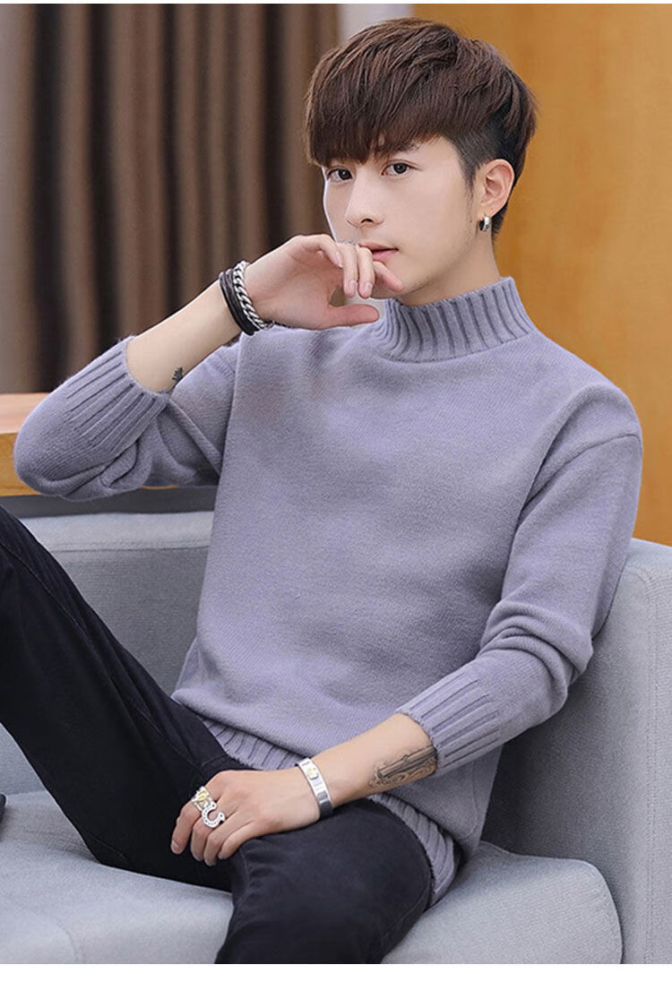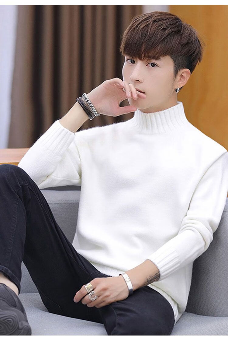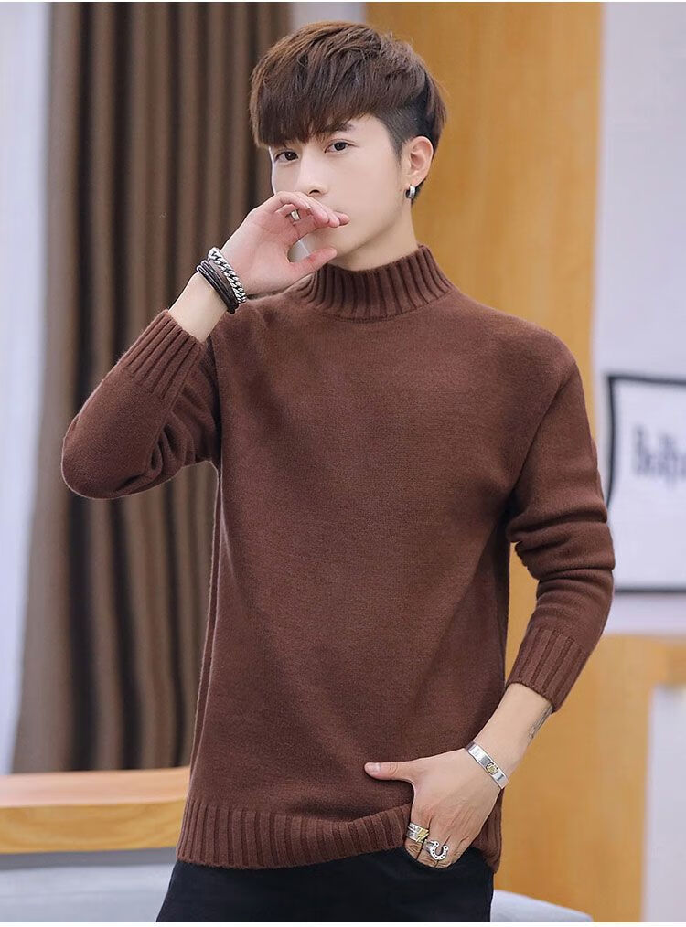 Hengyuanxiang velvet all-in-one half turtleneck sweater for men winter new Korean style casual all-match pullover solid color bottoming sweater black warm velvet XL 130-140Jin Jin equals 0.5 kg