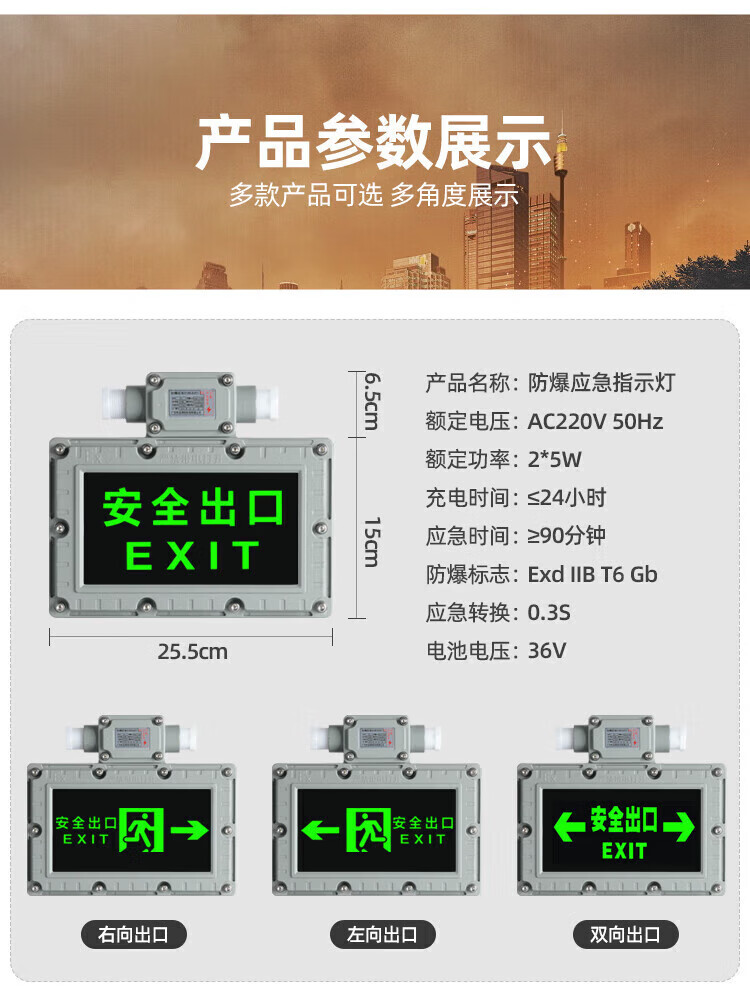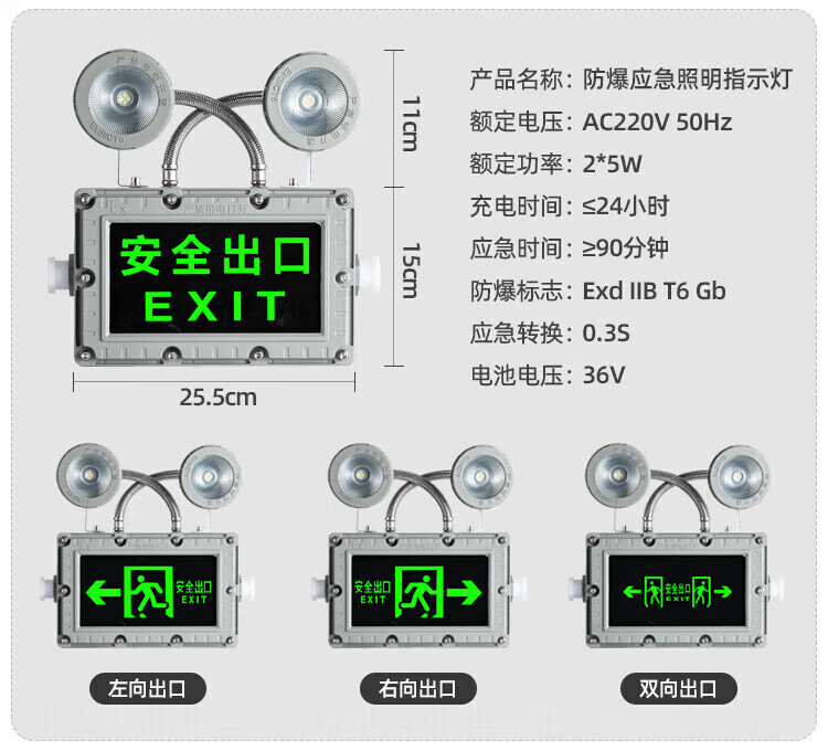 Jinneng emergency safety exit sign fire emergency lighting evacuation left to right sign 24V-220V left arrow - double-sided hoisting version - (glass panel)