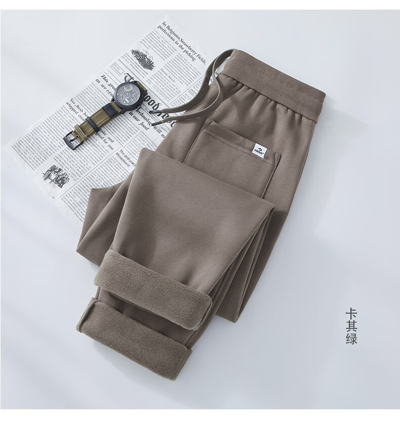 ROMON men's winter fleece pants 430g new thickened straight pants loose sports sweatpants autumn and winter casual pants for men Khaki green L suitable for 140-160Jin Jin equals 0.5 kg