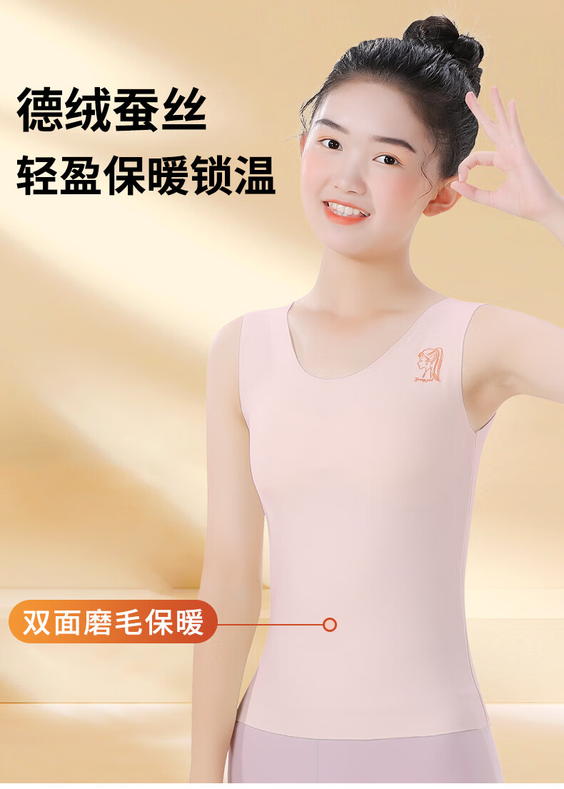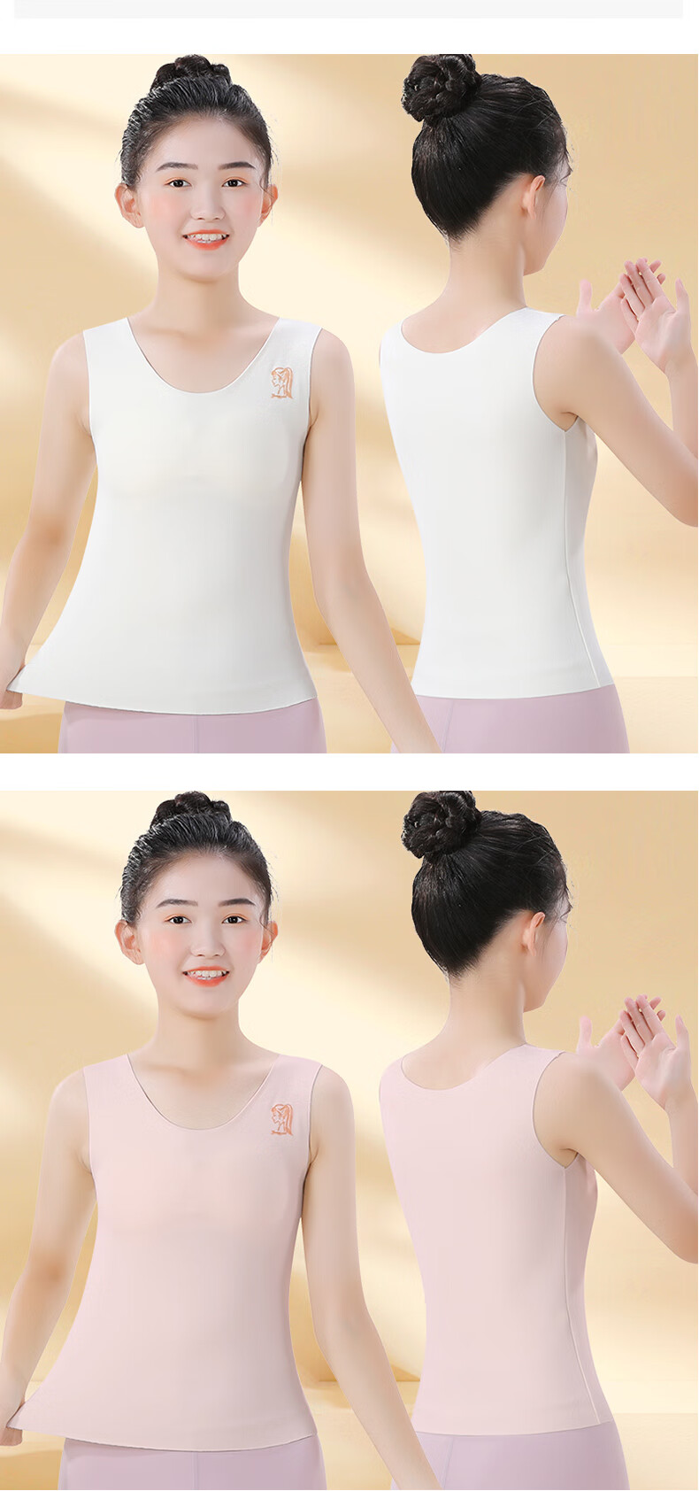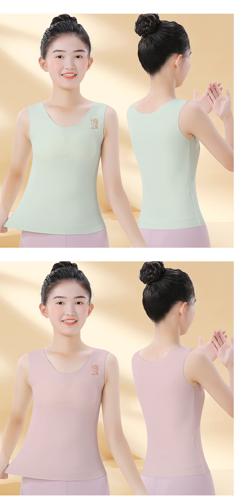 Intimate Bear Girl's German Velvet Warm Vest for Primary School Students in the Development Period to Wear Underwear for Big Children and Little Girls, Children's Underwear for Autumn and Winter, Light Pink + Light Green L 75-85Jin Jin equals 0.5kg