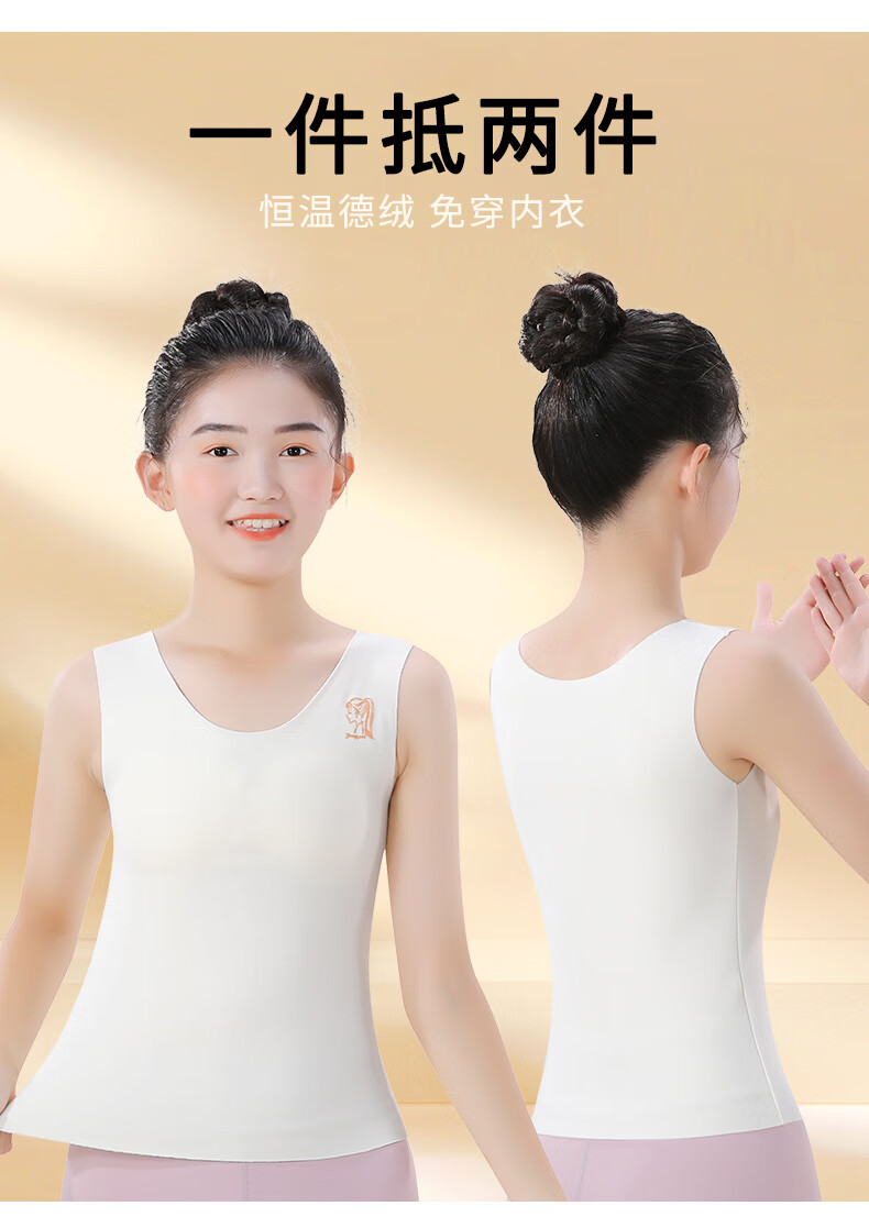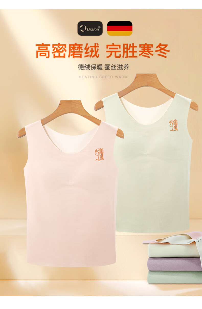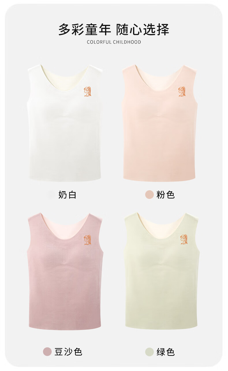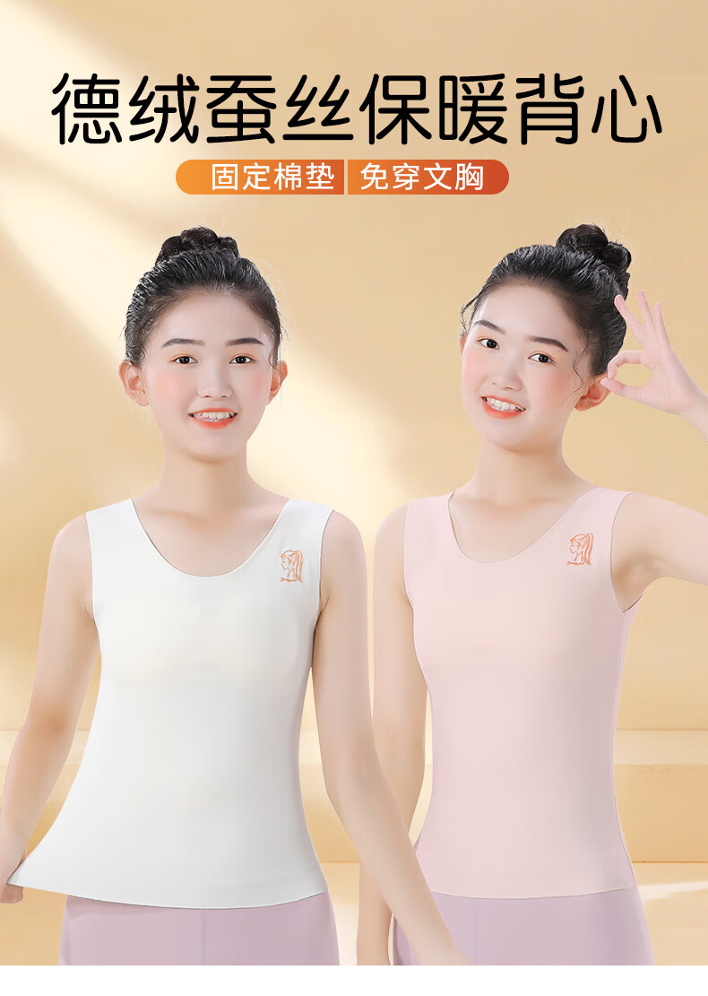 Intimate Bear Girl's German Velvet Warm Vest for Primary School Students in the Development Period to Wear Underwear for Big Children and Little Girls, Children's Underwear for Autumn and Winter, Light Pink + Light Green L 75-85Jin Jin equals 0.5kg