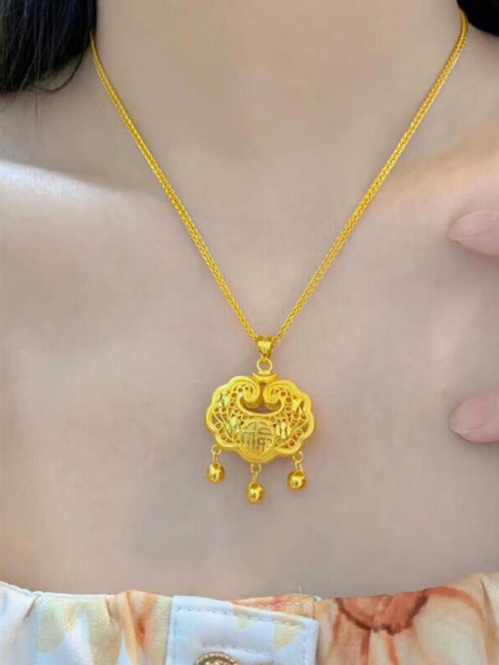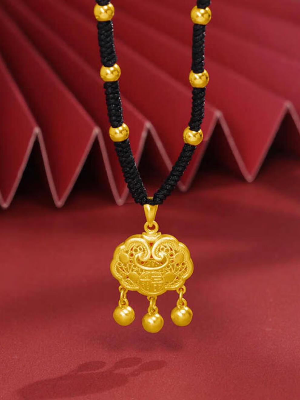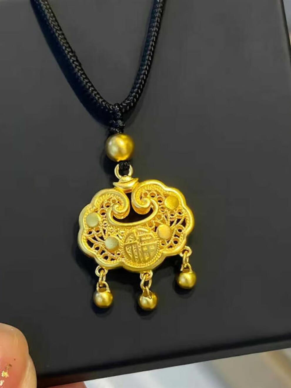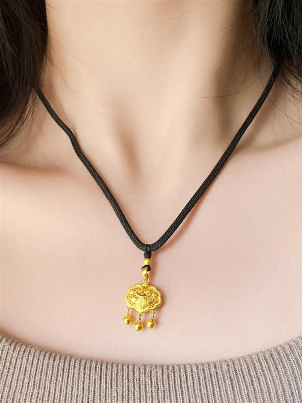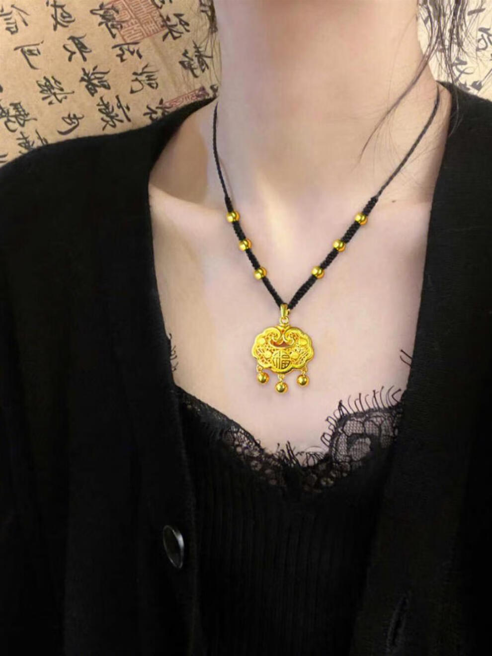An Feng gold-wrapped silver pendant, safe and blessed lock bag, hand-woven new necklace for women, Chinese Valentine's Day birthday gift, small red rope, large red rope