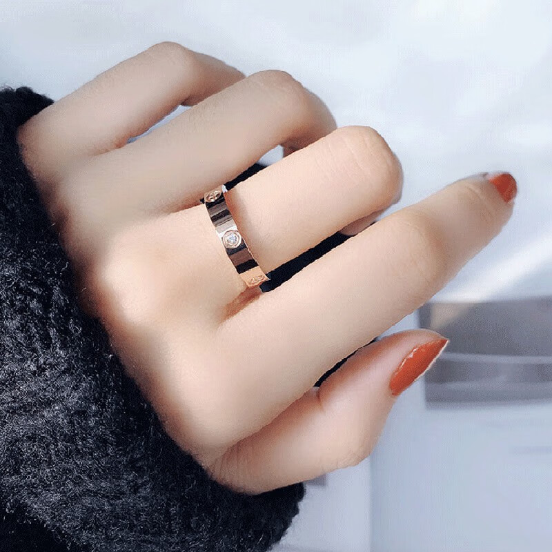 Shengli high version 18K rose gold ring for men and women, classic style, love couple, high imitation, large card family wedding ring, rose gold, no diamonds - narrow version - classic style, 5 US sizes (9 country code - 10 country code)