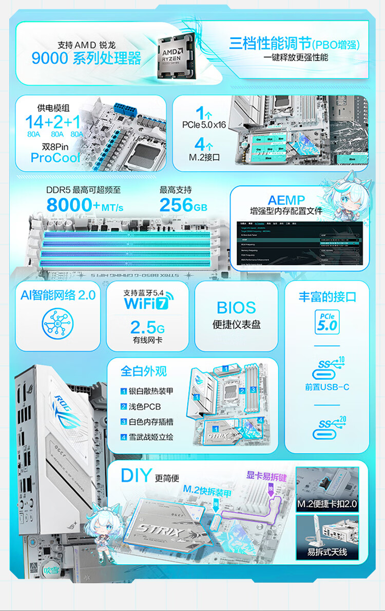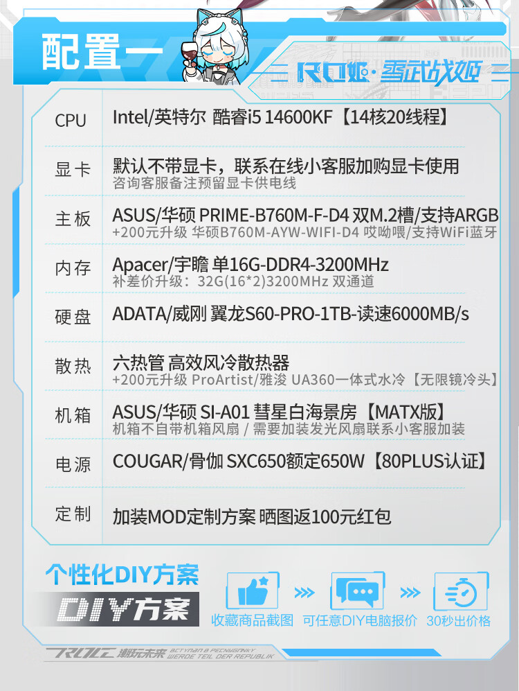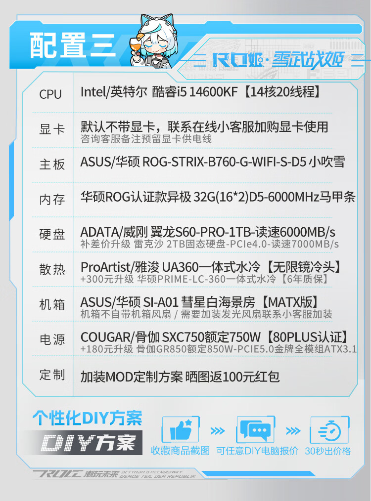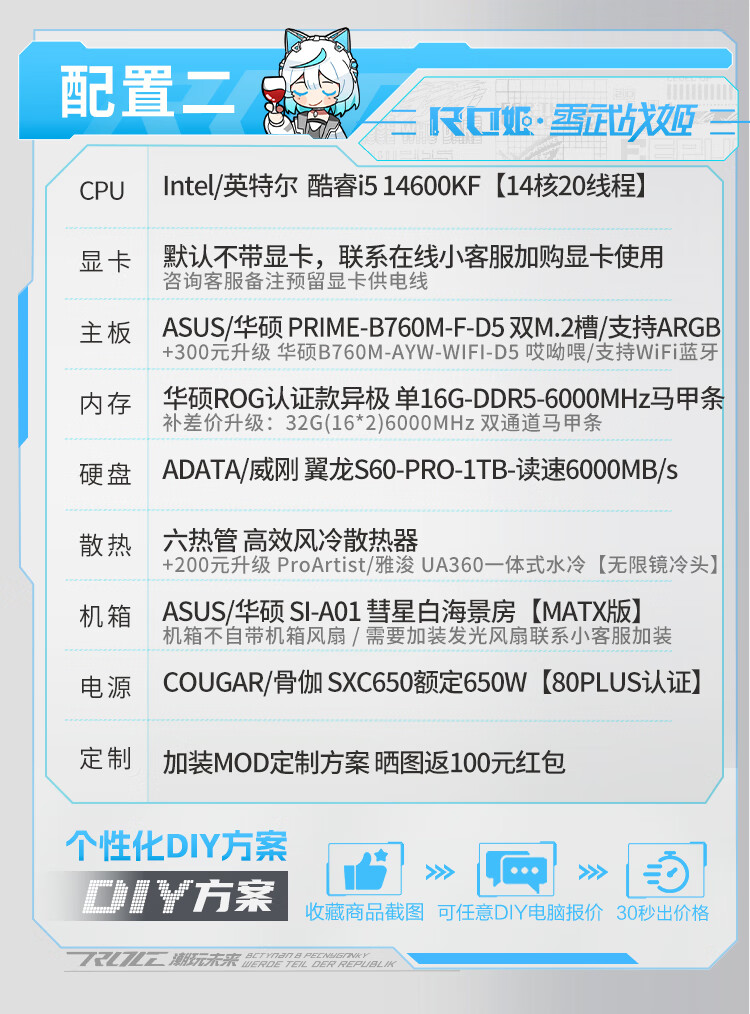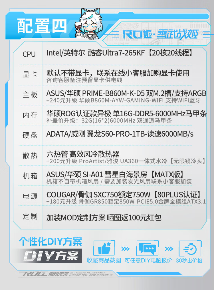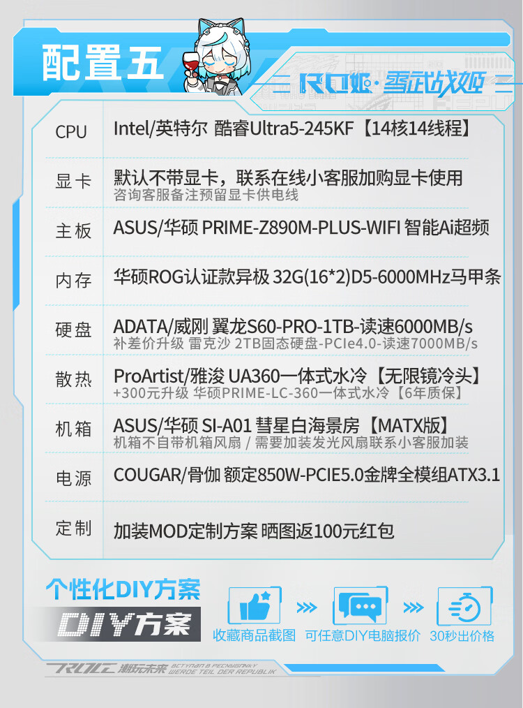 ASUS (ASUS) ASUS ROG i5 14600KF barebone game console Ultra7-265KF without graphics card ASUS complete machine pure white Xiao Fuxue assembled computer 14600KF barebone + D5丨Configuration 2