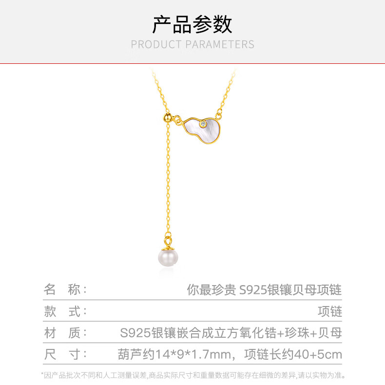Ji Ge S925 Silver Pearl Necklace Women's White Shell Gourd Pendant Fashion Accessories for Girlfriend Chinese Valentine's Day Gift