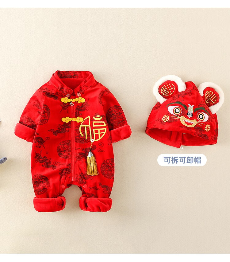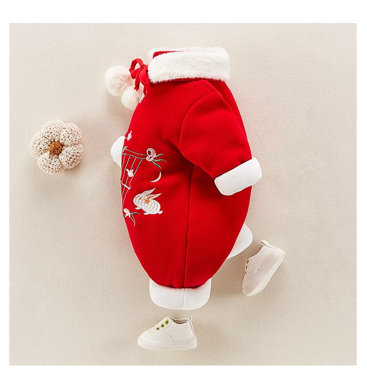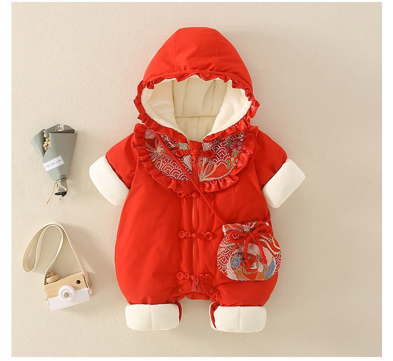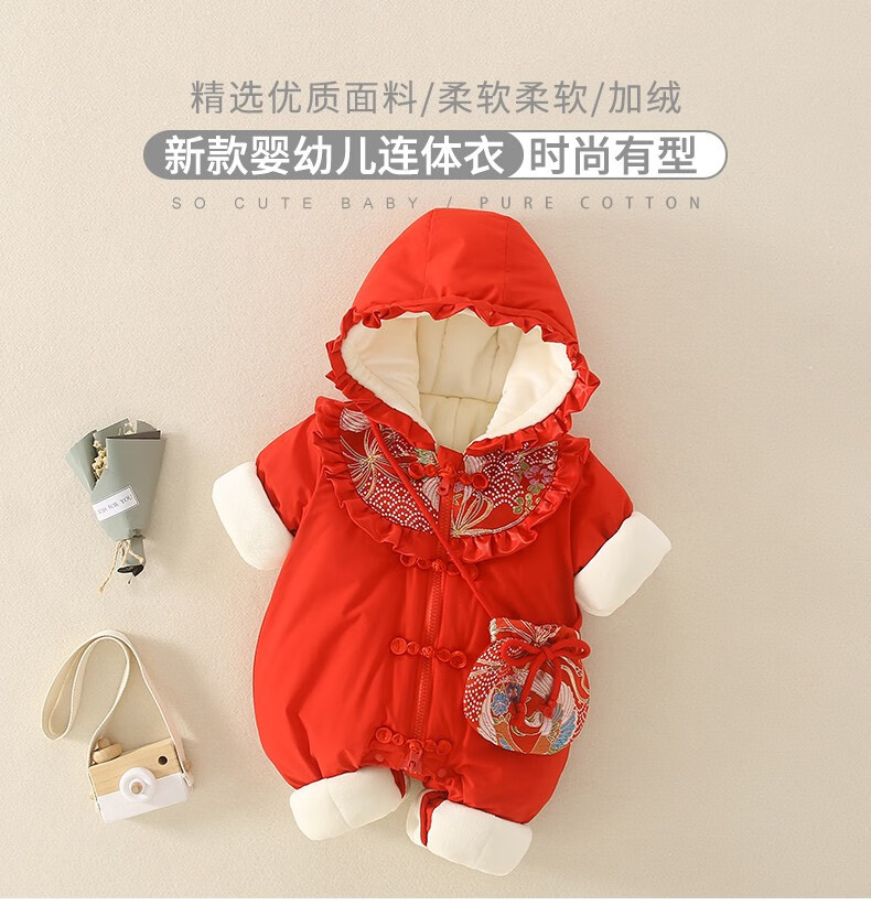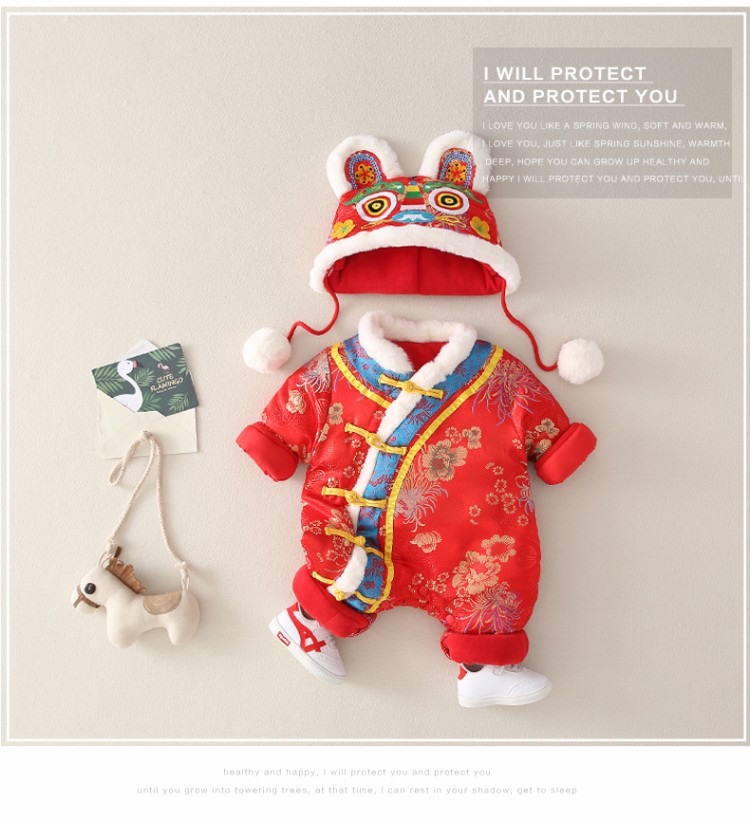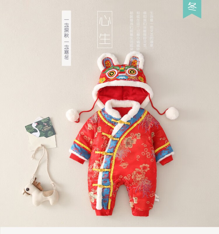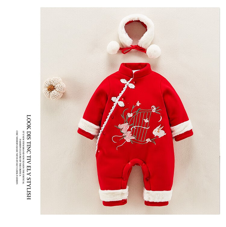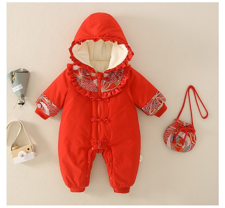 Hadouer baby clothes winter clothes 0 to 3 months 6 baby year clothes 9 winter thickened one-piece out-of-body newborn full moon Tang suit CBG24101 red cotton coat + hat 73cm