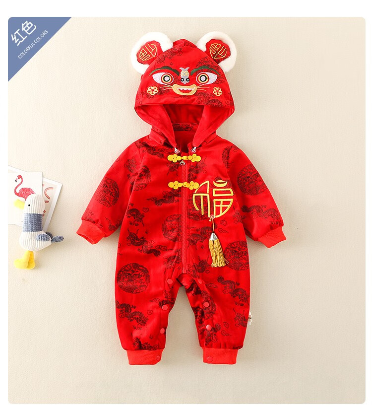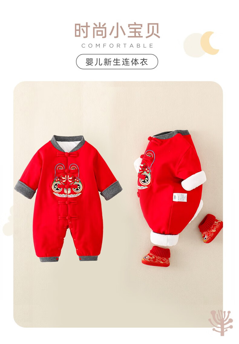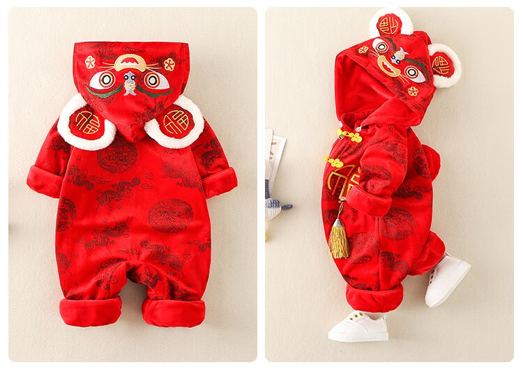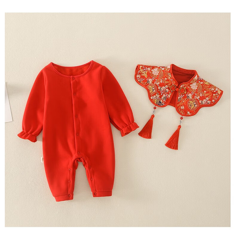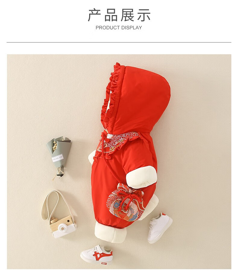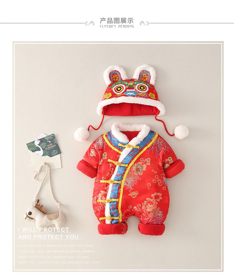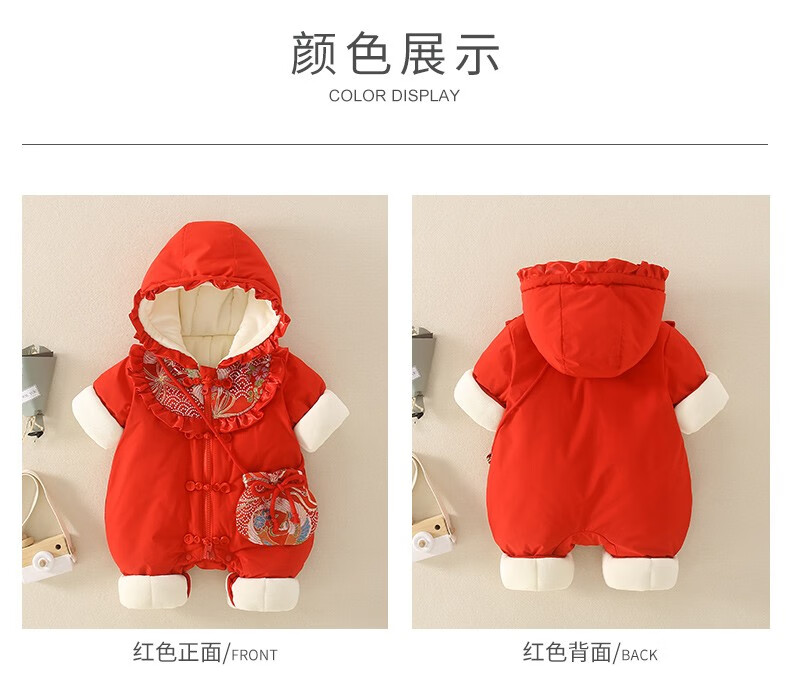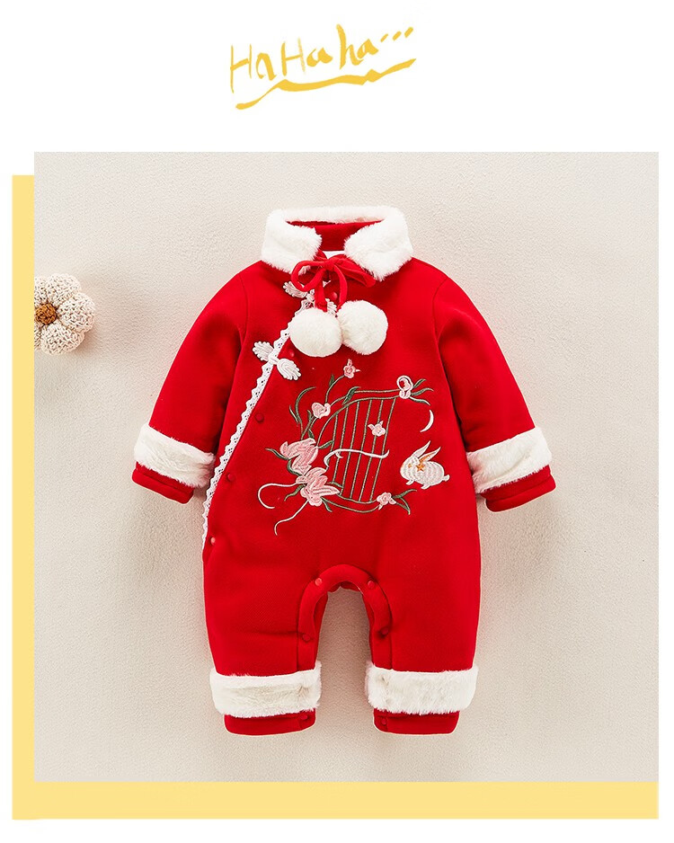 Hadouer baby clothes winter clothes 0 to 3 months 6 baby year clothes 9 winter thickened one-piece out-of-body newborn full moon Tang suit CBG24101 red cotton coat + hat 73cm