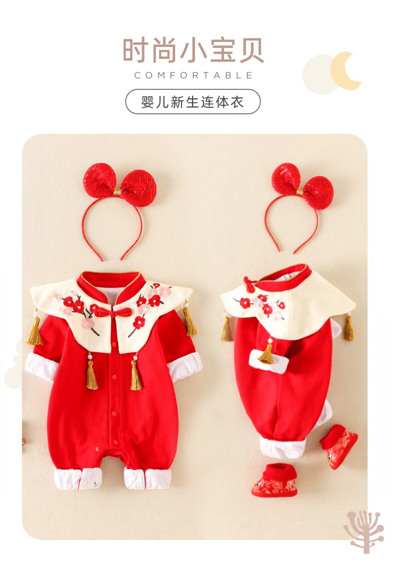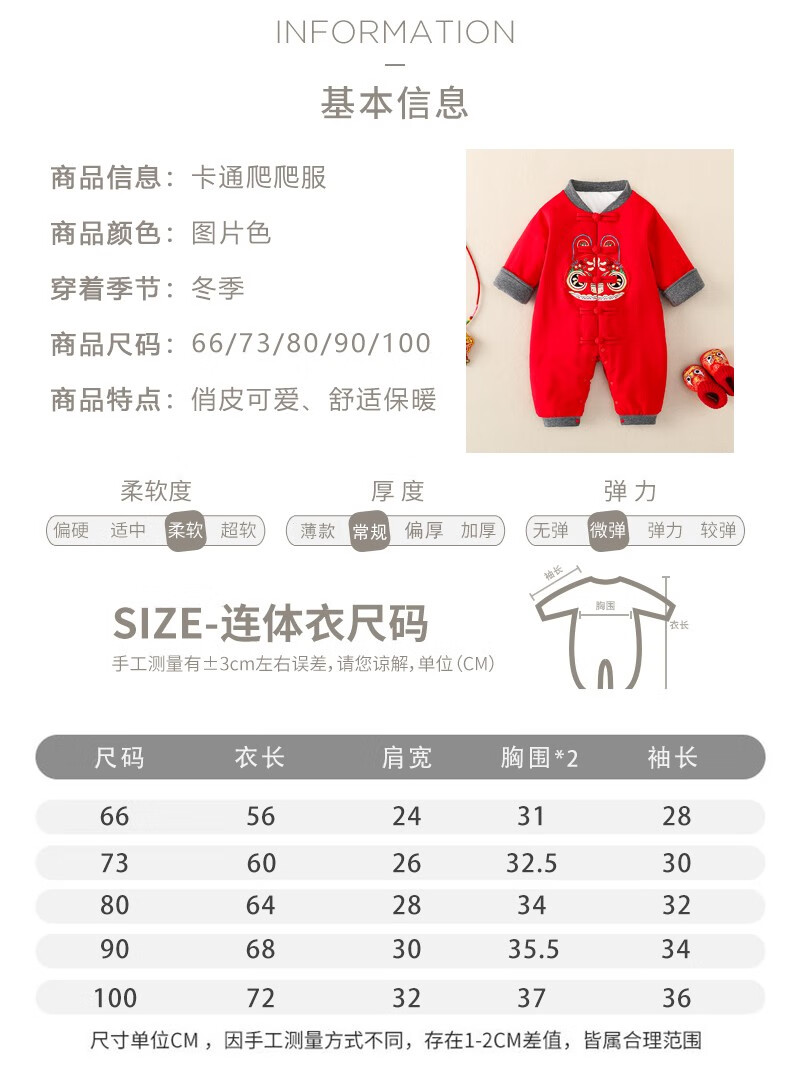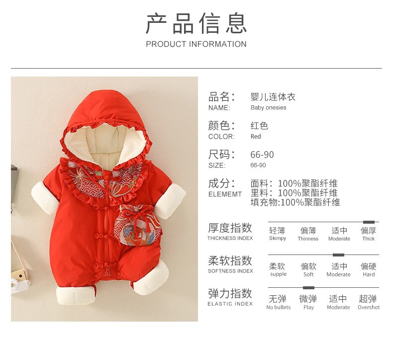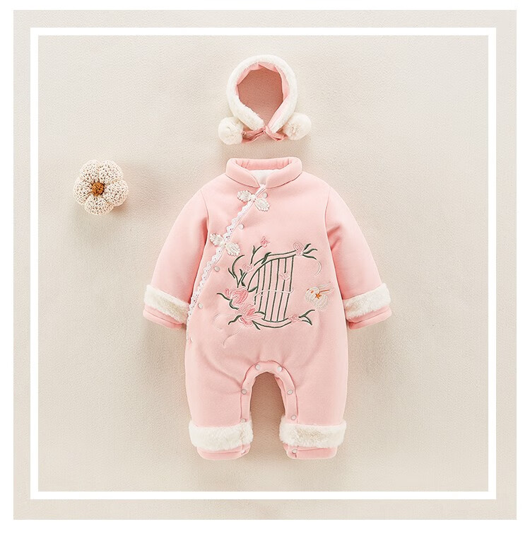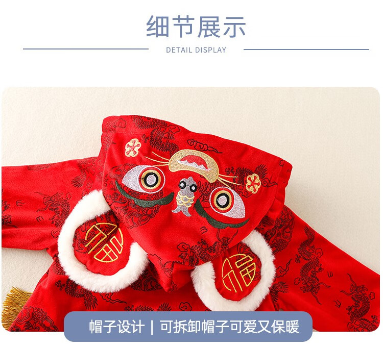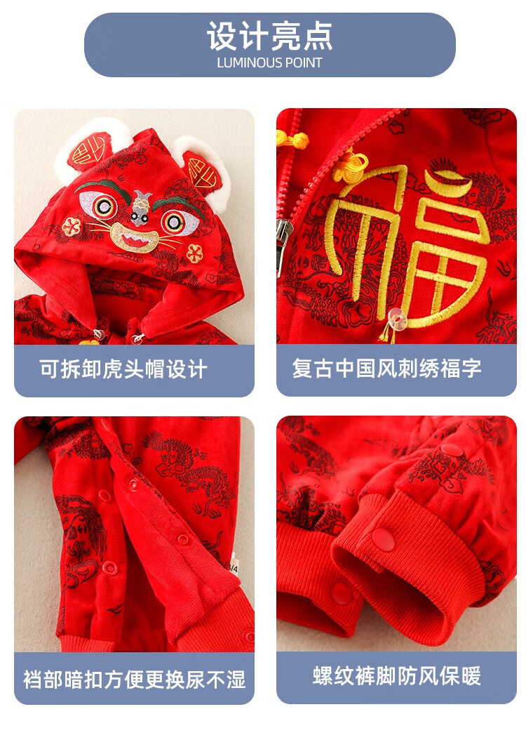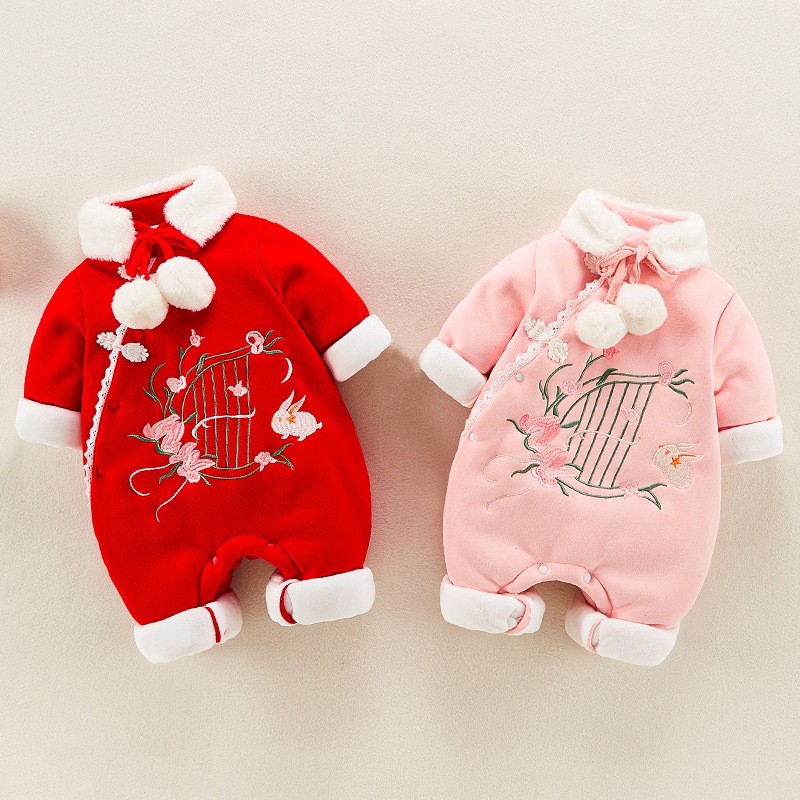 Hadouer baby clothes winter clothes 0 to 3 months 6 baby year clothes 9 winter thickened one-piece out-of-body newborn full moon Tang suit CBG24101 red cotton coat + hat 73cm