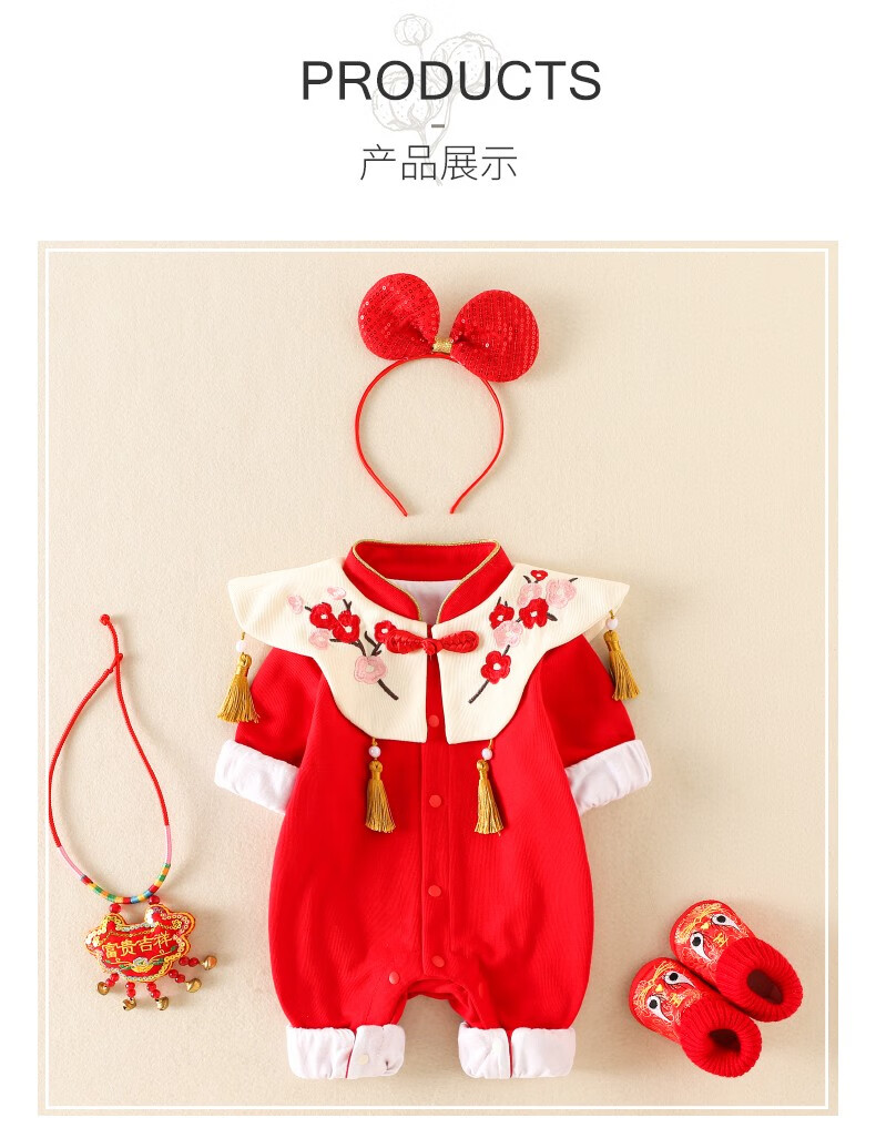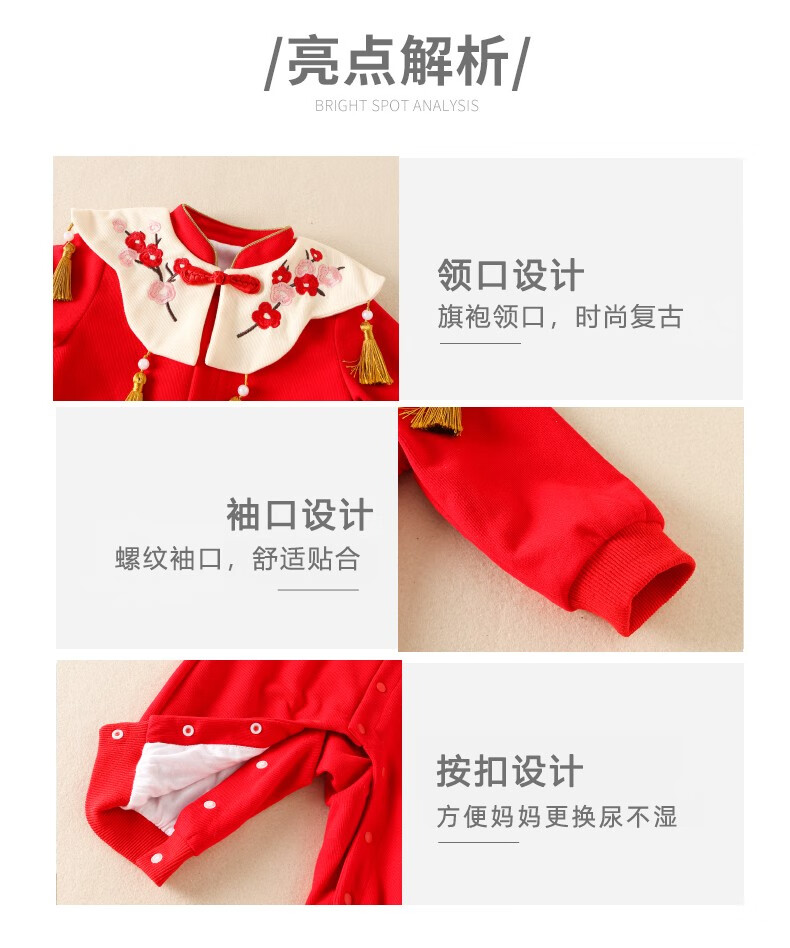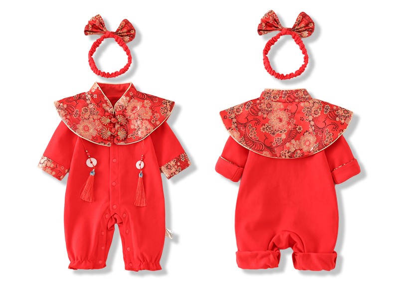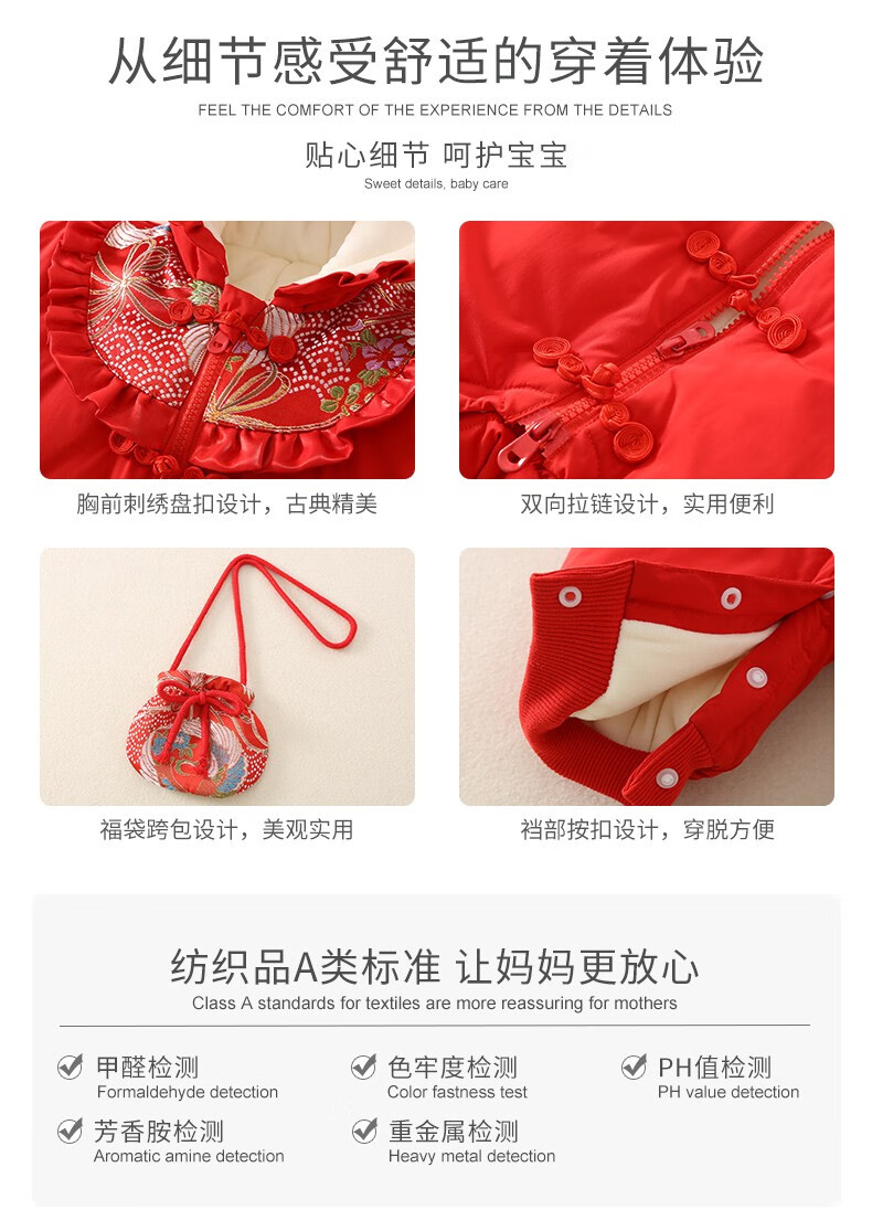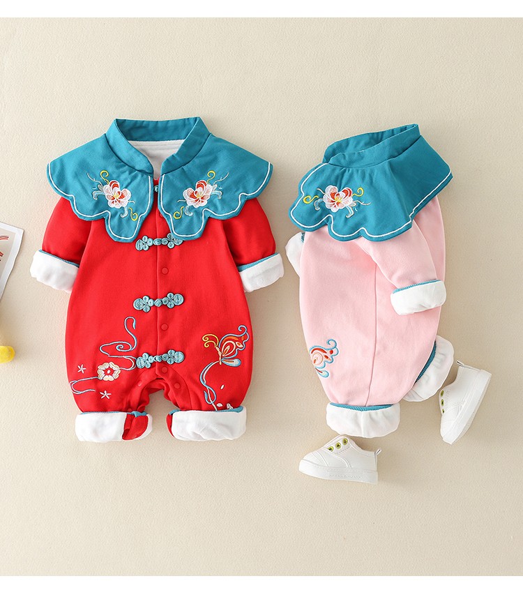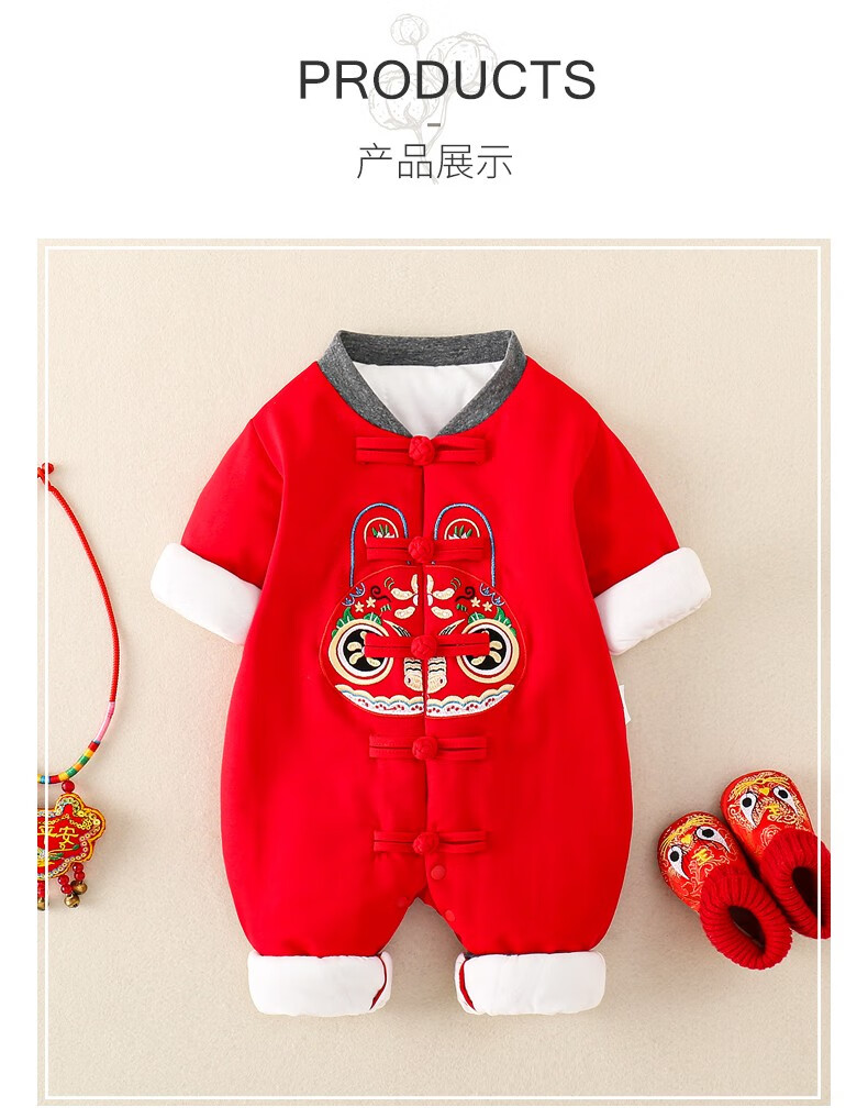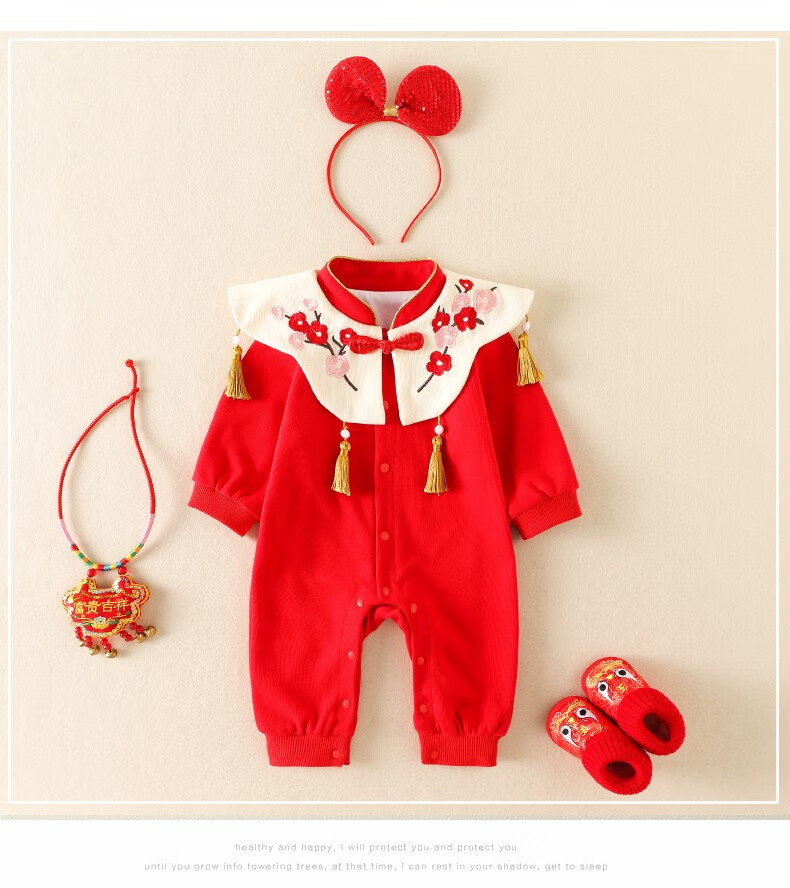 Hadouer baby clothes winter clothes 0 to 3 months 6 baby year clothes 9 winter thickened one-piece out-of-body newborn full moon Tang suit CBG24101 red cotton coat + hat 73cm