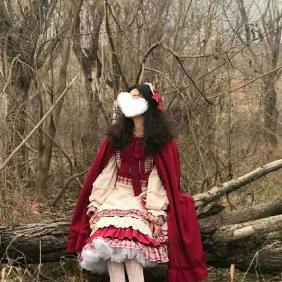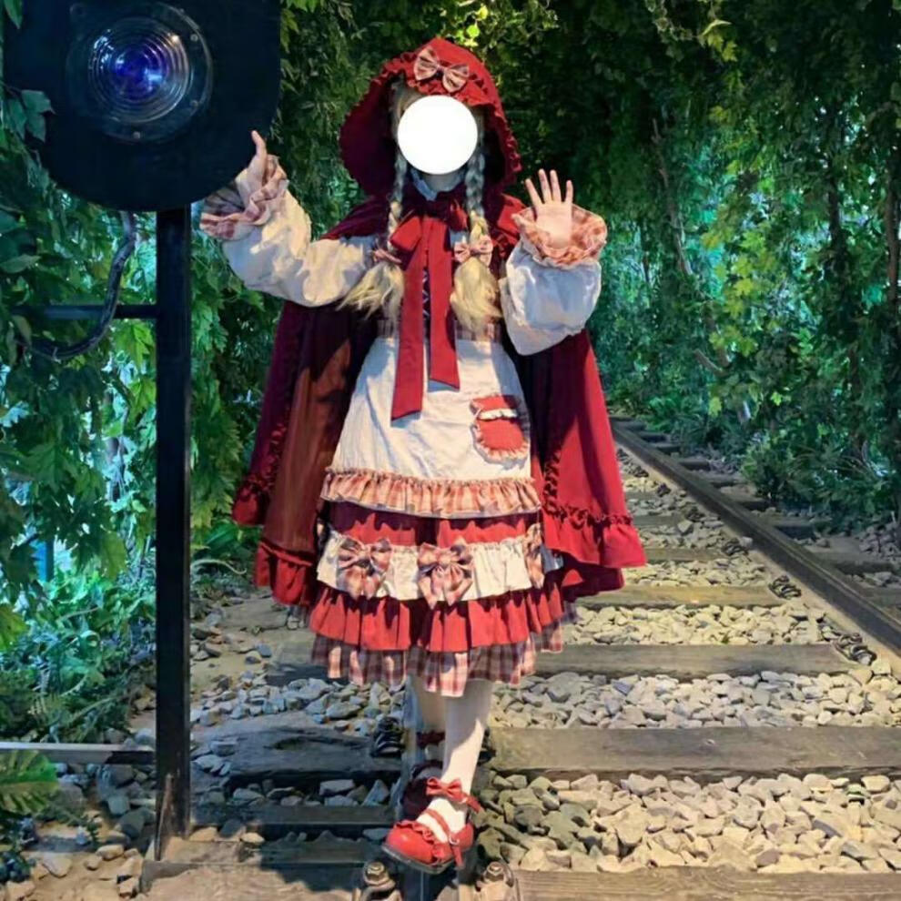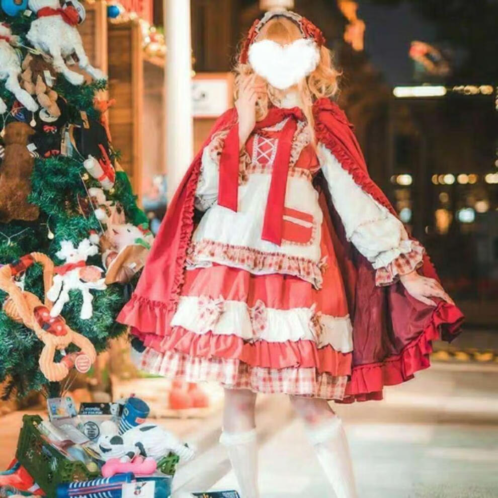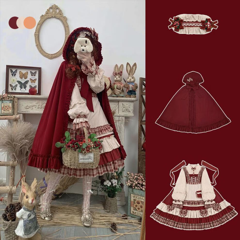 Shaquhe Lolita skirt berry girl op retro little red riding hood cloak long-sleeved Japanese dress lolita dress fairy burgundy dress 165 S