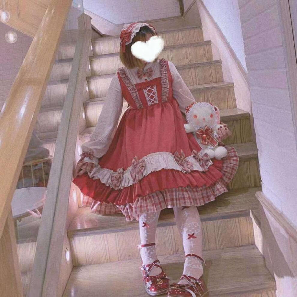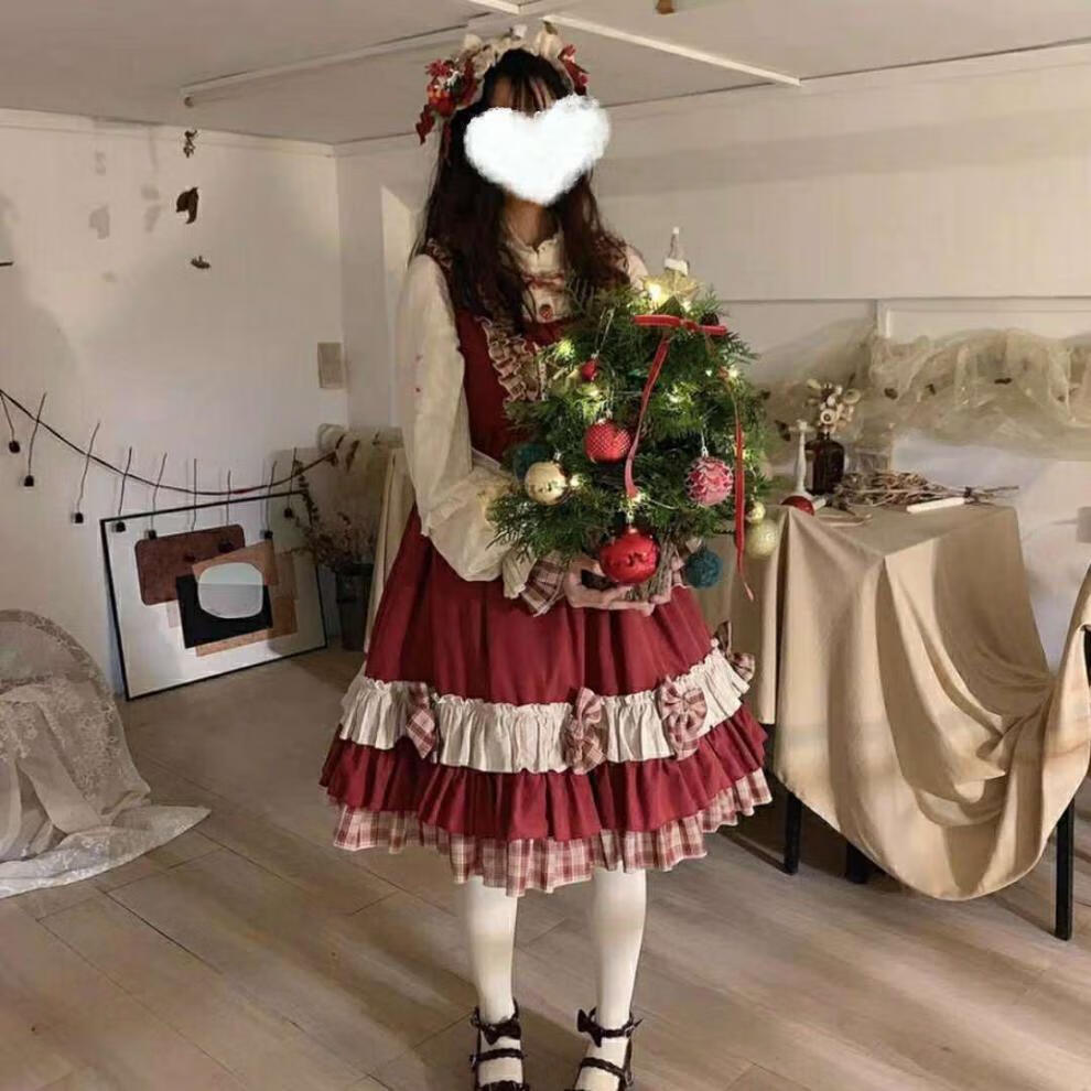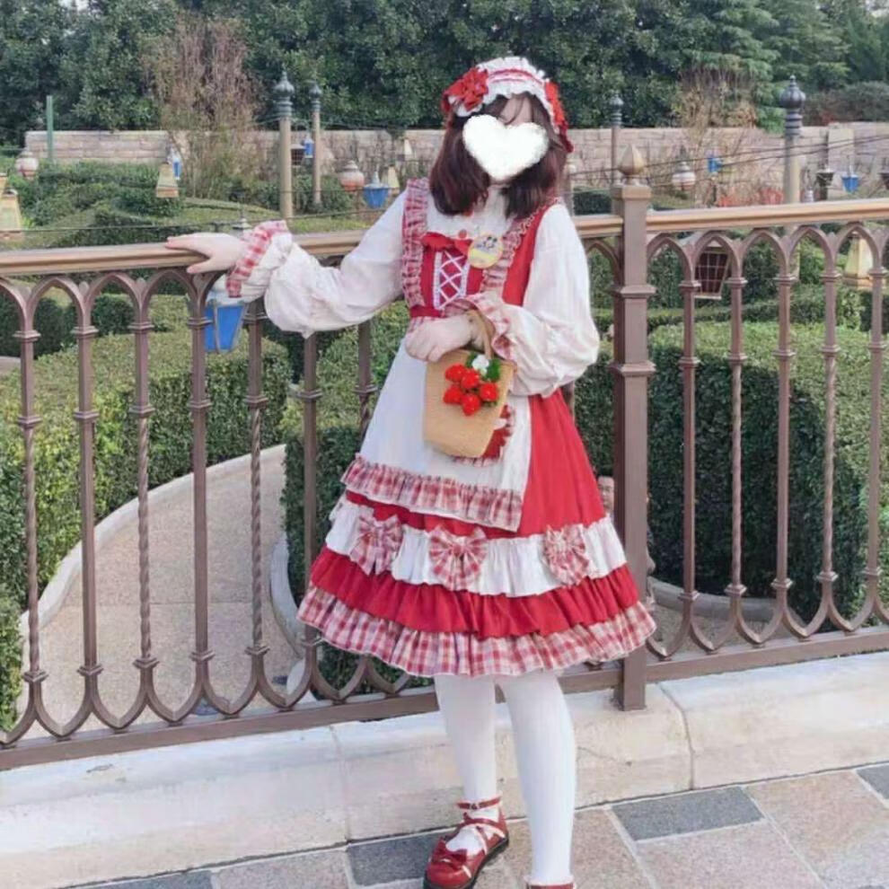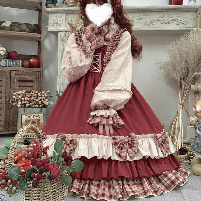 Shaquhe Lolita skirt berry girl op retro little red riding hood cloak long-sleeved Japanese dress lolita dress fairy burgundy dress 165 S