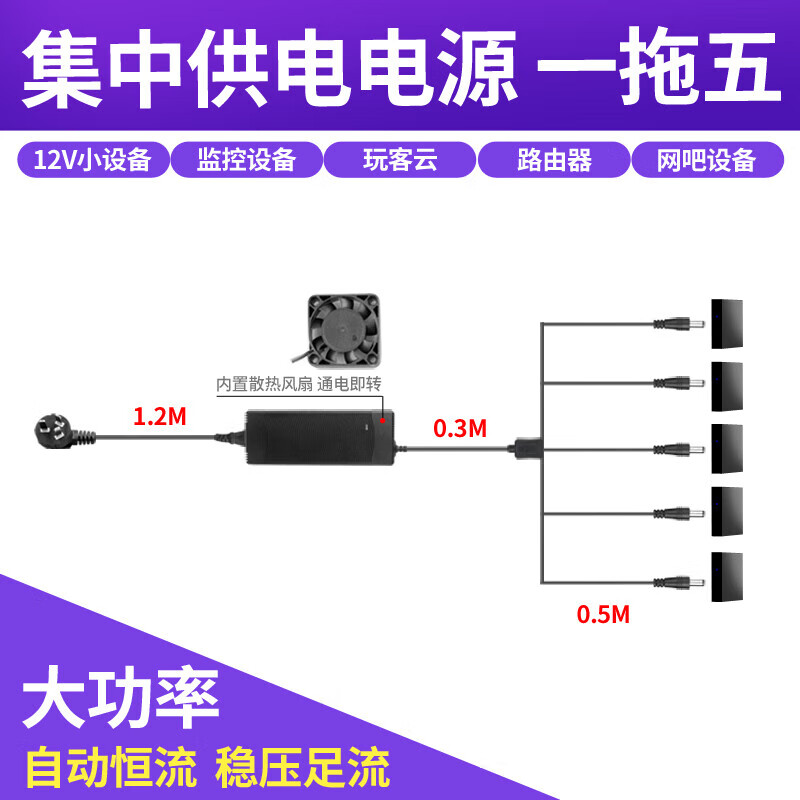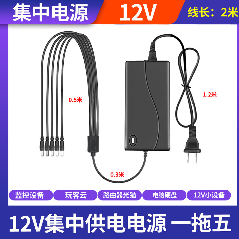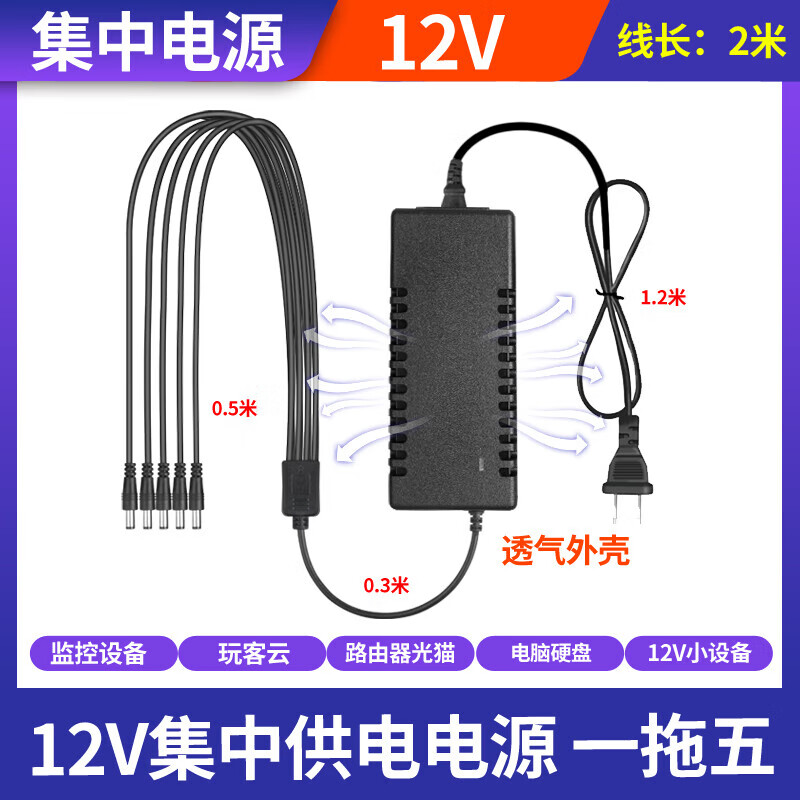 Surveillance camera power supply 1 point 5 channels 12V5A8A10A15 DC one to five eight multi-channel centralized power supply 12V8A one to four