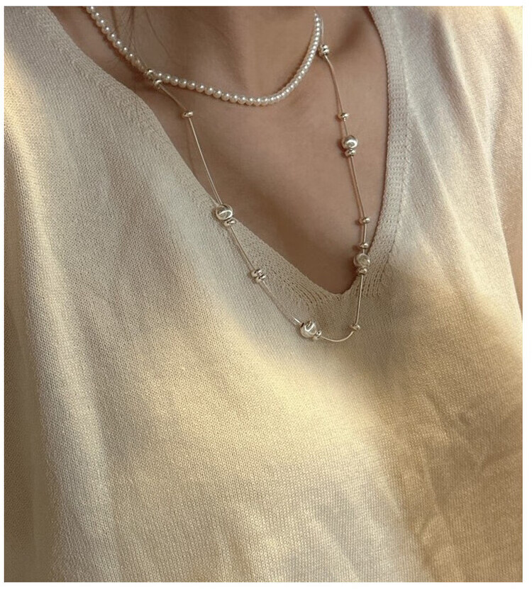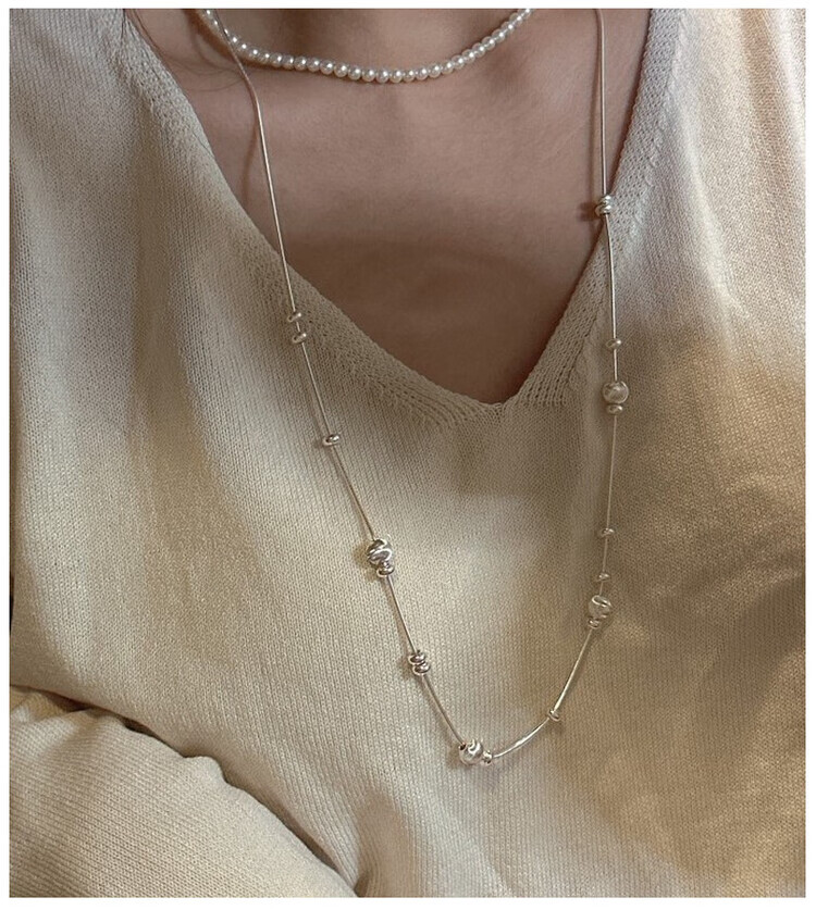 S925 sterling silver Korean version niche design starry sky multi-wear pull-out snake bone necklace Korean version Korean sweater chain 38TL31 925 silver