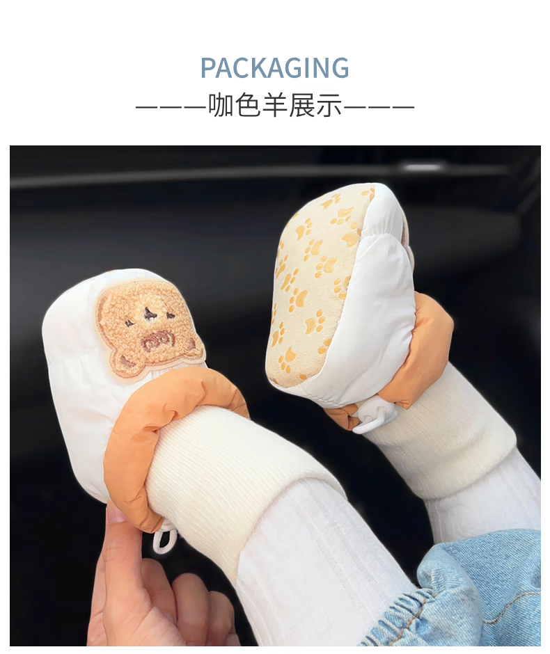 Miduer autumn and winter newborn baby 0-1 year old male and female baby soft-soled thickened shoes and socks all-in-one non-falling plus velvet waterproof cotton shoes 2 beige bears (Zai Zai waterproof cotton shoes) 12.5 M inner length 12.5cm recommended 8-15 months