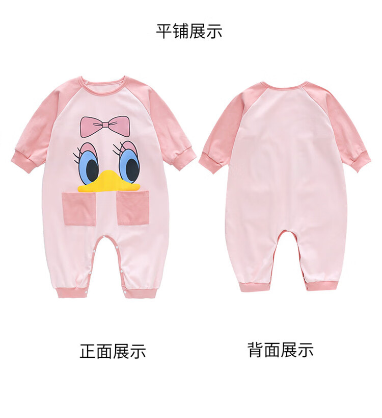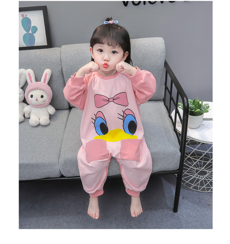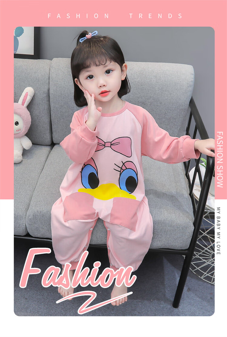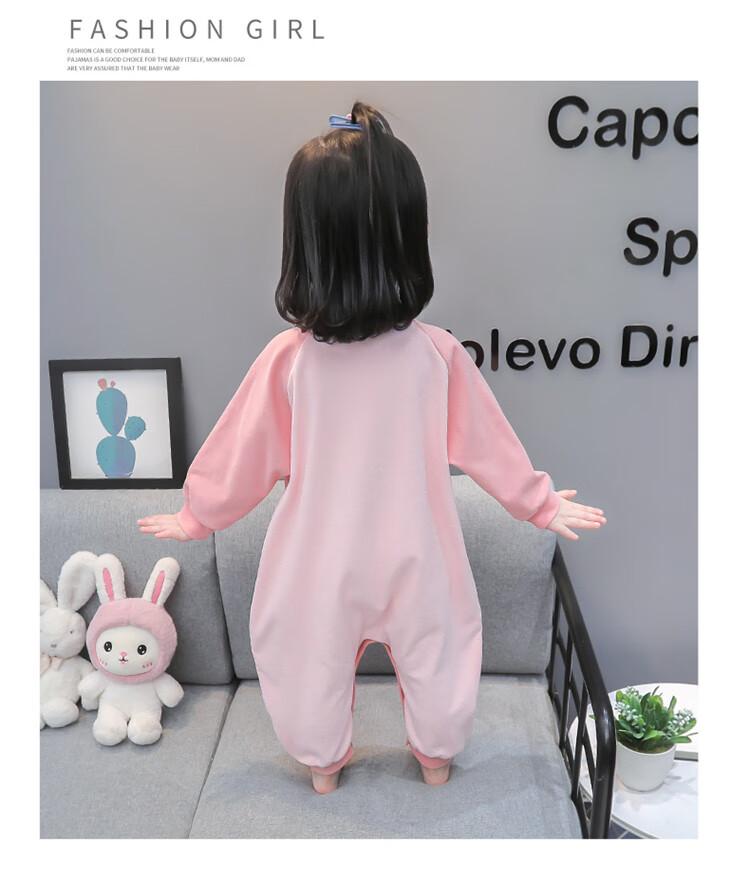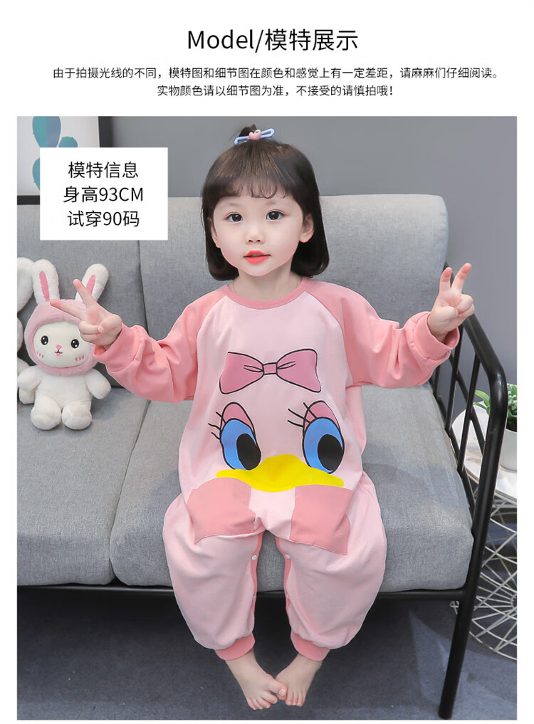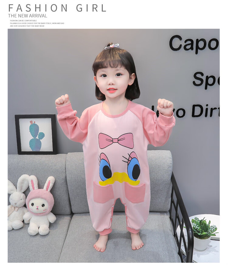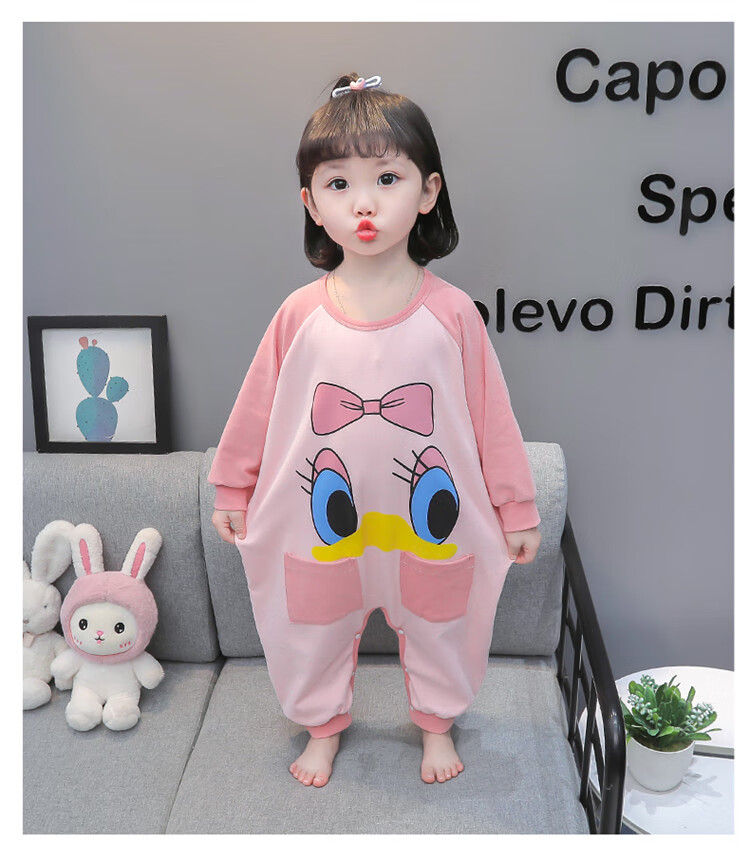 Disney Children's One-piece Pajamas Spring and Autumn Pure Cotton Girls Baby Sleeping Bag Girls One-piece Cartoon Romper Suit Spring Home Clothing Pink 80cm