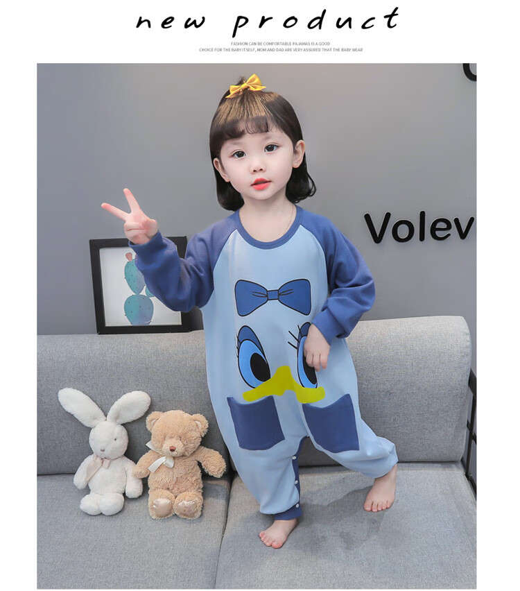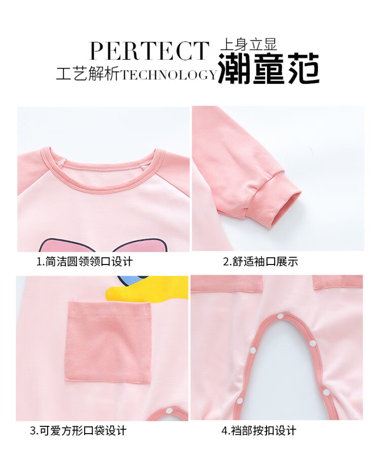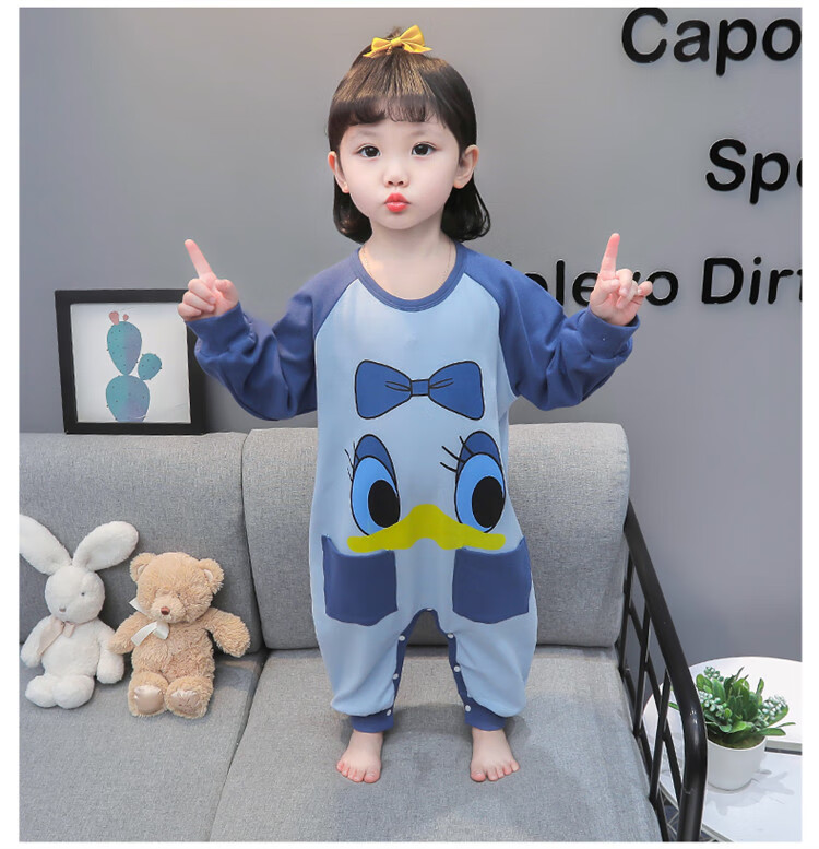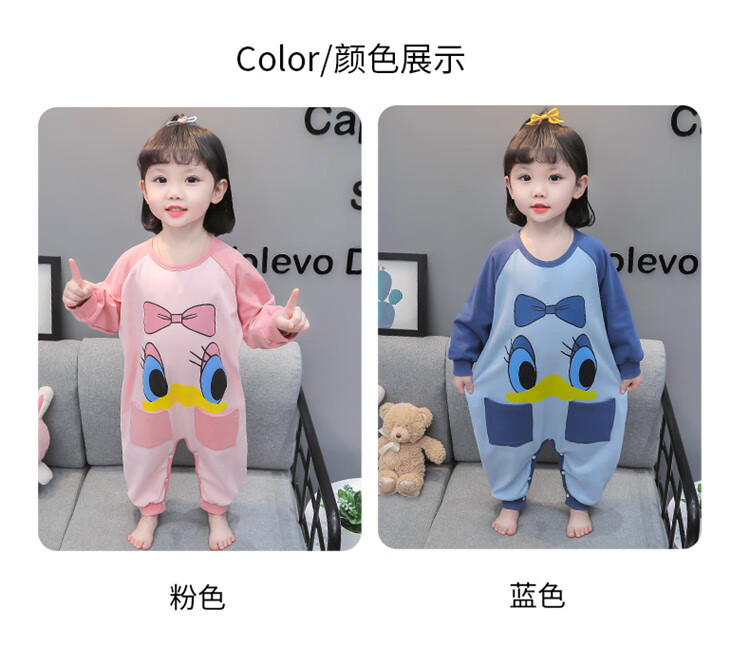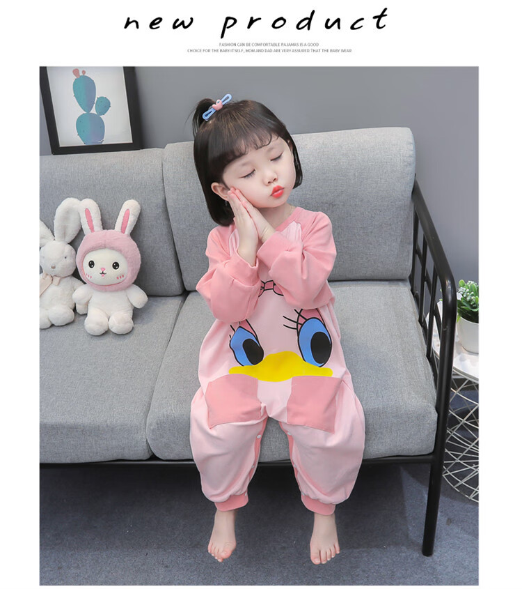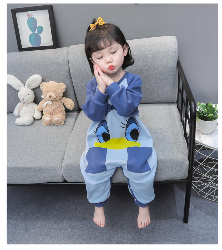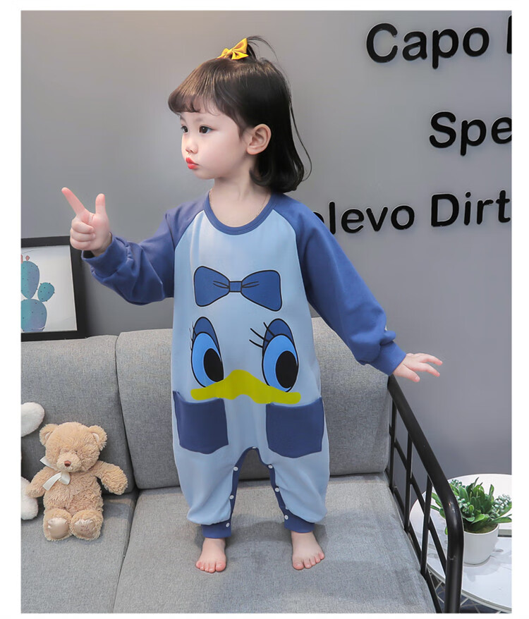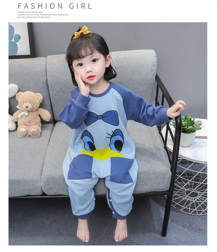 Disney Children's One-piece Pajamas Spring and Autumn Pure Cotton Girls Baby Sleeping Bag Girls One-piece Cartoon Romper Suit Spring Home Clothing Pink 80cm