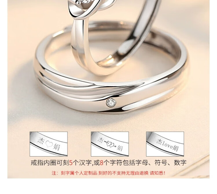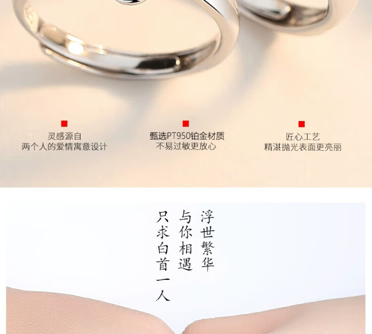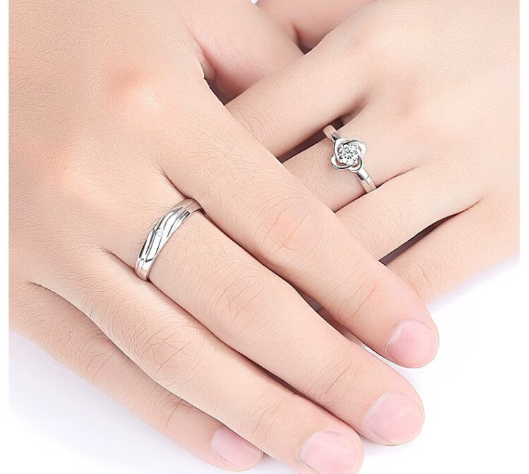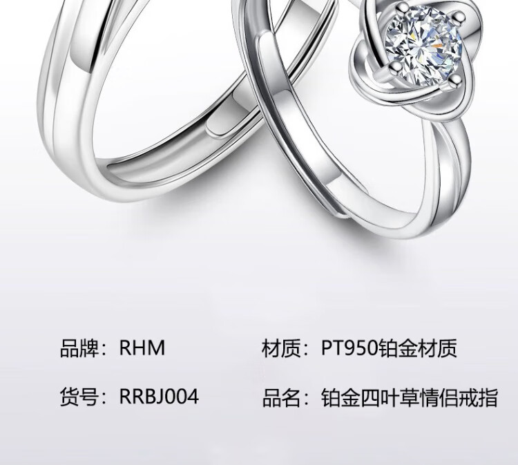 RHMPT950 Platinum Couple Ring Four-leaf Clover Moissanite Diamond Ring Customized Engraving Valentine's Day Gift for Girlfriend Platinum Moissanite Couple Ring + Certificate + Gift Box