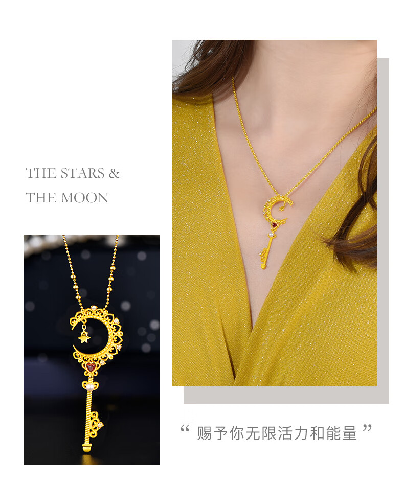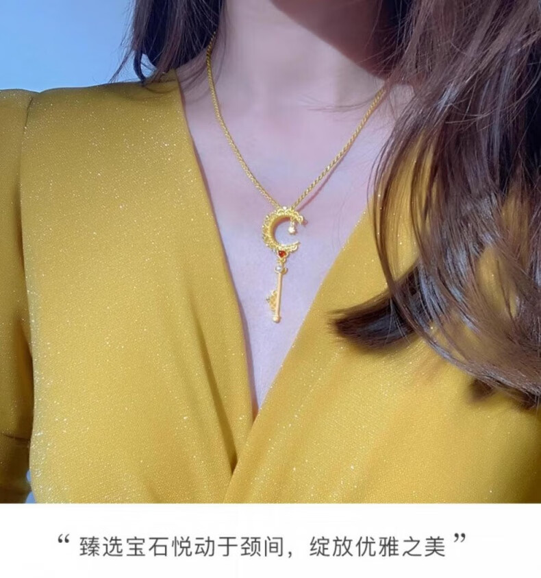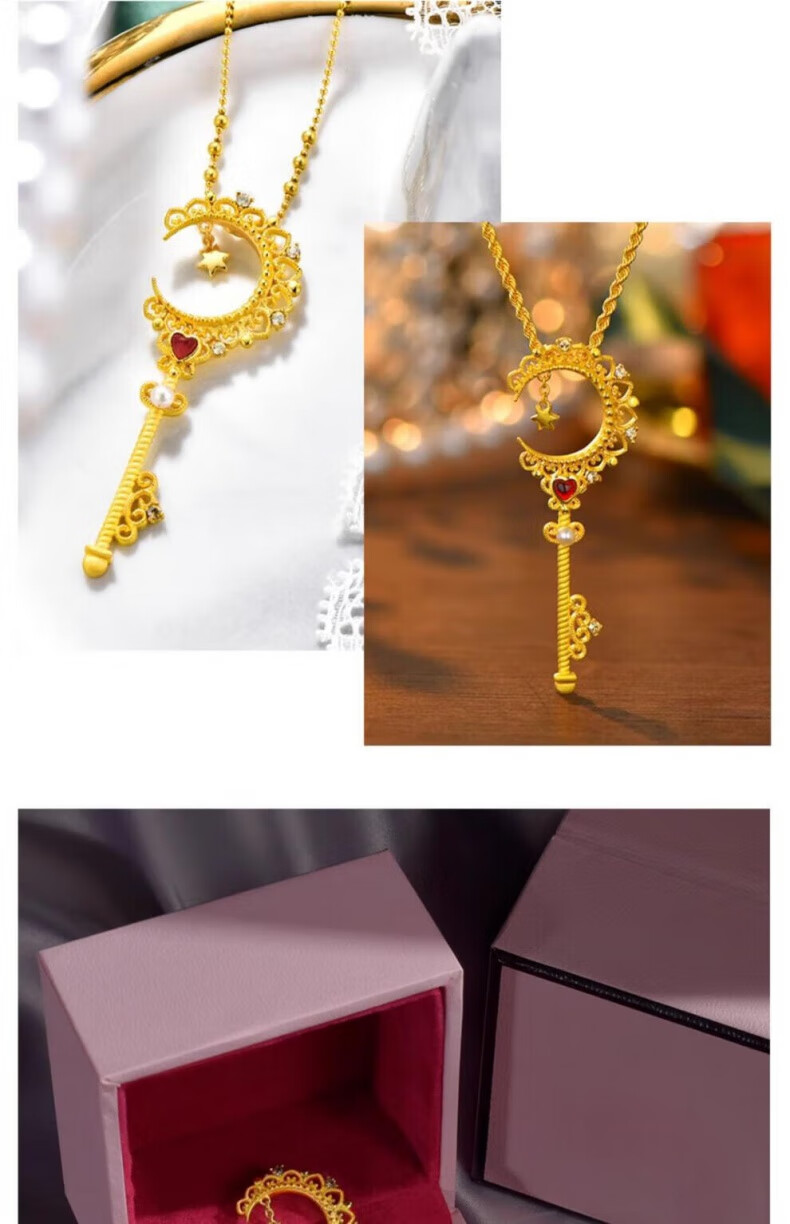 COASZE gold key pendant scepter Xingyue 999 pure gold pearl pure gold necklace pendant style Xingyue scepter