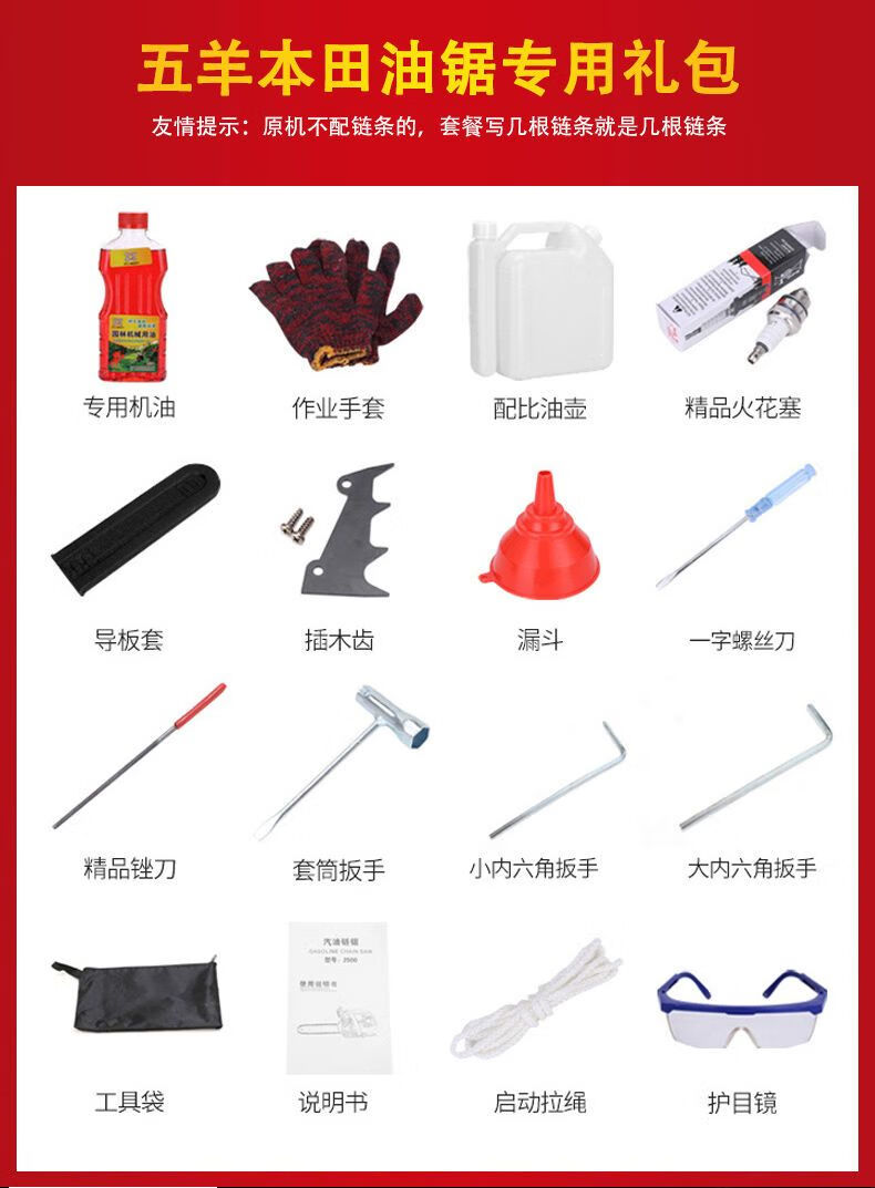 Wuyang Honda imported pure gasoline four-stroke three-row small chain saw 14-inch logging bamboo saw one-handed lightweight small household chain saw one bottle of oil