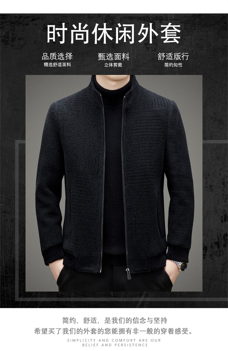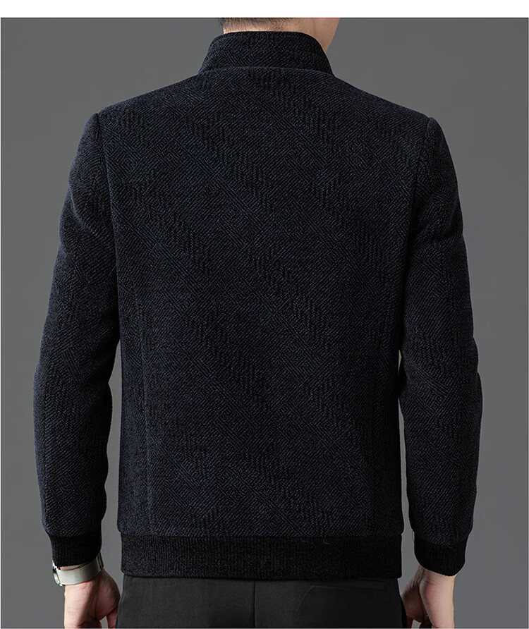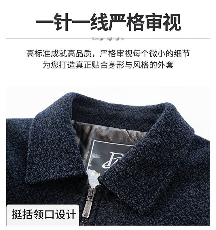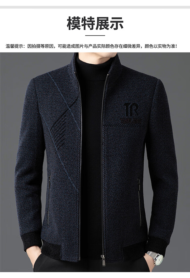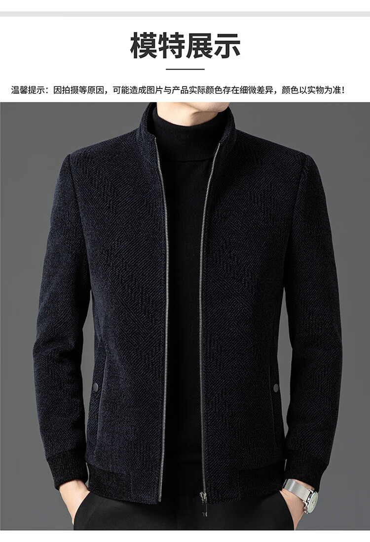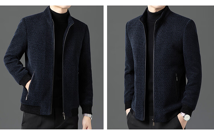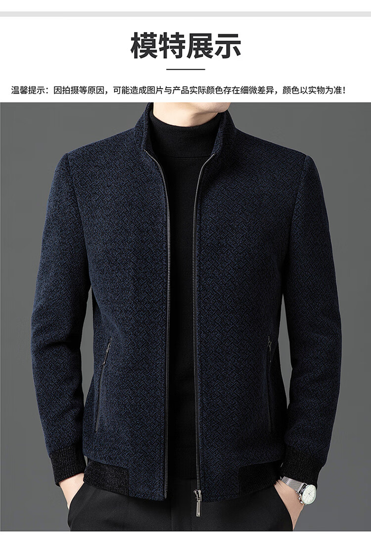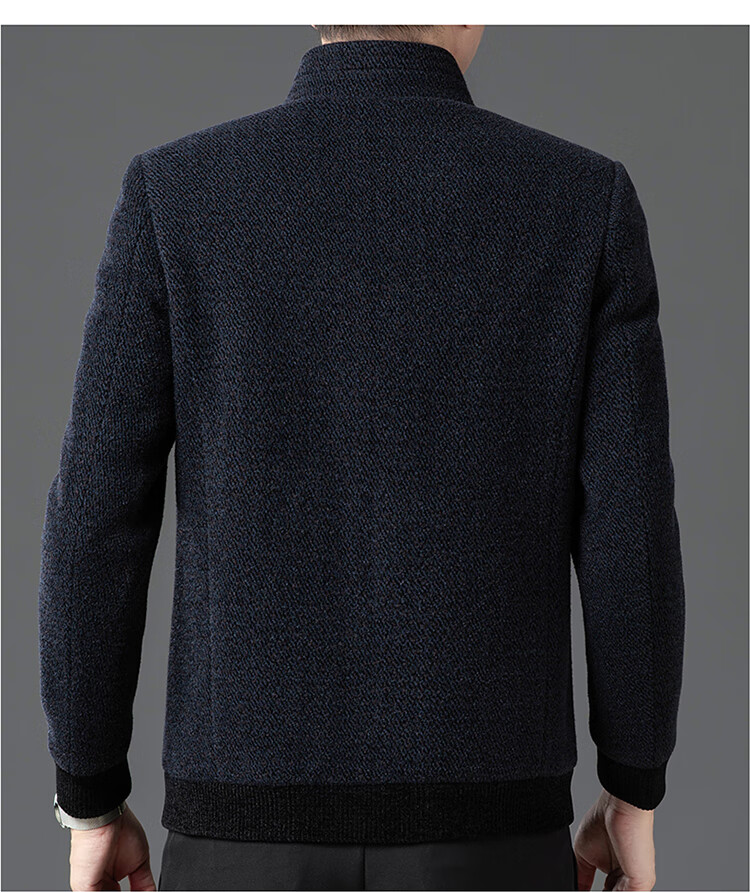 Hengyuanxiang Woolen Jacket Men's 2024 Autumn and Winter Middle-aged Cotton Thickened High-End Casual Jacket Men W9916 Stand Collar Navy Blue 170/M Recommended Weight 110-130Jin Jin is equal to 0.5 kg