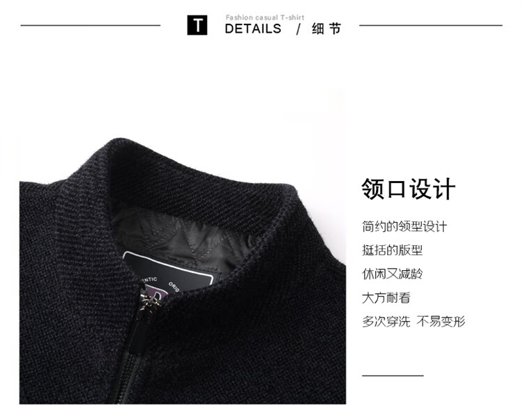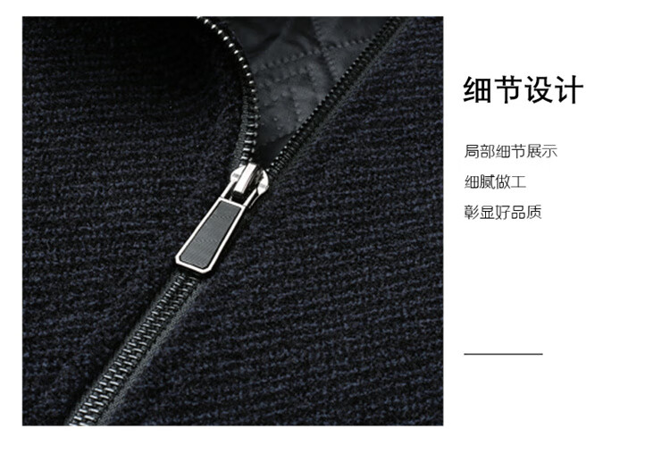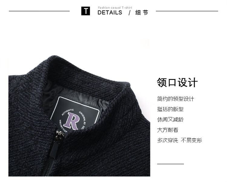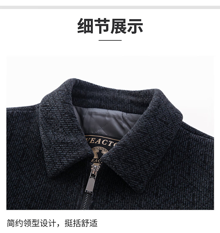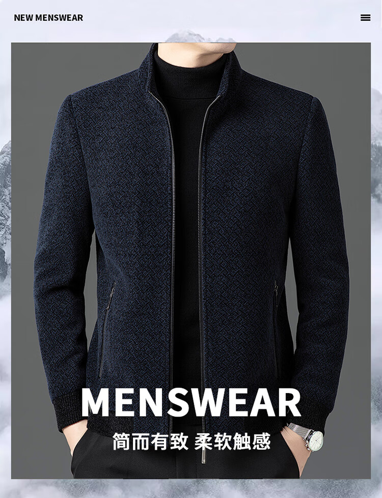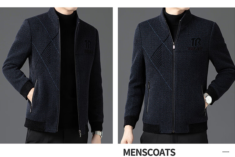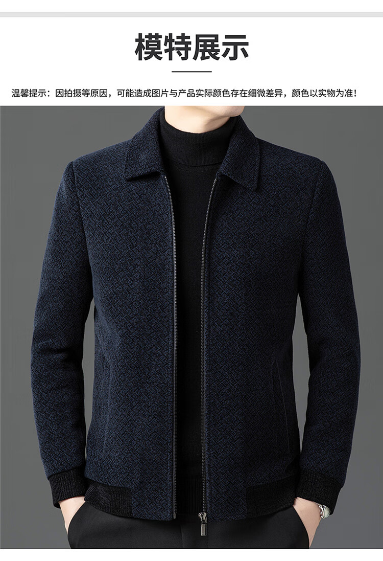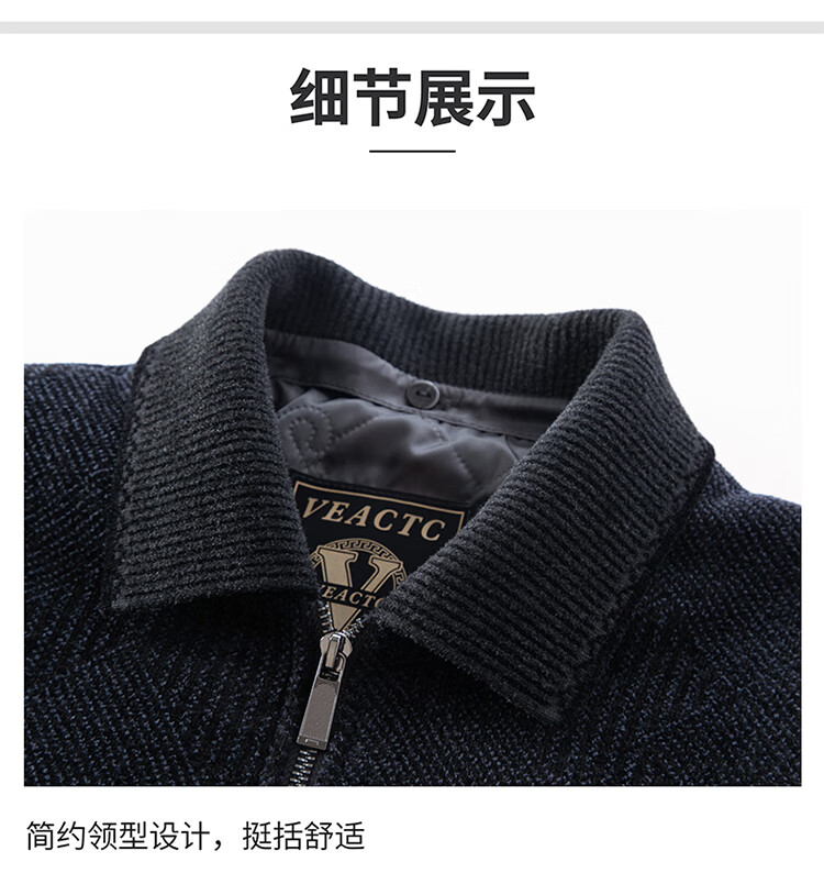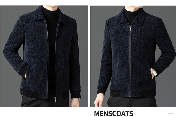 Hengyuanxiang Woolen Jacket Men's 2024 Autumn and Winter Middle-aged Cotton Thickened High-End Casual Jacket Men W9916 Stand Collar Navy Blue 170/M Recommended Weight 110-130Jin Jin is equal to 0.5 kg