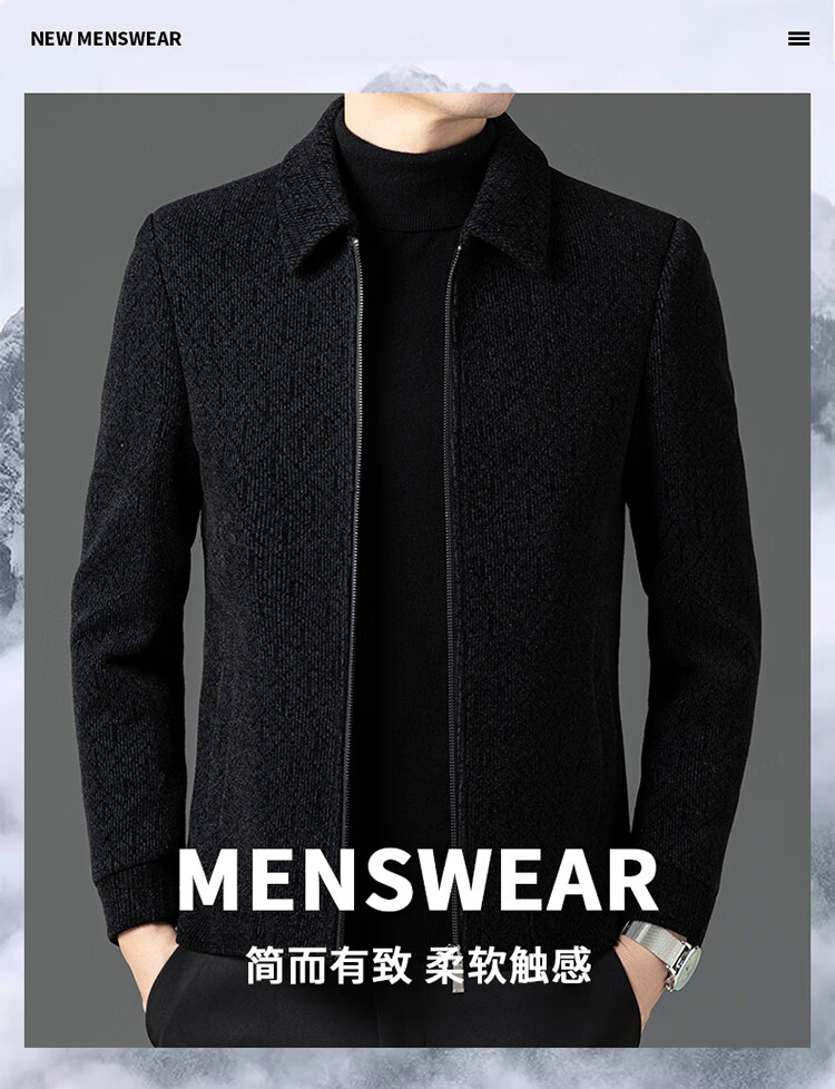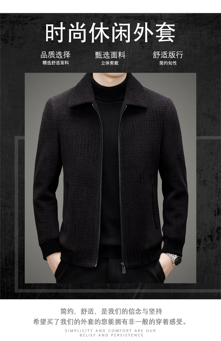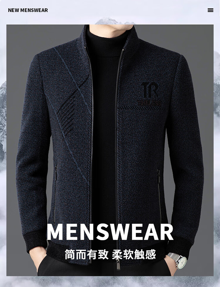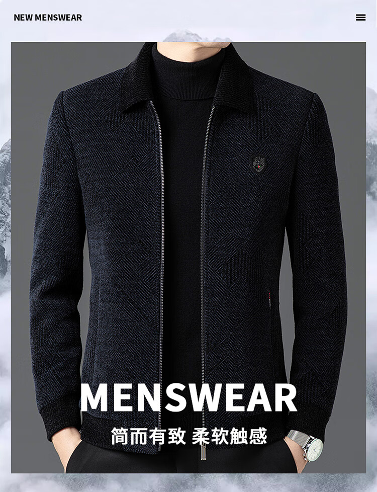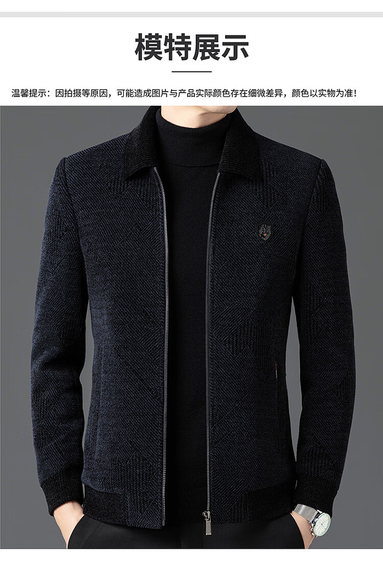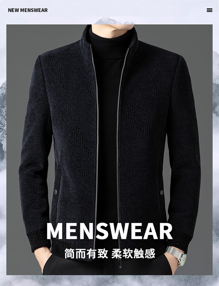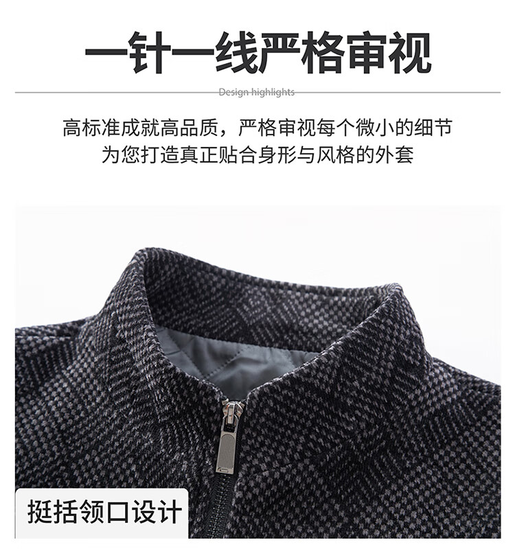 Hengyuanxiang Woolen Jacket Men's 2024 Autumn and Winter Middle-aged Cotton Thickened High-End Casual Jacket Men W9916 Stand Collar Navy Blue 170/M Recommended Weight 110-130Jin Jin is equal to 0.5 kg