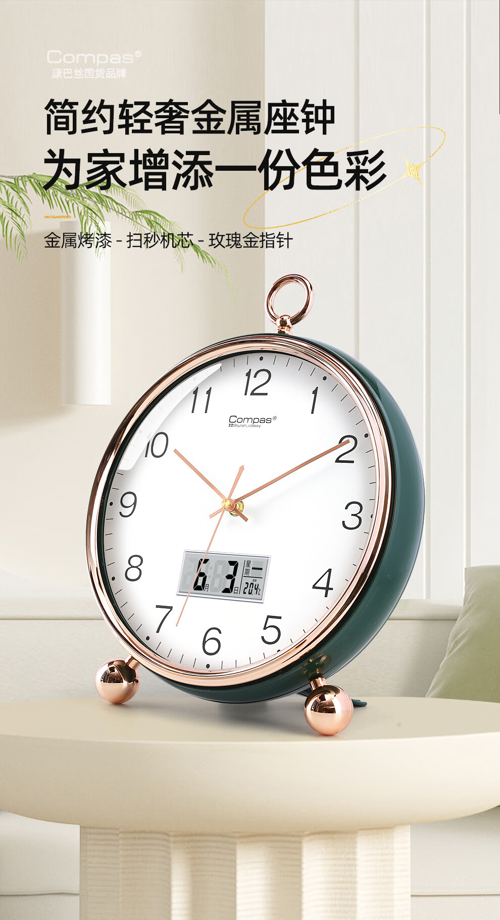 Kangbas simple table clock living room bedroom study desktop clock 2025 creative fashion desk clock calendar quartz clock 3476 dark green white (29 cm)