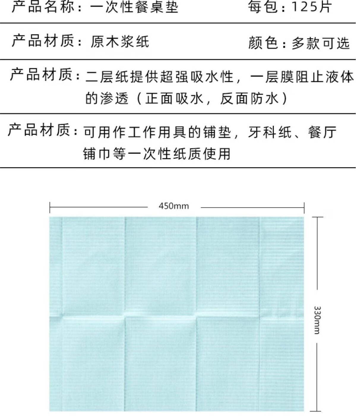 Shantou Lincun foreign disposable placemats 125 pieces children's lunch mat bedding table mat paper cartoon solid color thickened oil-proof tablecloth blue 125 pieces/bag