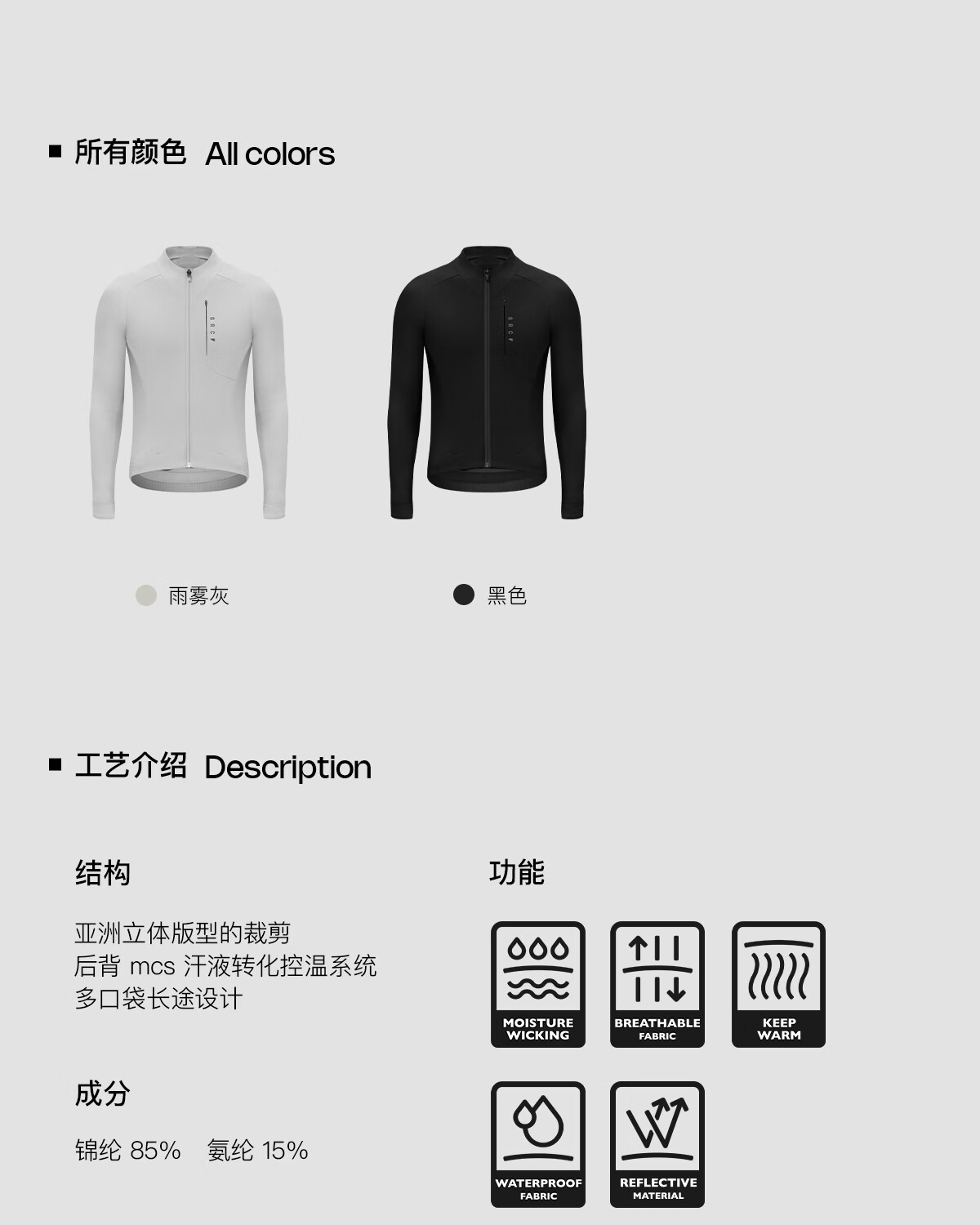 GRC Unruly Black Label Black Label Series Autumn and Winter Fleece Cycling Jacket Men Rain Fog Gray XL