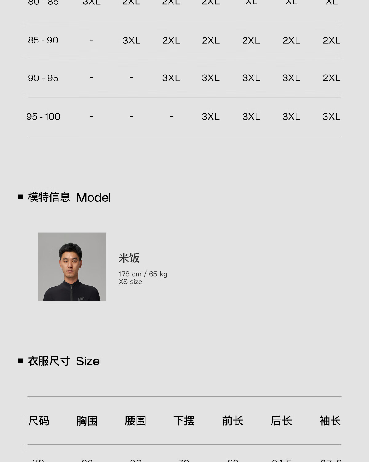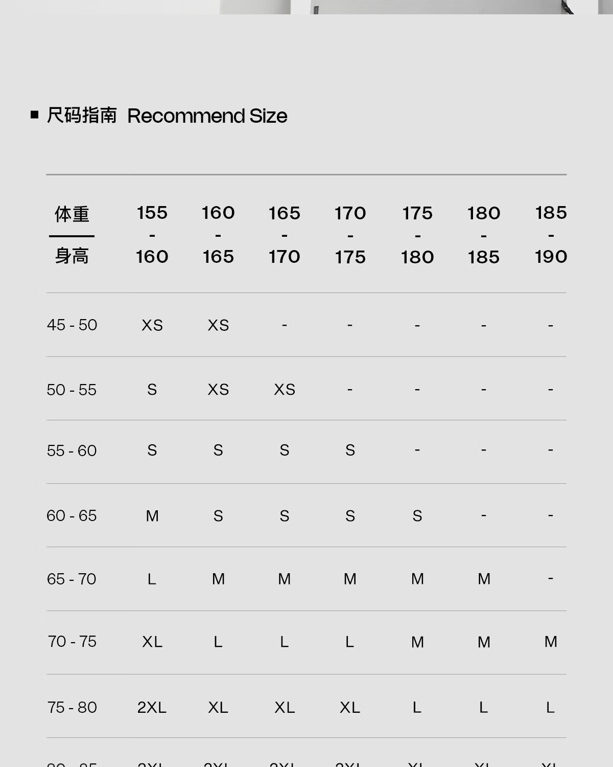 China (cm) 160-165/84-86 165-170 / 88-90 167-172 / 92-96 168-173 / 98-102 170-176 / 106-110