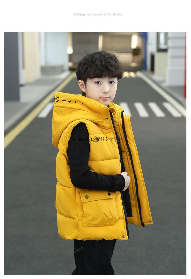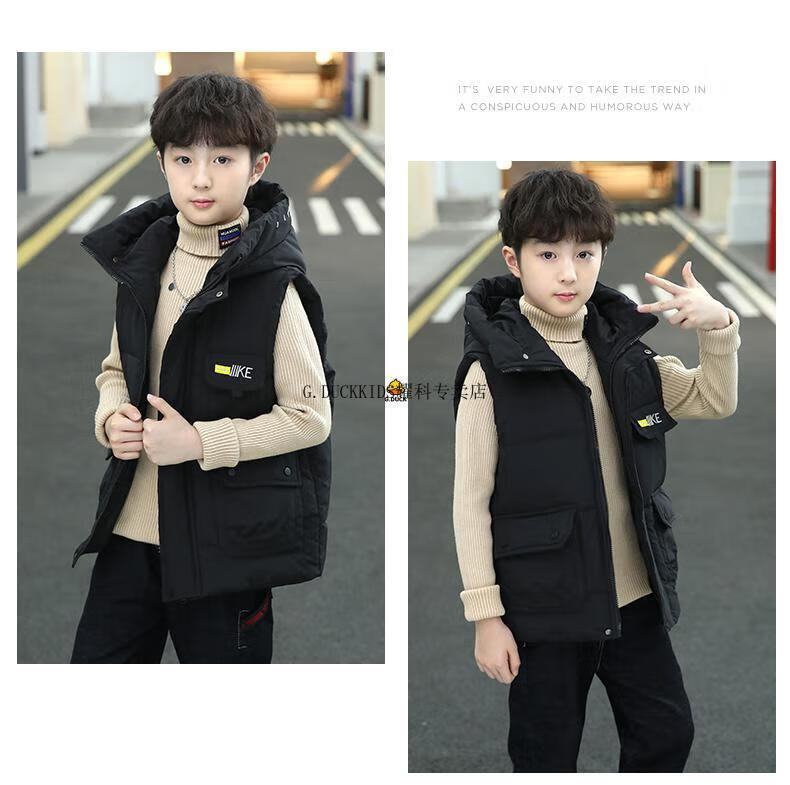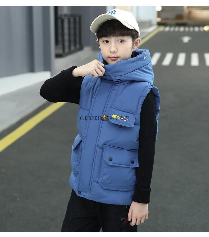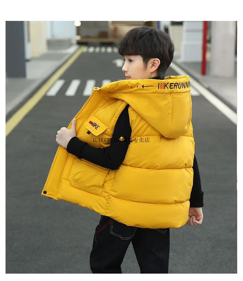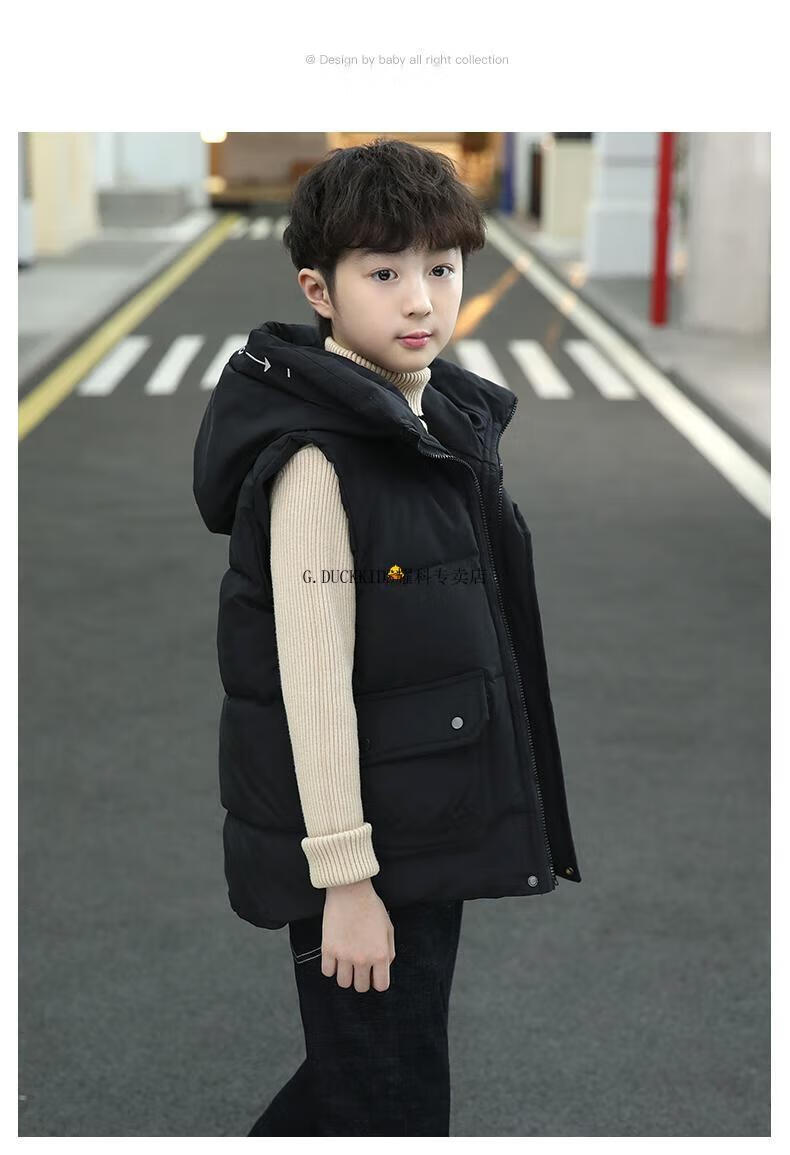 G.DUCKKIDS Little Yellow Duck 6-15 years old medium and large children autumn and winter down cotton vest boys hooded Korean style coat thermal vest black 150cm