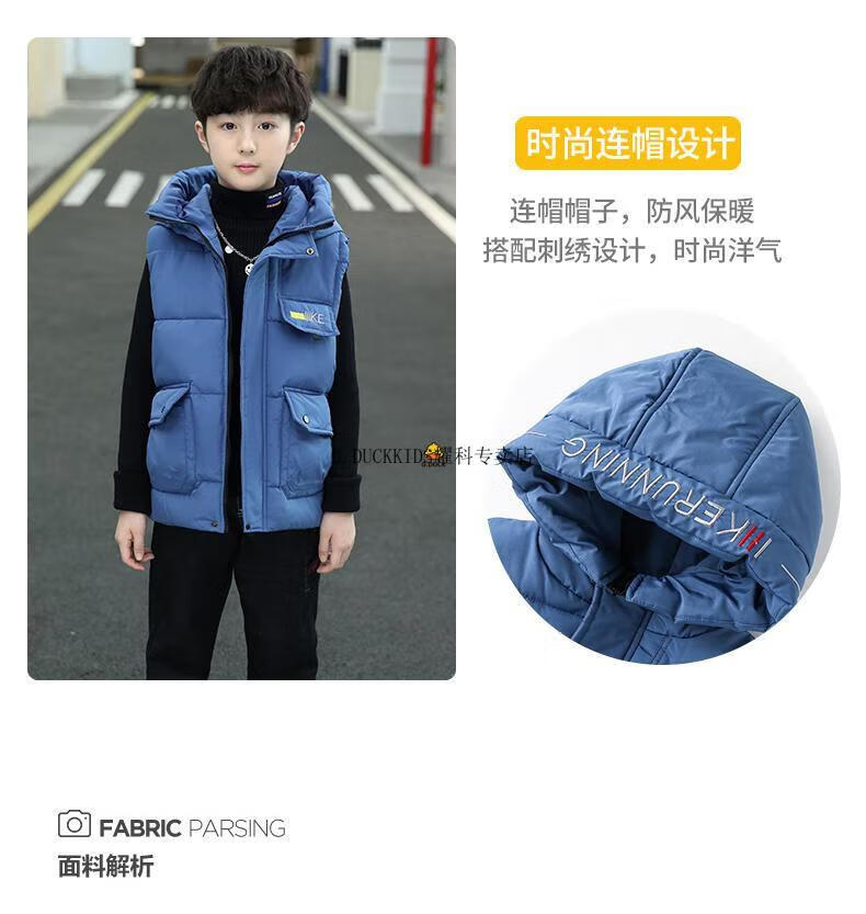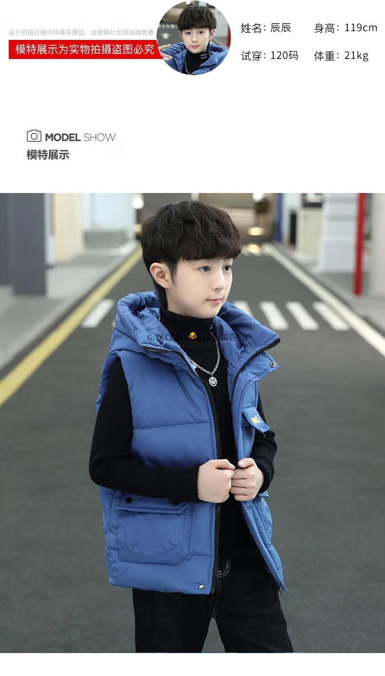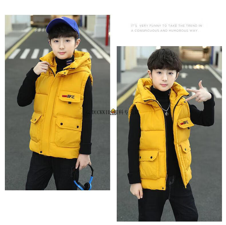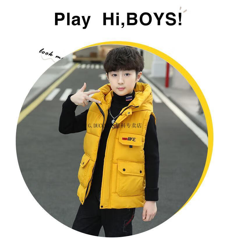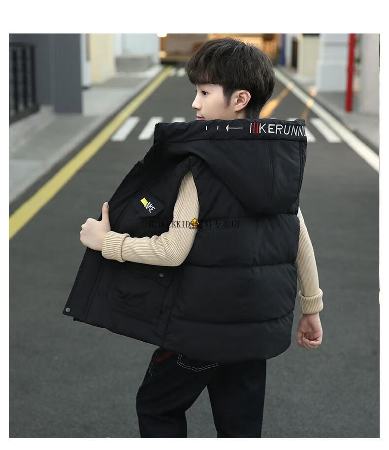 G.DUCKKIDS Little Yellow Duck 6-15 years old medium and large children autumn and winter down cotton vest boys hooded Korean style coat thermal vest black 150cm