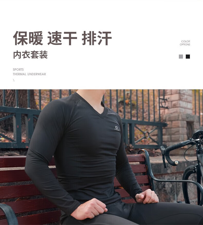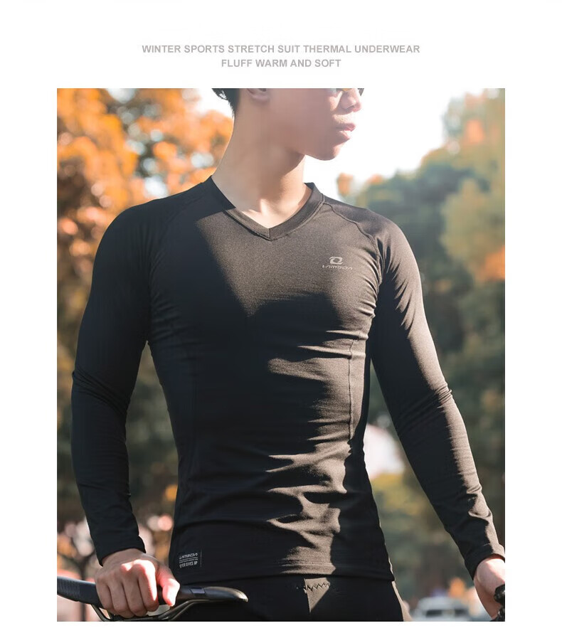 Lampada autumn and winter velvet thermal underwear outdoor sports cycling clothing quick-drying sweat-wicking function running suit for men quick-drying sweat-sport-specific gray suit L (65-75kg)