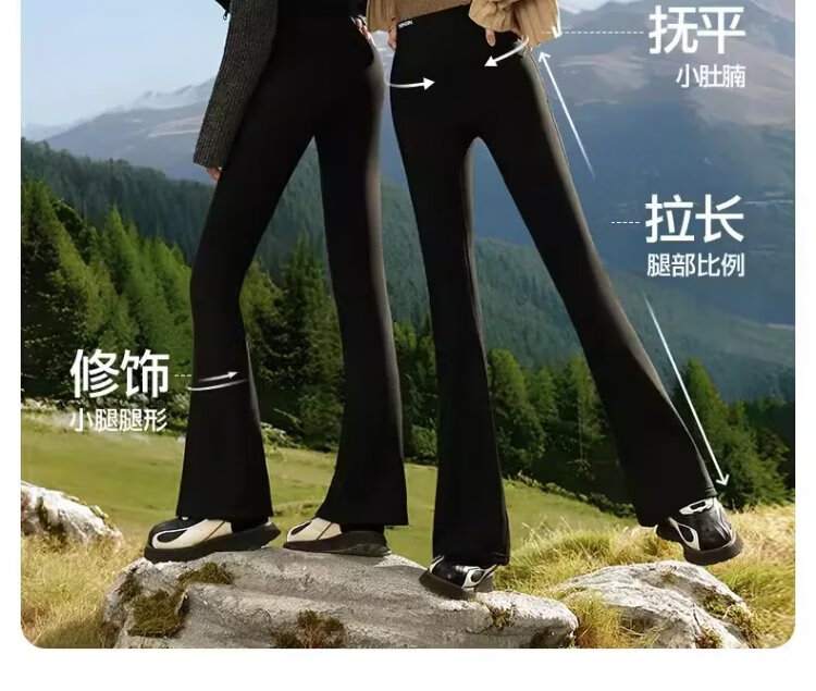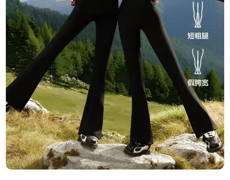 SIINSIIN Yang Mi's same style micro-flared pants for women in autumn and winter, new velvet yoga pants, warm shark flared pants, medium warm 6.0pro, small - slim black (net height 155-160cm) M 100-120Jin Jin equals 0.5kg