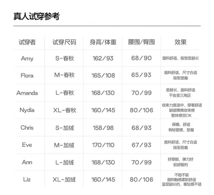 China (cm) 160-165/84-86 165-170 / 88-90 167-172 / 92-96 168-173 / 98-102 170-176 / 106-110