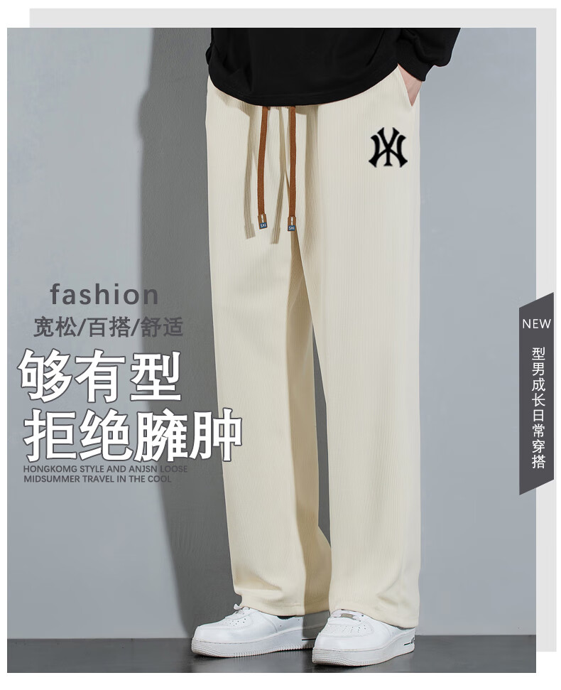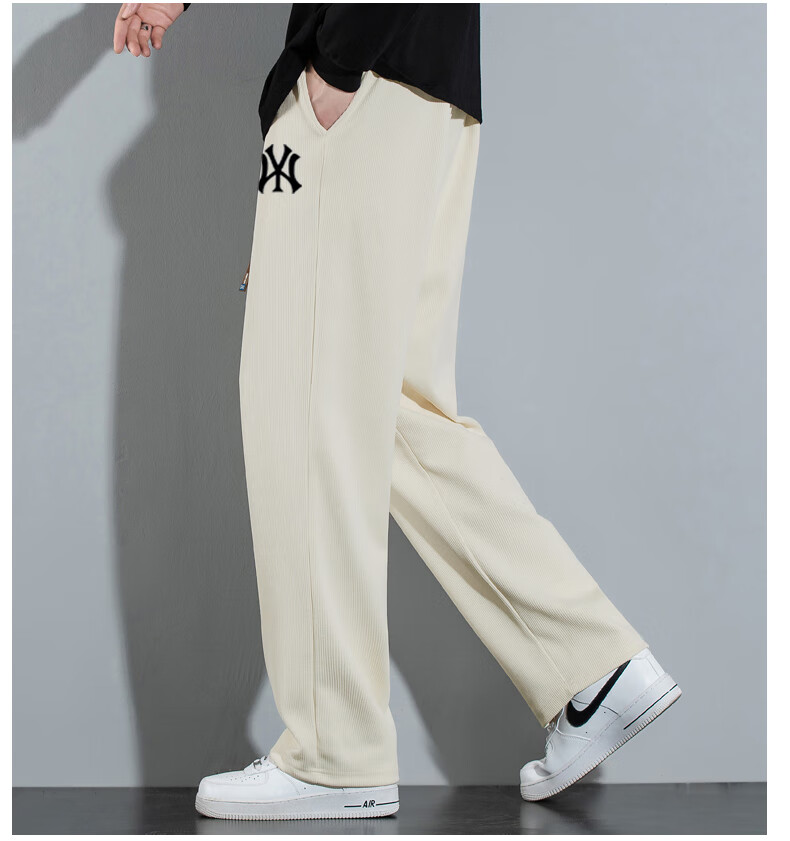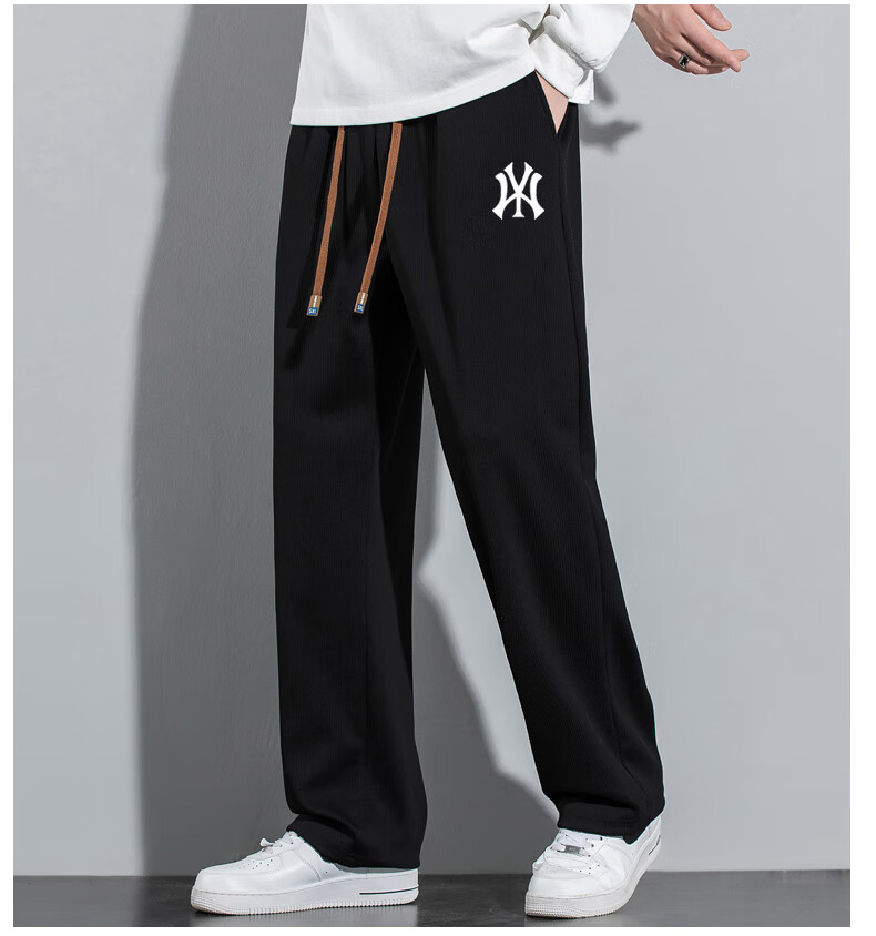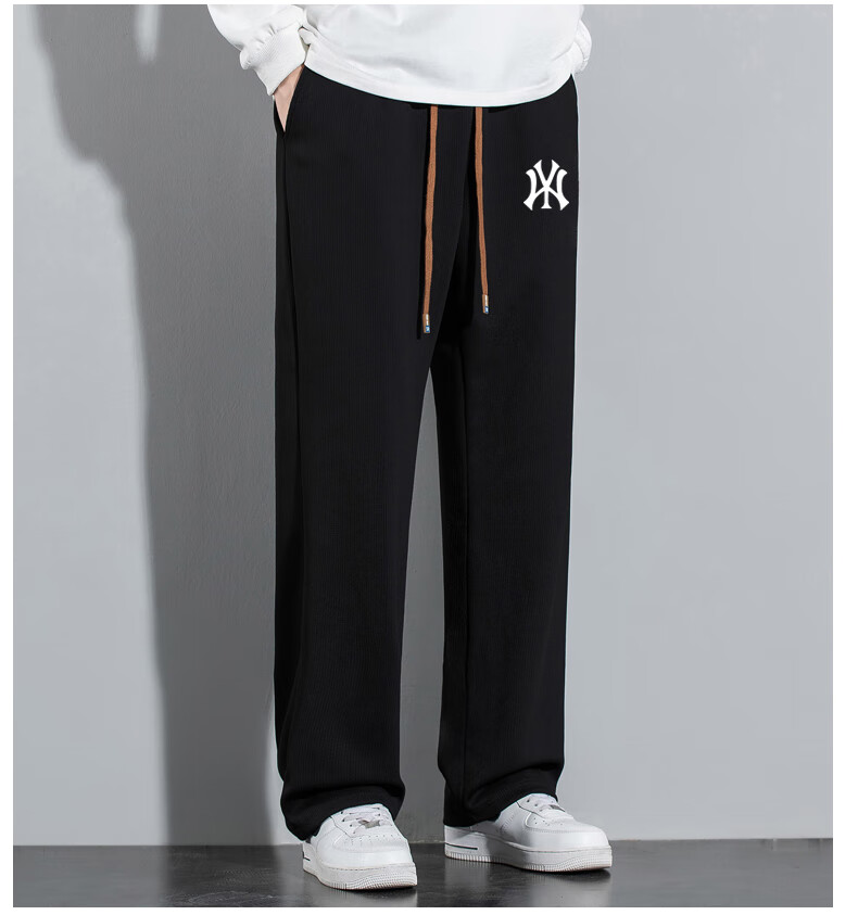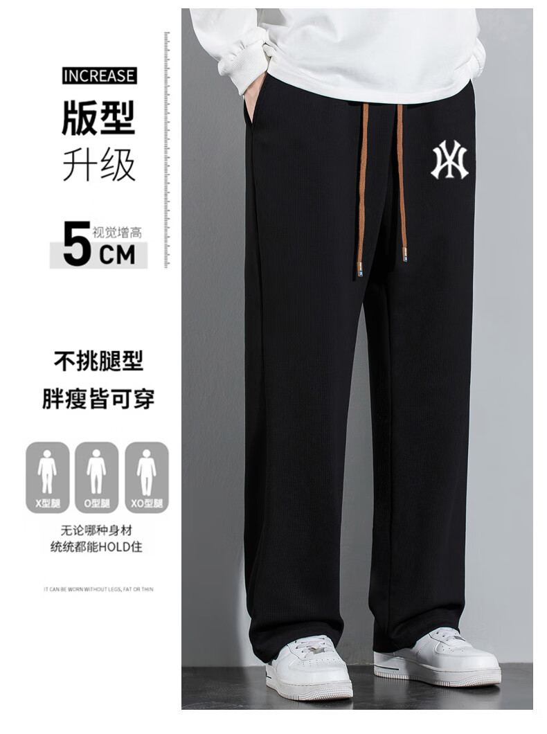 ARNTARE official trendy brand casual pants for men and women, autumn and winter plus velvet, loose and simple solid color straight long pants wide leg pants 336 flat feet black-NE01 XL (weight 120-140Jin Jin equals 0.5 kg)