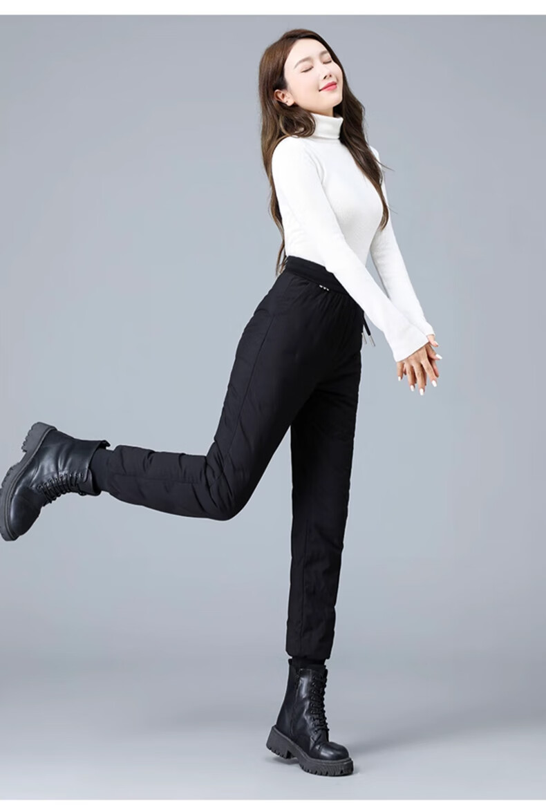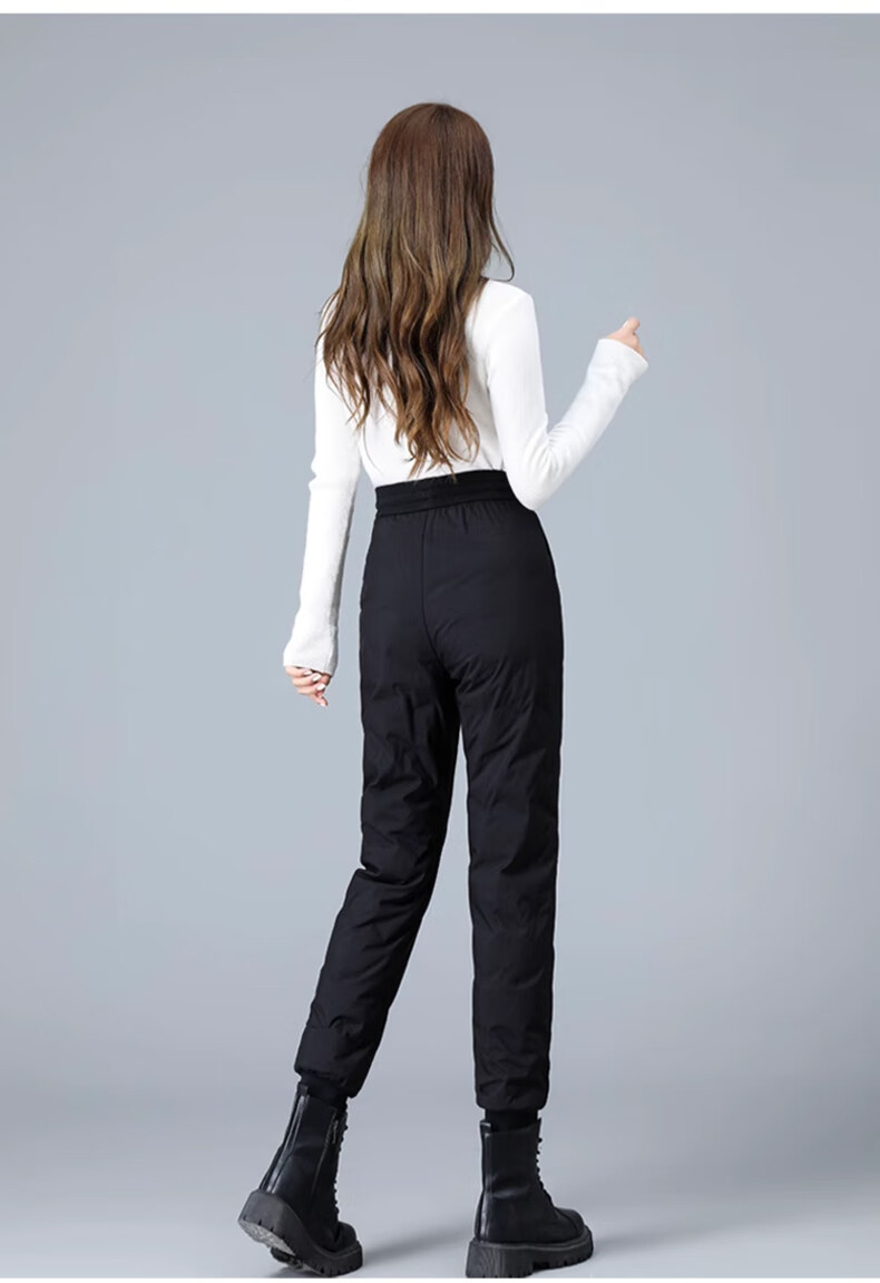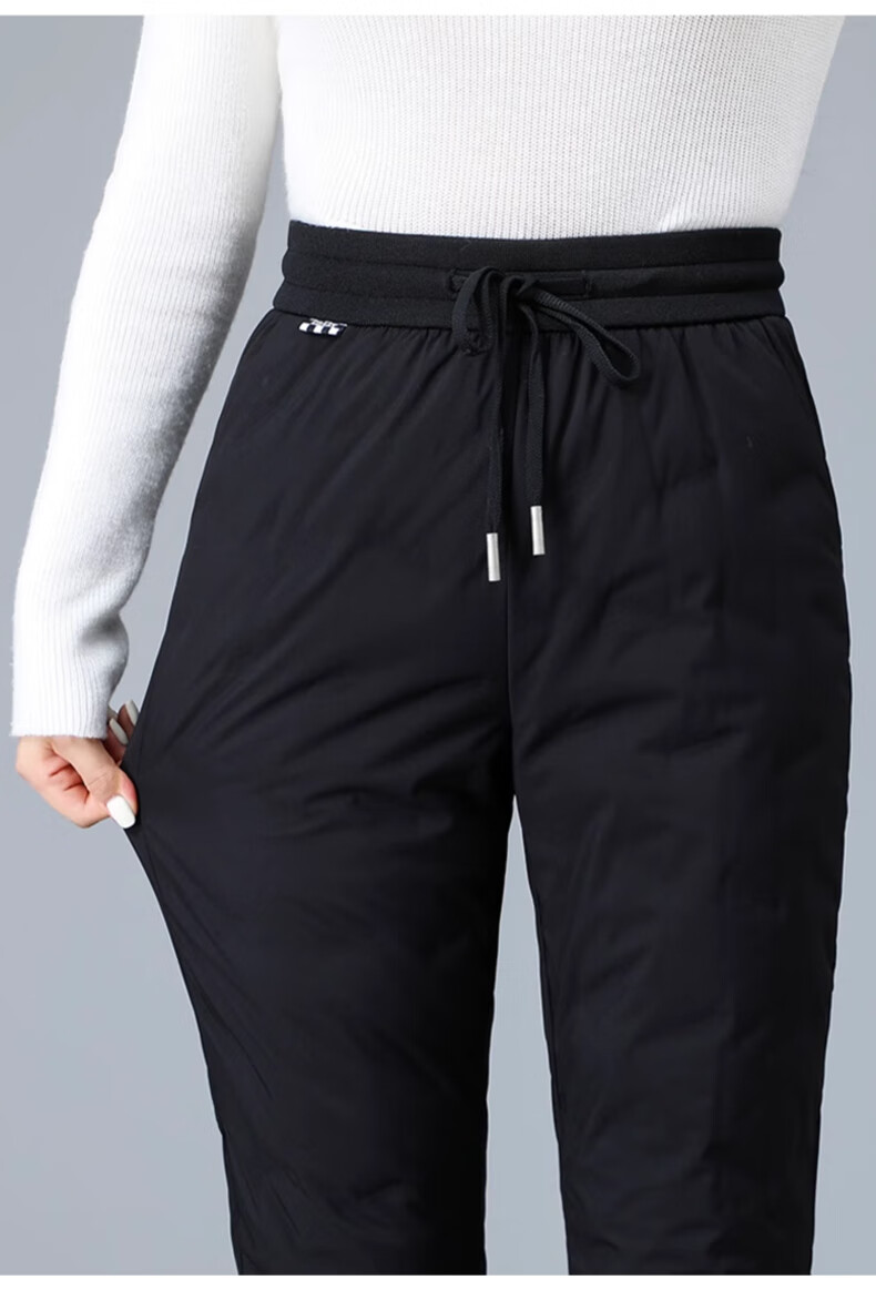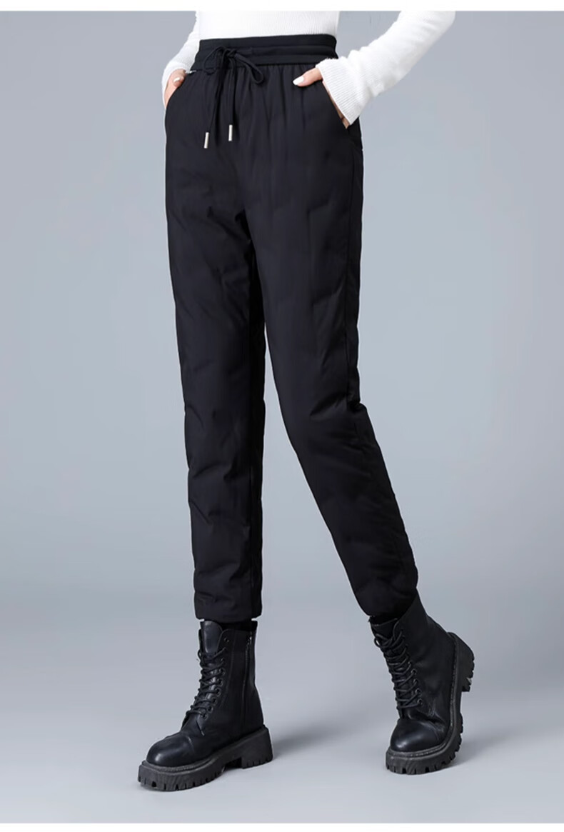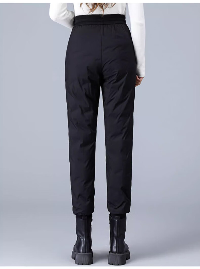 Yalu Down Pants Women's Outerwear 2025 Winter New Style Warm and Slimming High Waist Thickened Elastic Cotton Pants Leg-tie Women's Sweatpants Black XL