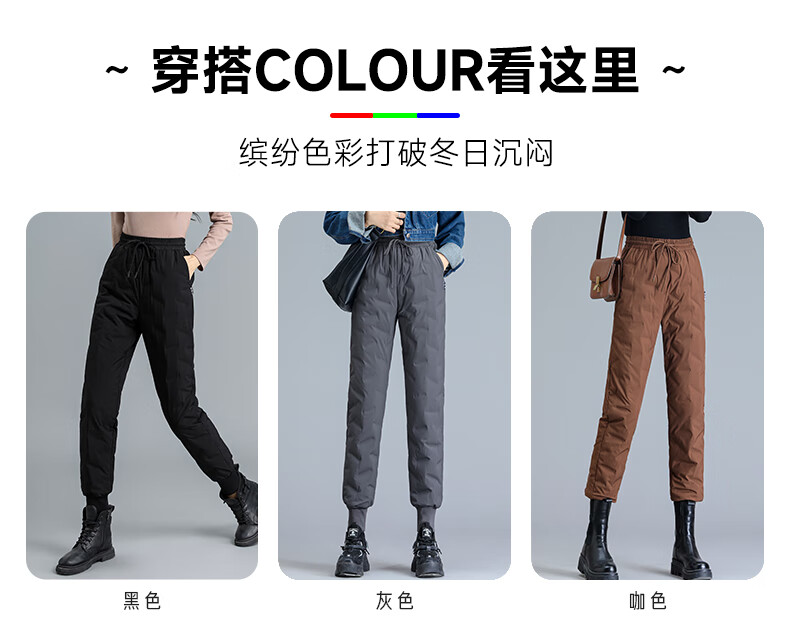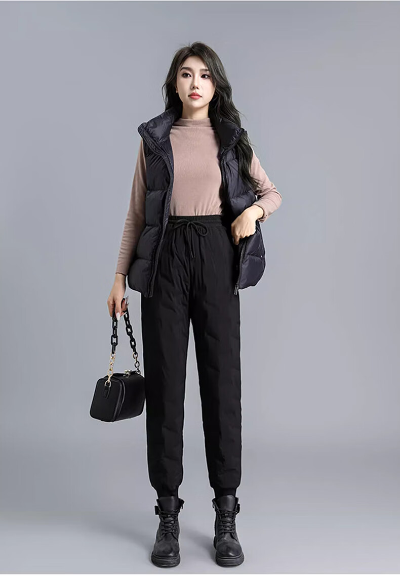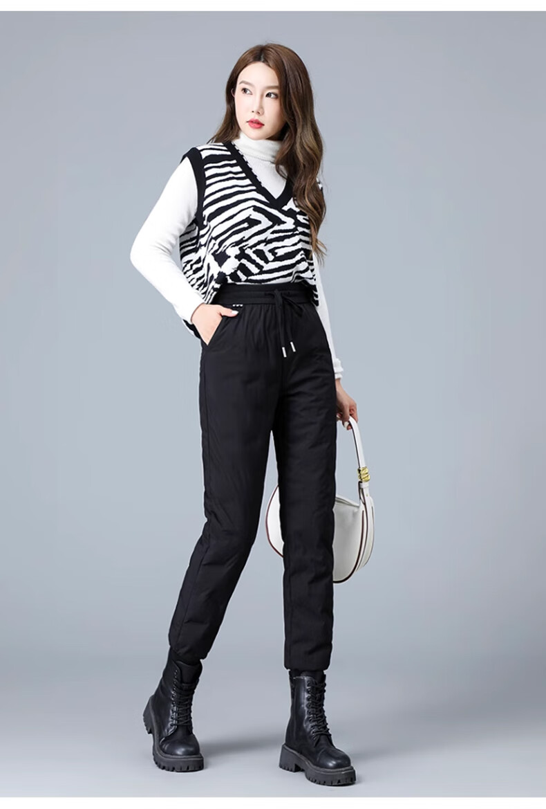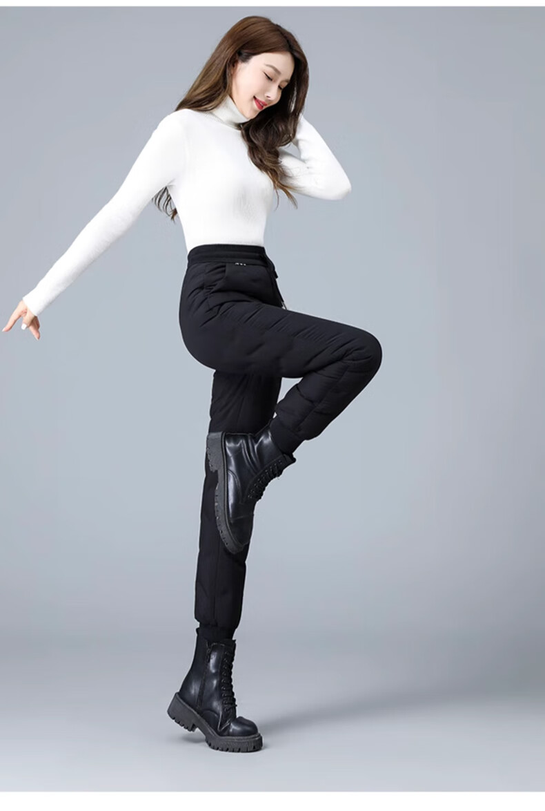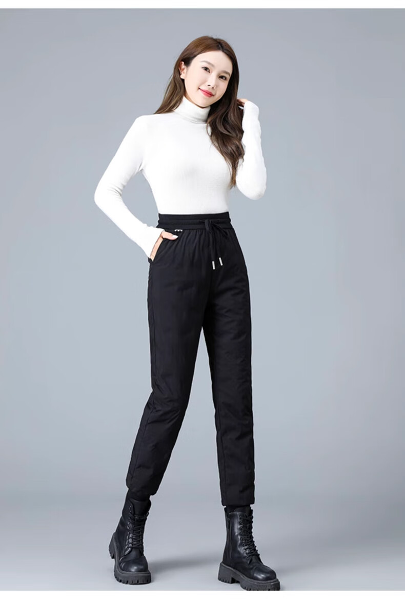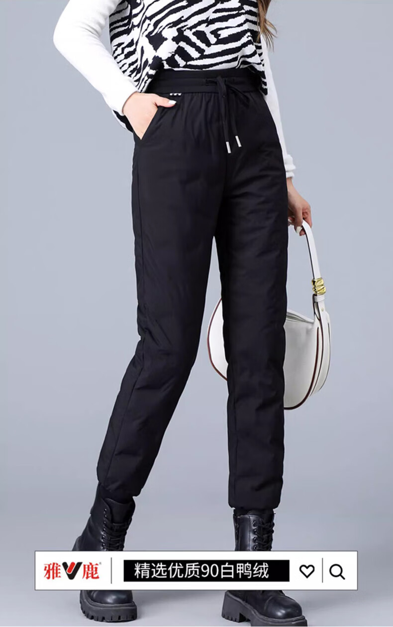 Yalu Down Pants Women's Outerwear 2025 Winter New Style Warm and Slimming High Waist Thickened Elastic Cotton Pants Leg-tie Women's Sweatpants Black XL