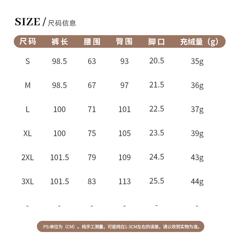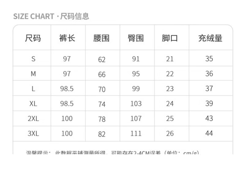 Outseam (cm) 99 cm 101.5 cm 104 cm 106.5 cm 109 cm