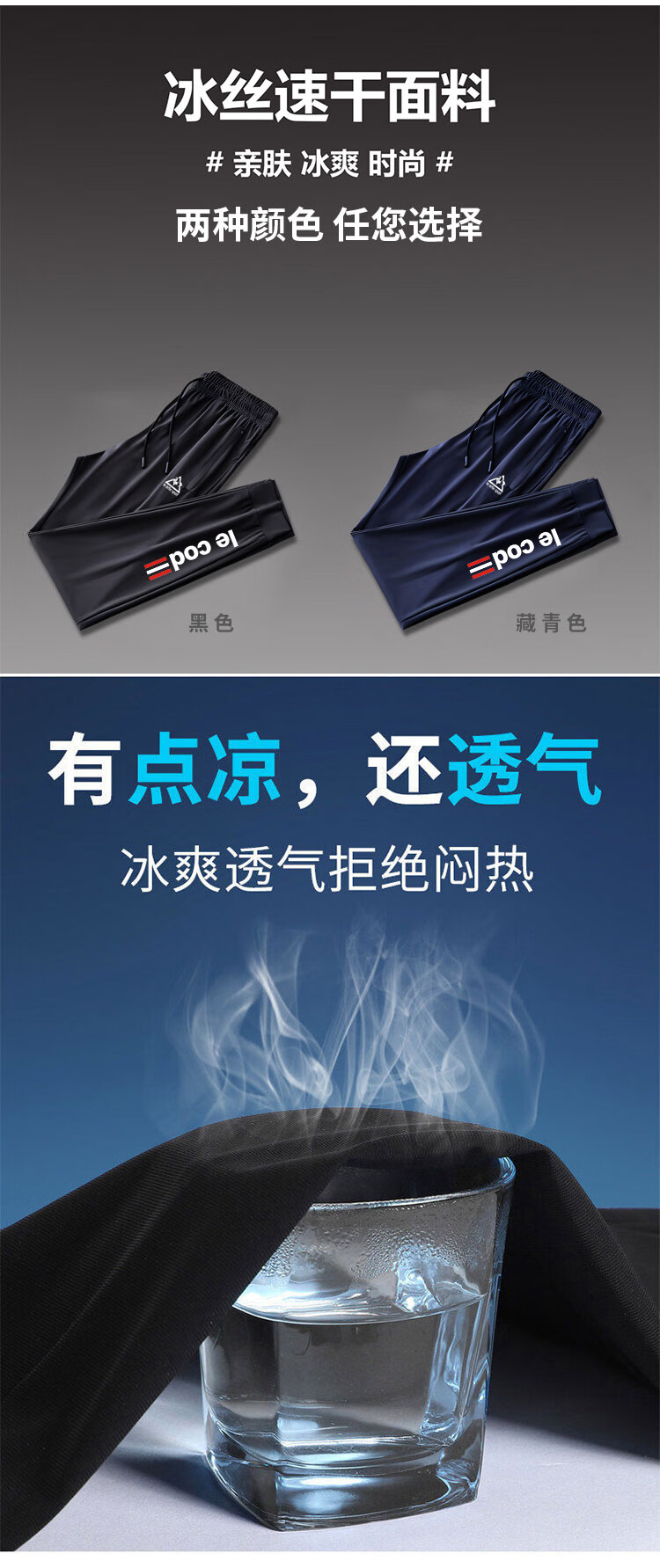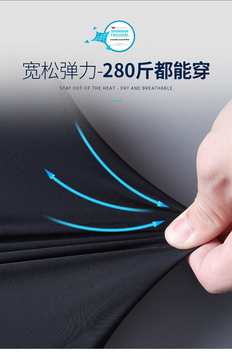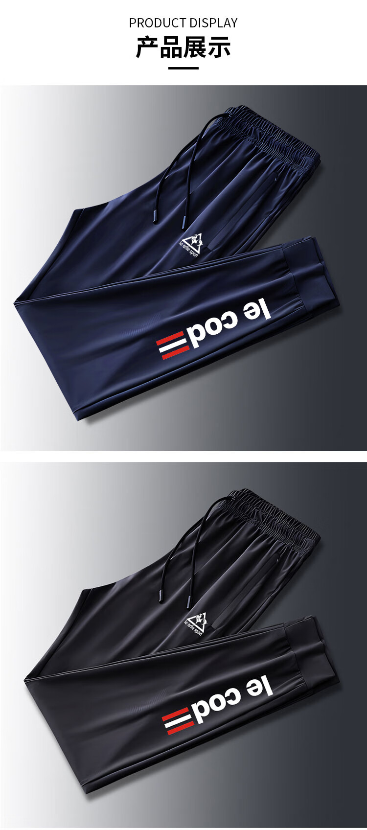 Le coq sportif French big cock ice silk sweatpants men's summer casual versatile trendy quick-drying elastic leg-length pants black ice silk pants-2025 2XL