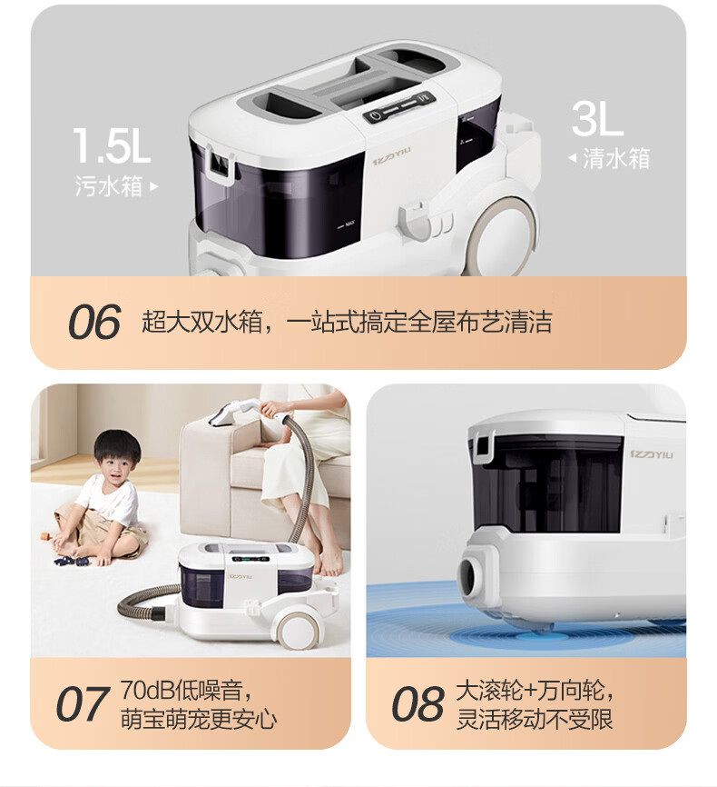 Yili professional fabric cleaning machine vacuum cleaner two-in-one carpet cleaning artifact sofa mattress curtain whole house cleaning housekeeping cleaning spray suction multi-function all-in-one machine 6338 YLW6338 fabric cleaning machine