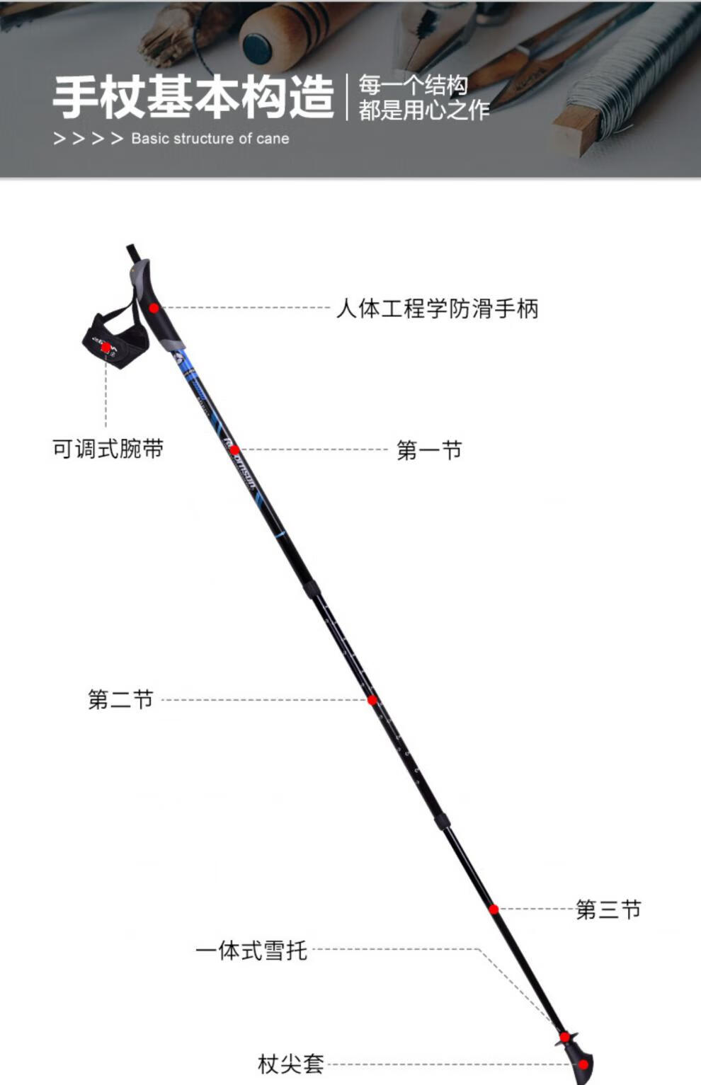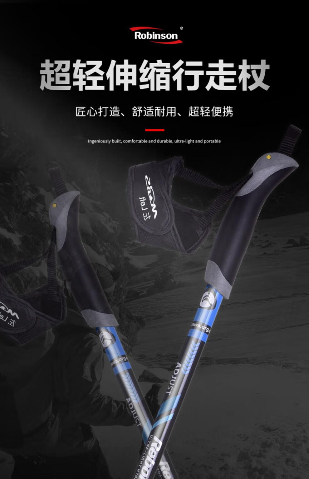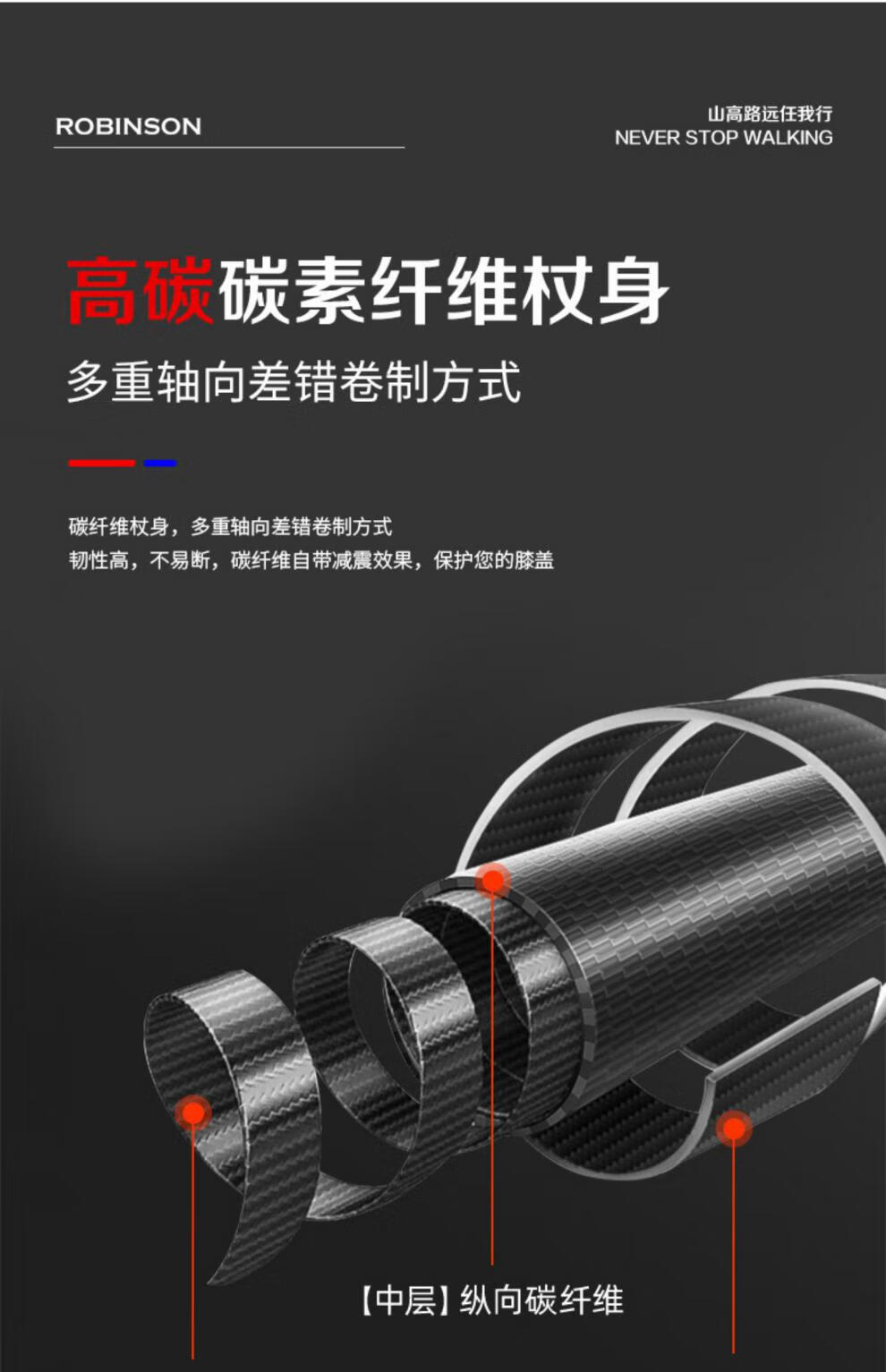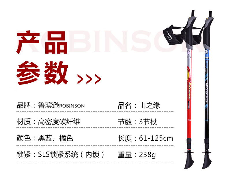 Robinson trekking pole three-section carbon fiber ultra-light telescopic men's and women's outdoor walking and hiking pole orange