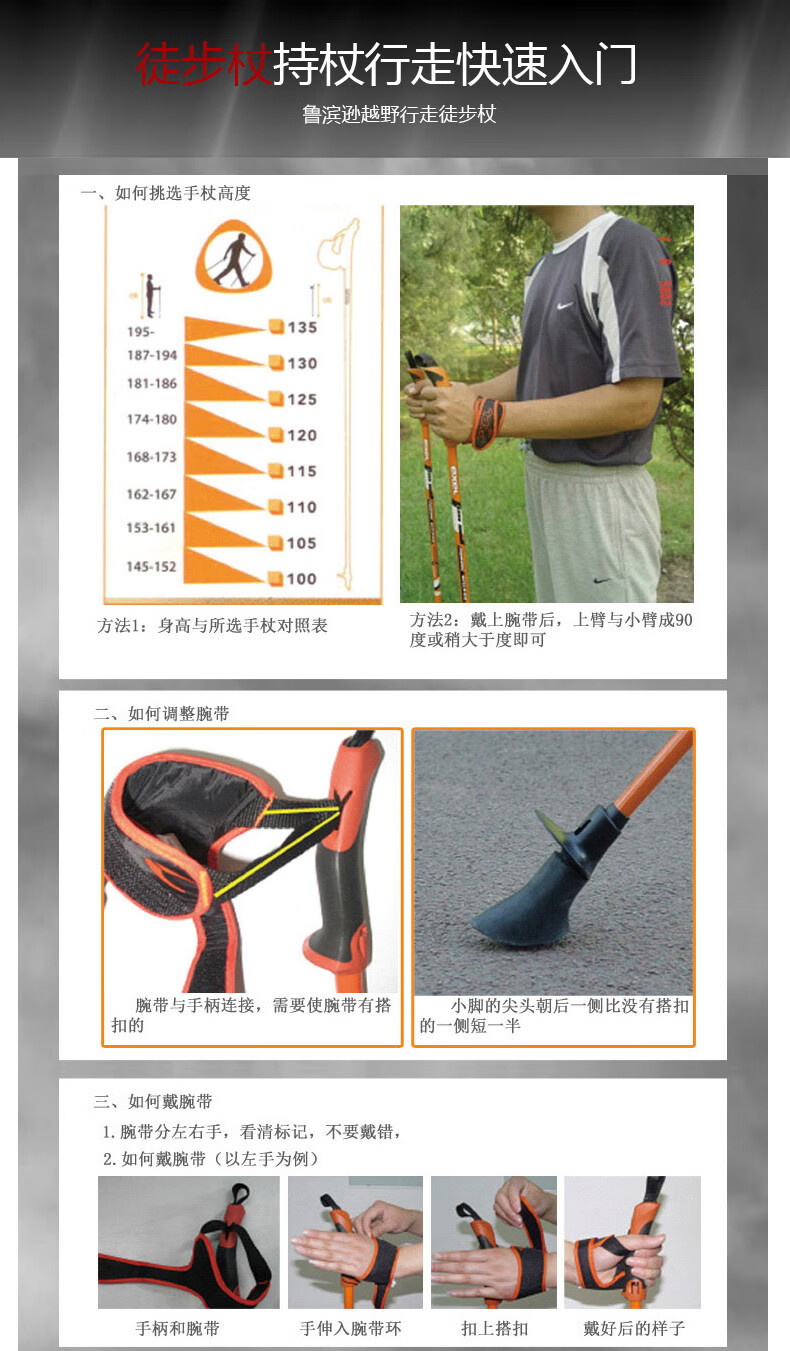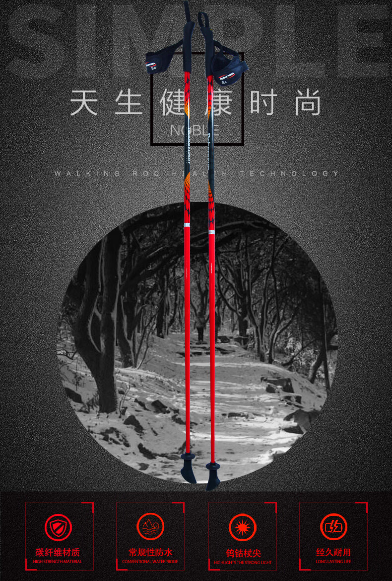 Robinson cross-country walking cane, hiking stick, walking stick, walking stick, walking stick, fiberglass lightweight spot, red 120CM