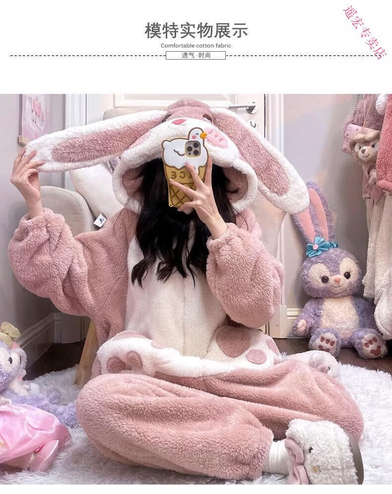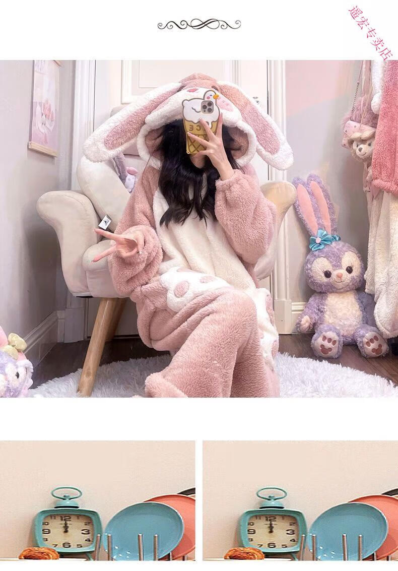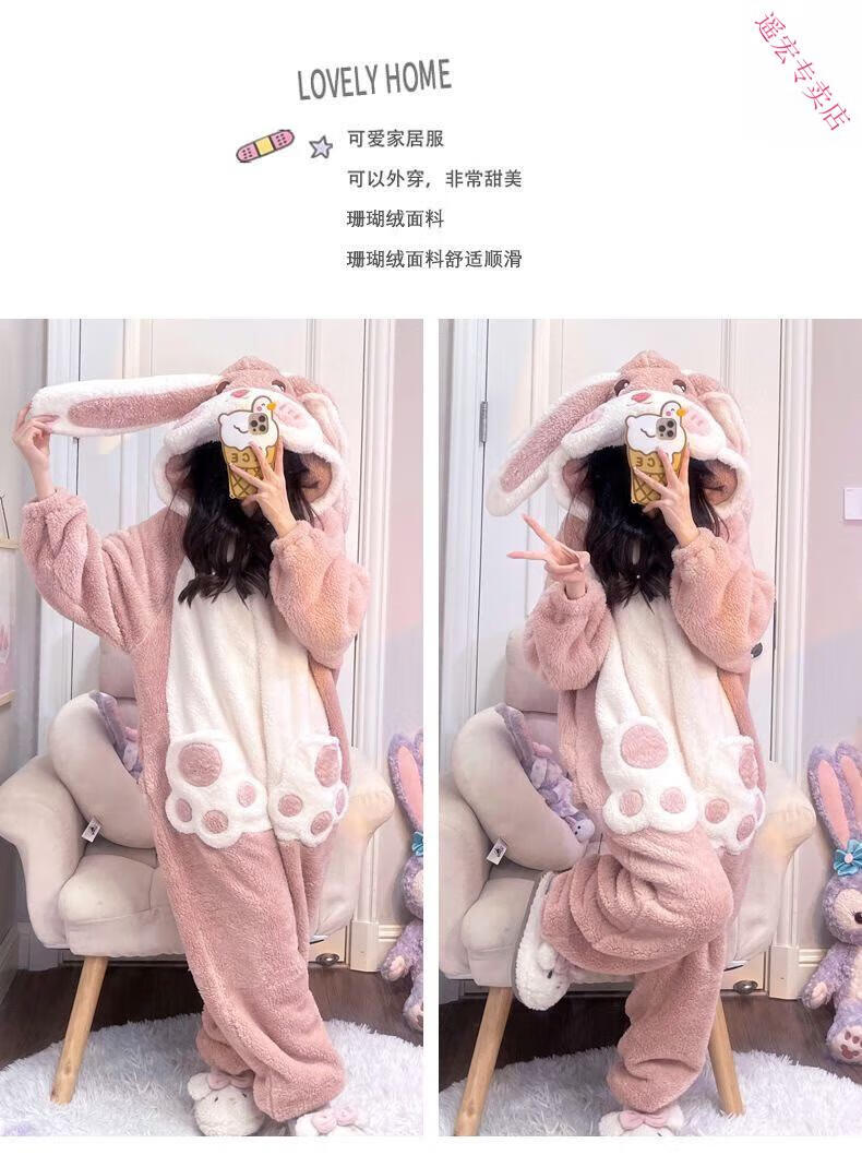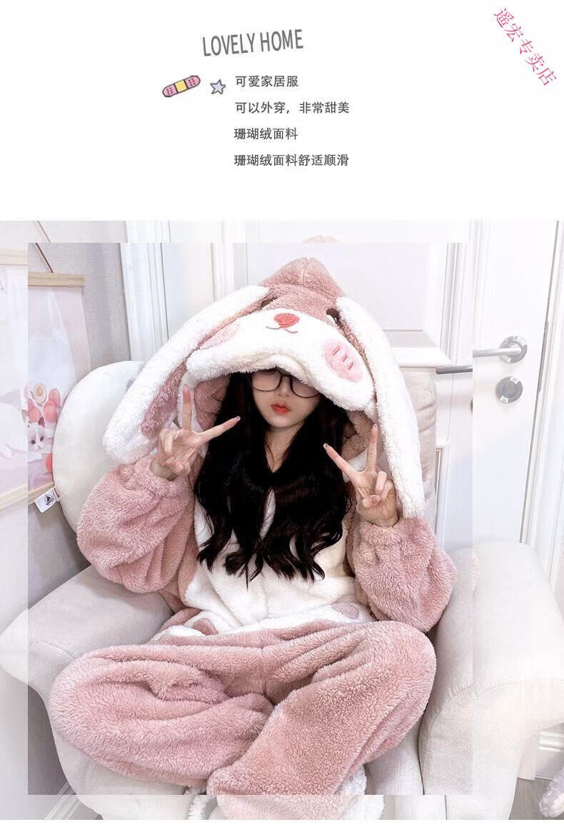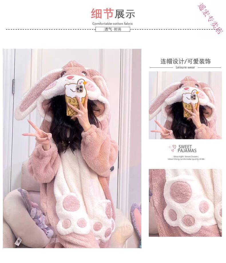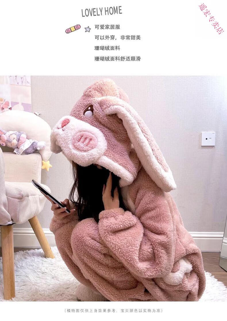 LangSha winter one-piece pajamas for women, cute cartoon rabbit hooded coral velvet and thickened warm flannel home clothes, clown fish one-piece pajamas, L size 100Jin Jin is equal to 0.5kg -120Jin Jin is equal to 0.5kg