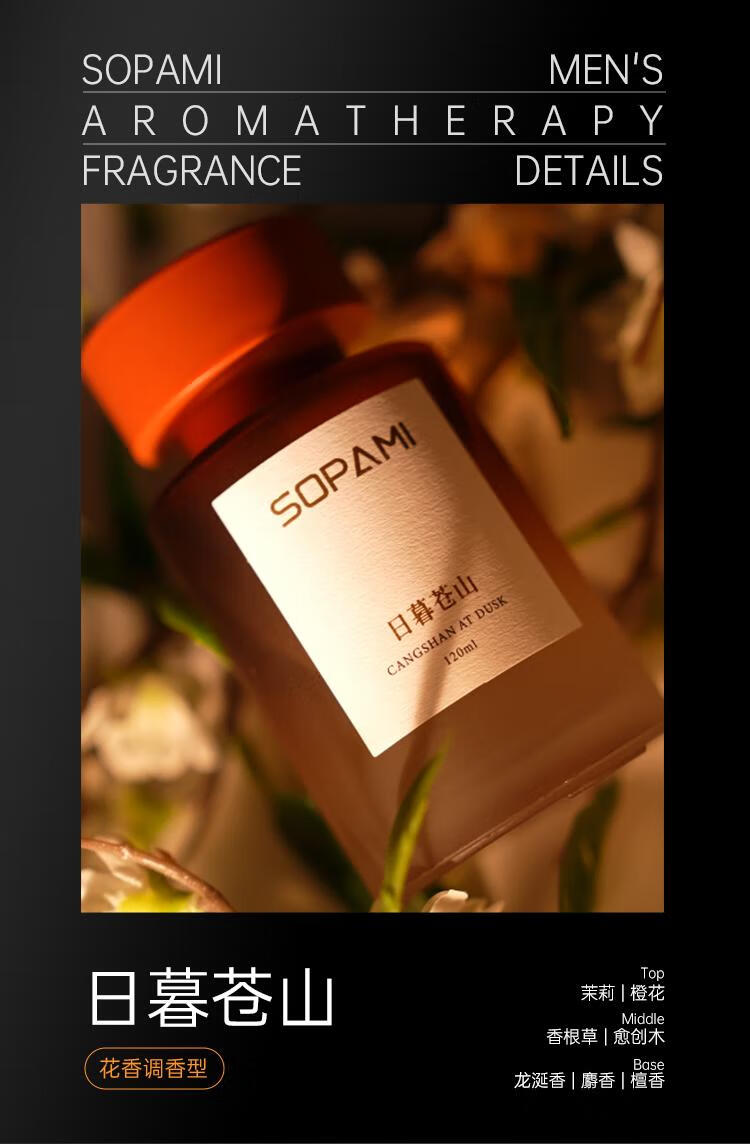 Sopami Sopami Car Aromatherapy 120ml/bottle Fragrance Home Perfume Series Long-lasting Fragrance Light Fragrance Car Ornament Half a Day in the Sky + Mountains and Seas Meet + Sunset Cangshan