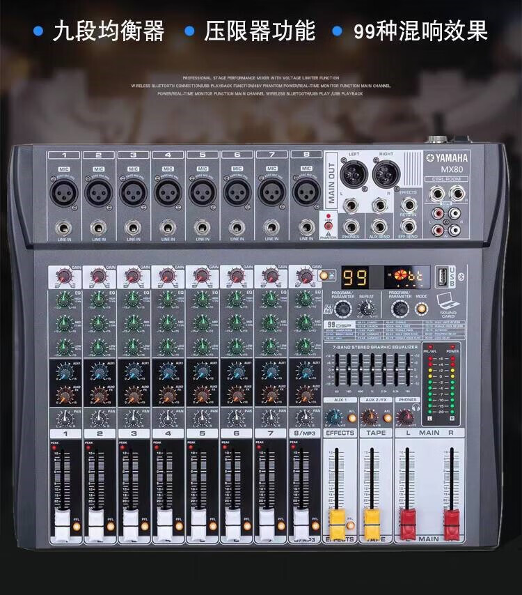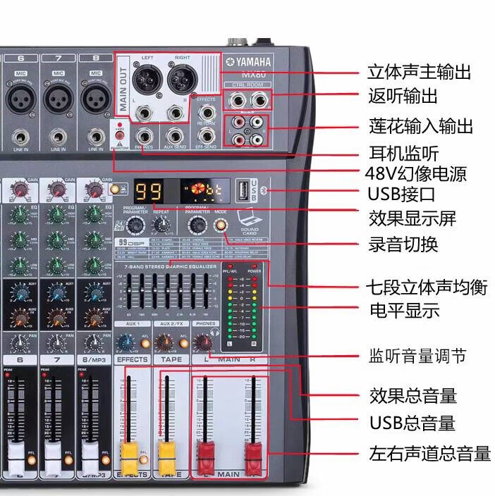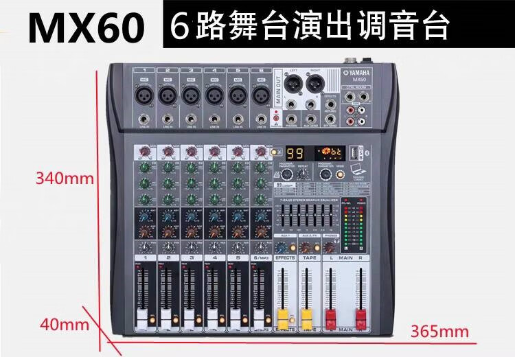 Yamaha Yamaha 8-channel 12-channel mixer outdoor stage performance conference home with USB Bluetooth equalization effect MX60-6 channel