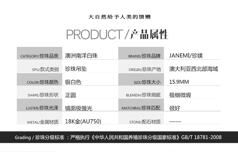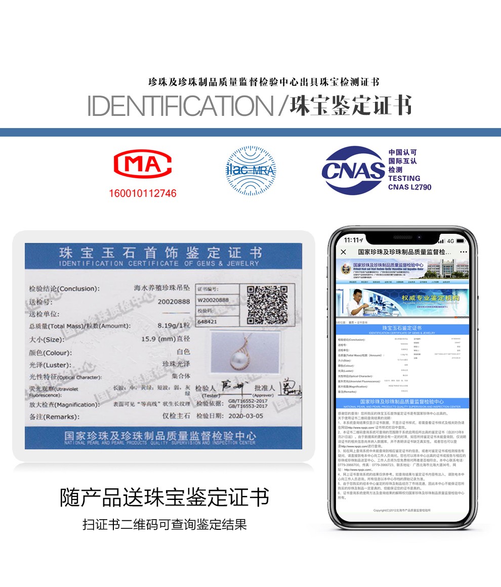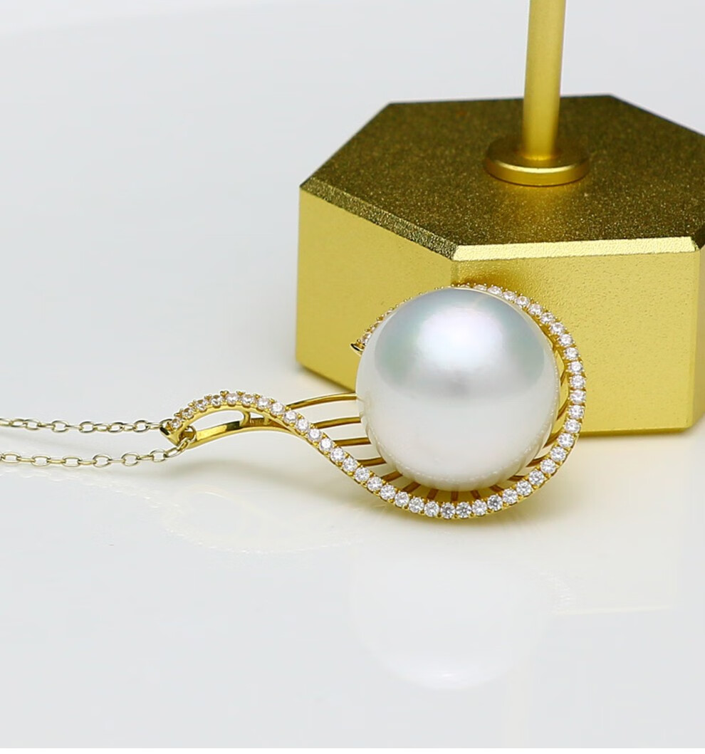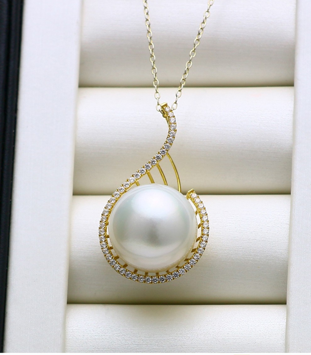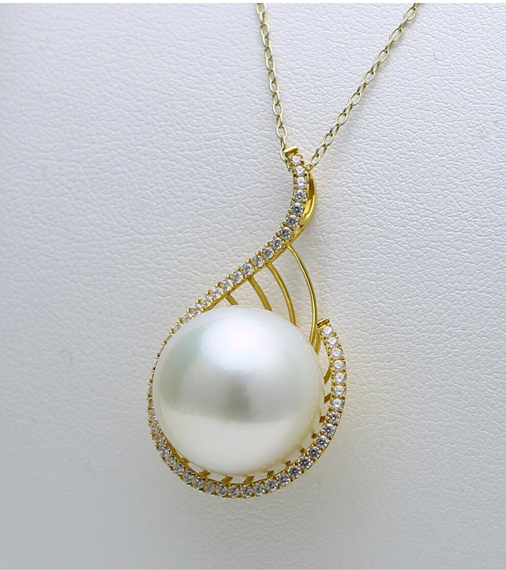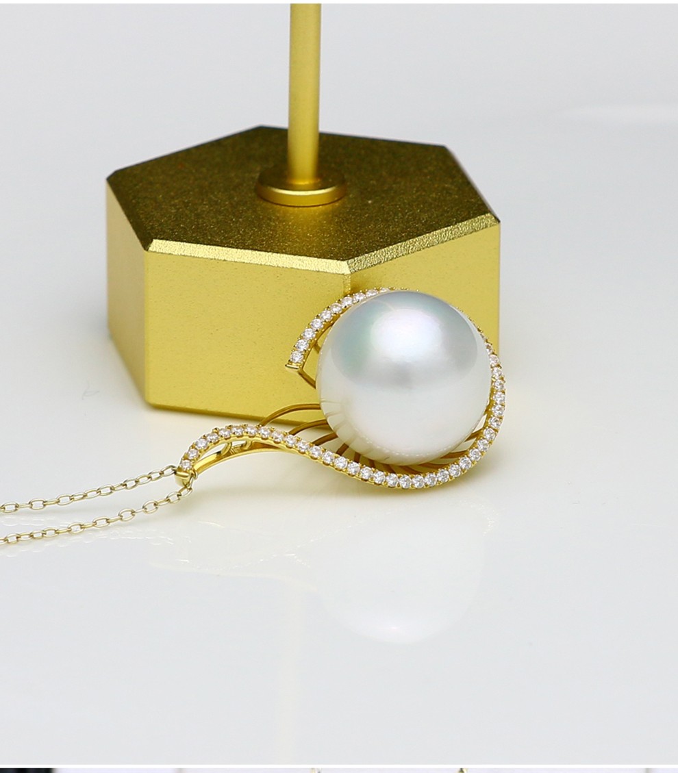 Chi Xing Pearl Jewelry 18K gold inlaid with 15.9mm Australian South Sea white pearl pendant South Sea Australian white pearl pendant