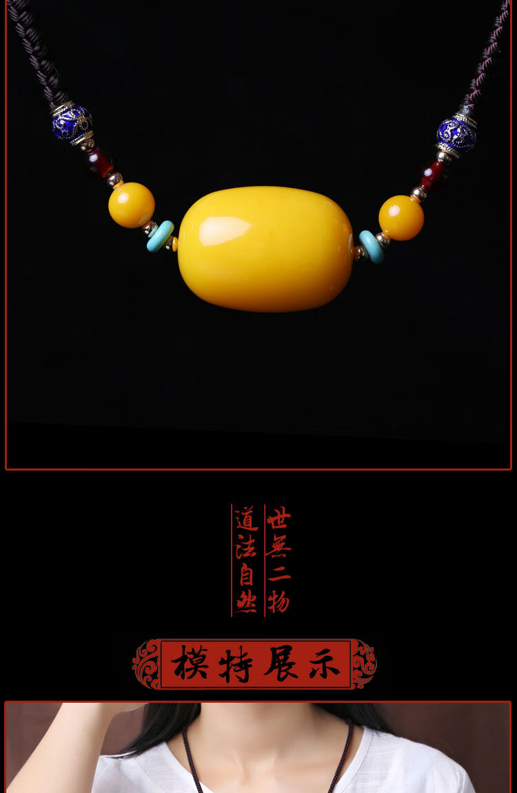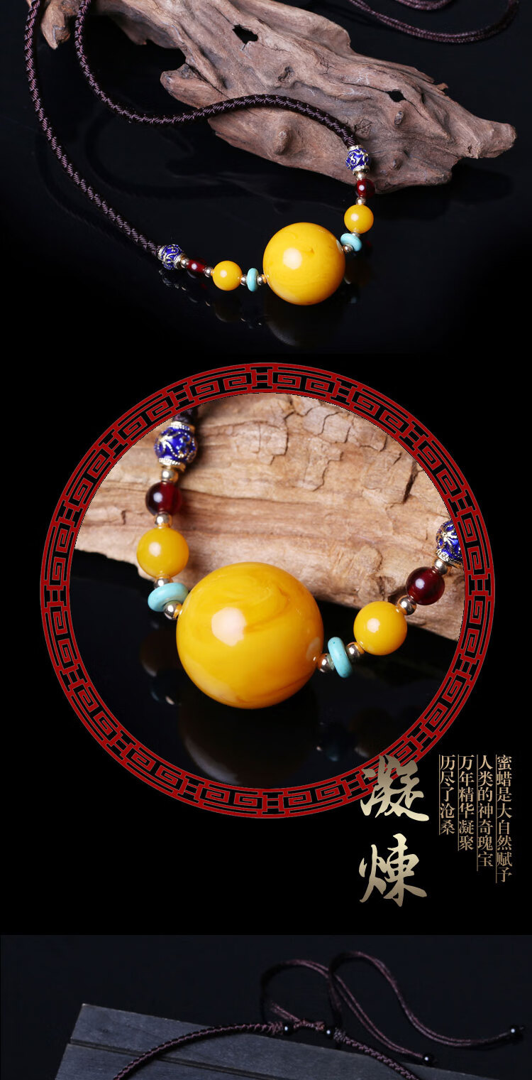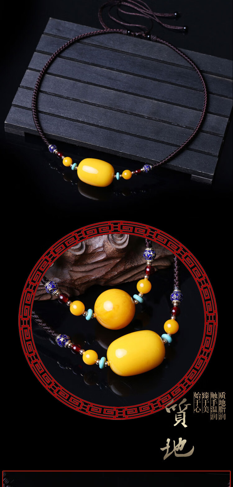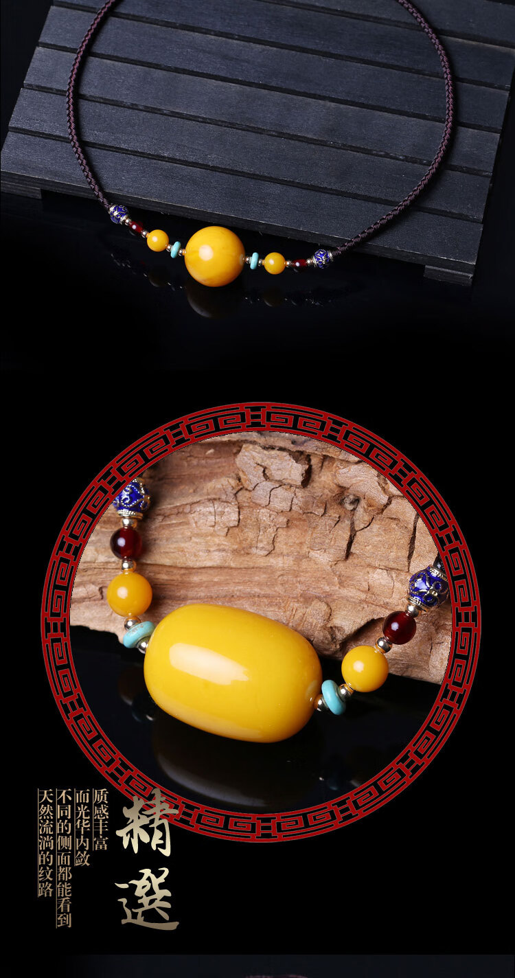 Dige beeswax barrel bead clavicle necklace amber hand-woven original transfer beads adjustable length pendant a round bead pull 0g