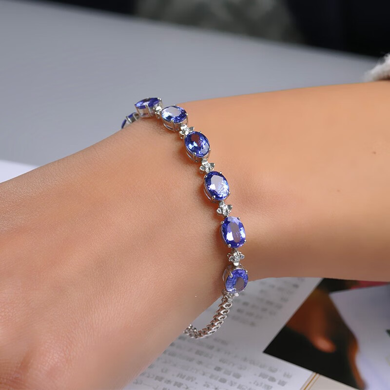 An Feng blue tanzanite earrings, European and American blue crystal necklace, diamond colored treasure bracelet, four-claw sapphire ring set, pair of earrings