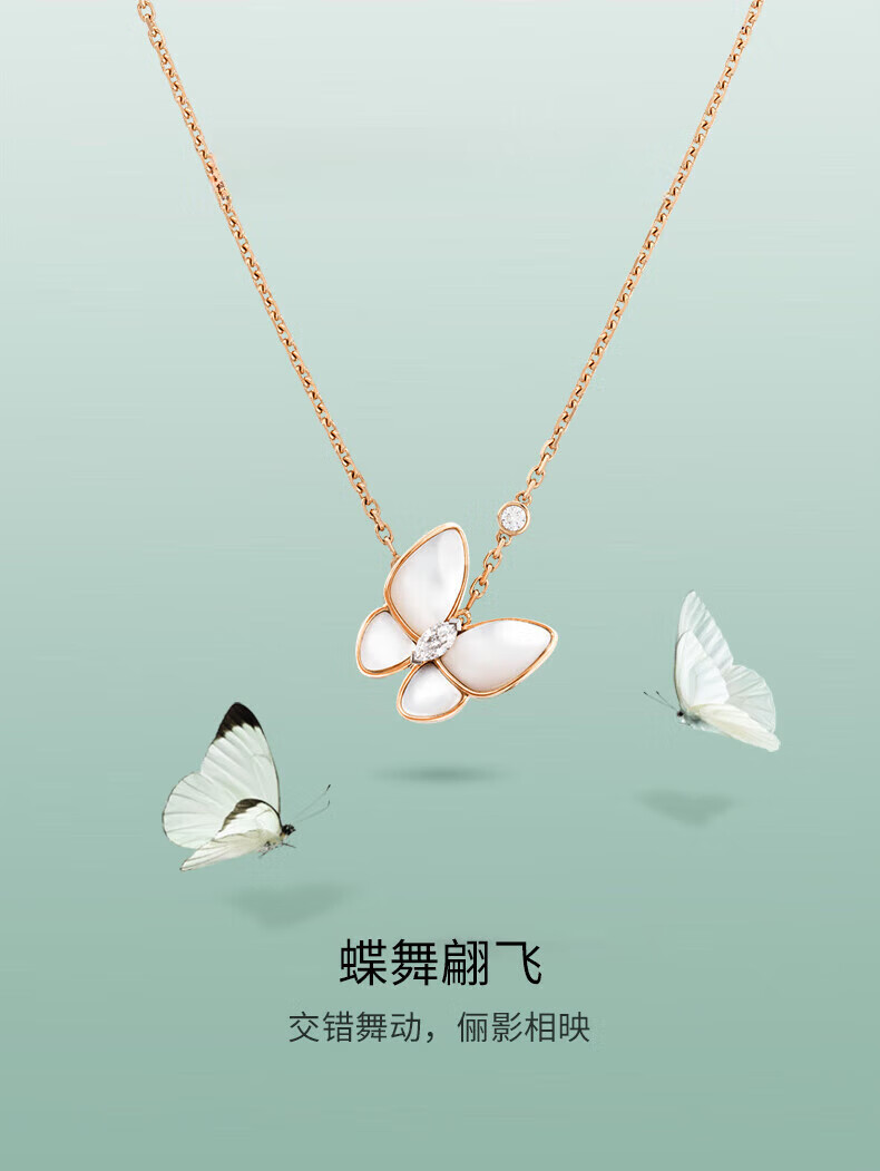 Ji Ge original fashion classic small animal series 18 rose gold white mother-of-pearl butterfly necklace 520 birthday gift for seven days